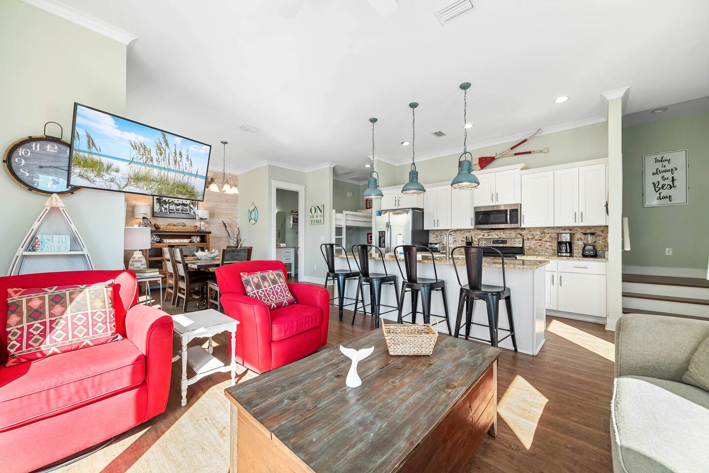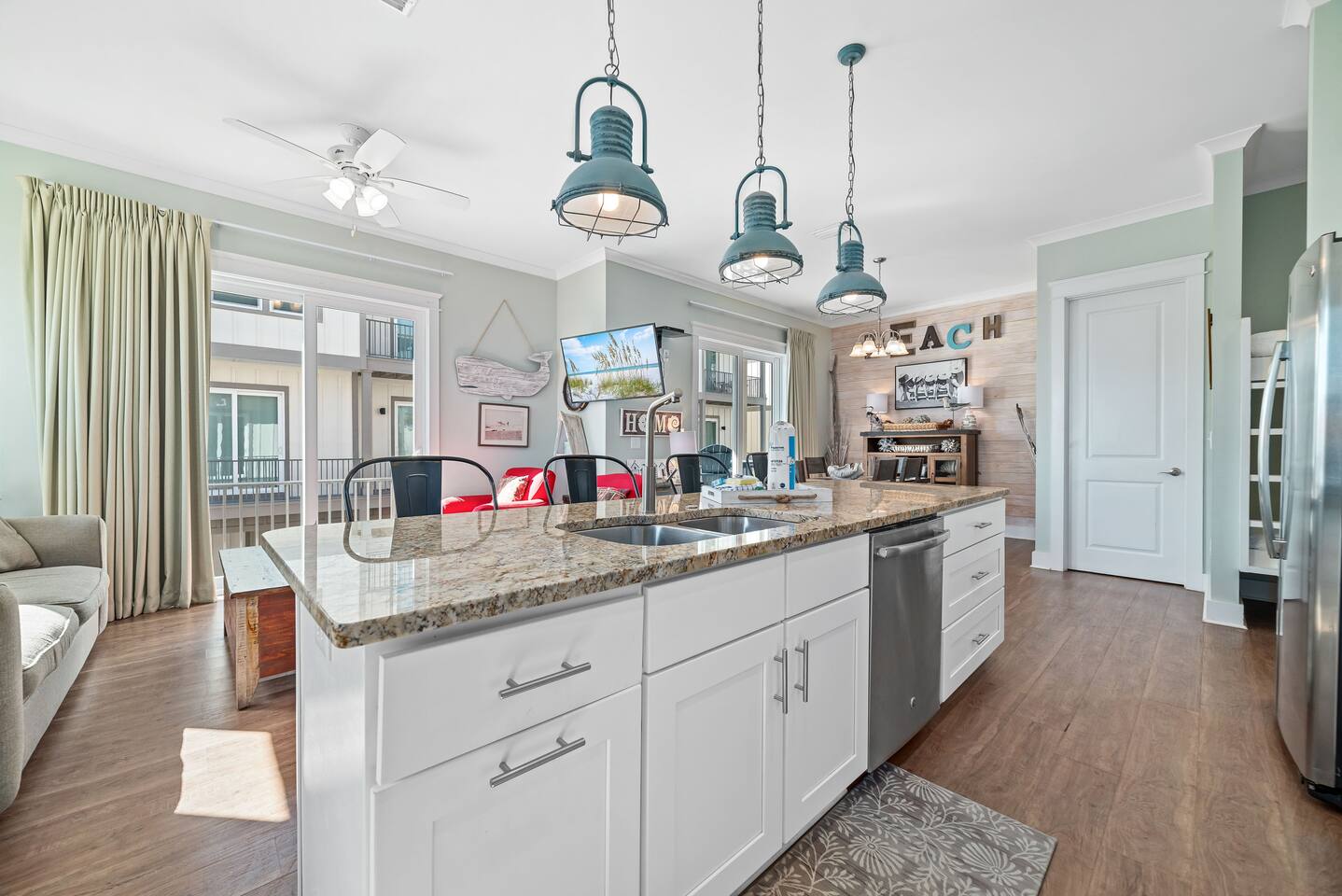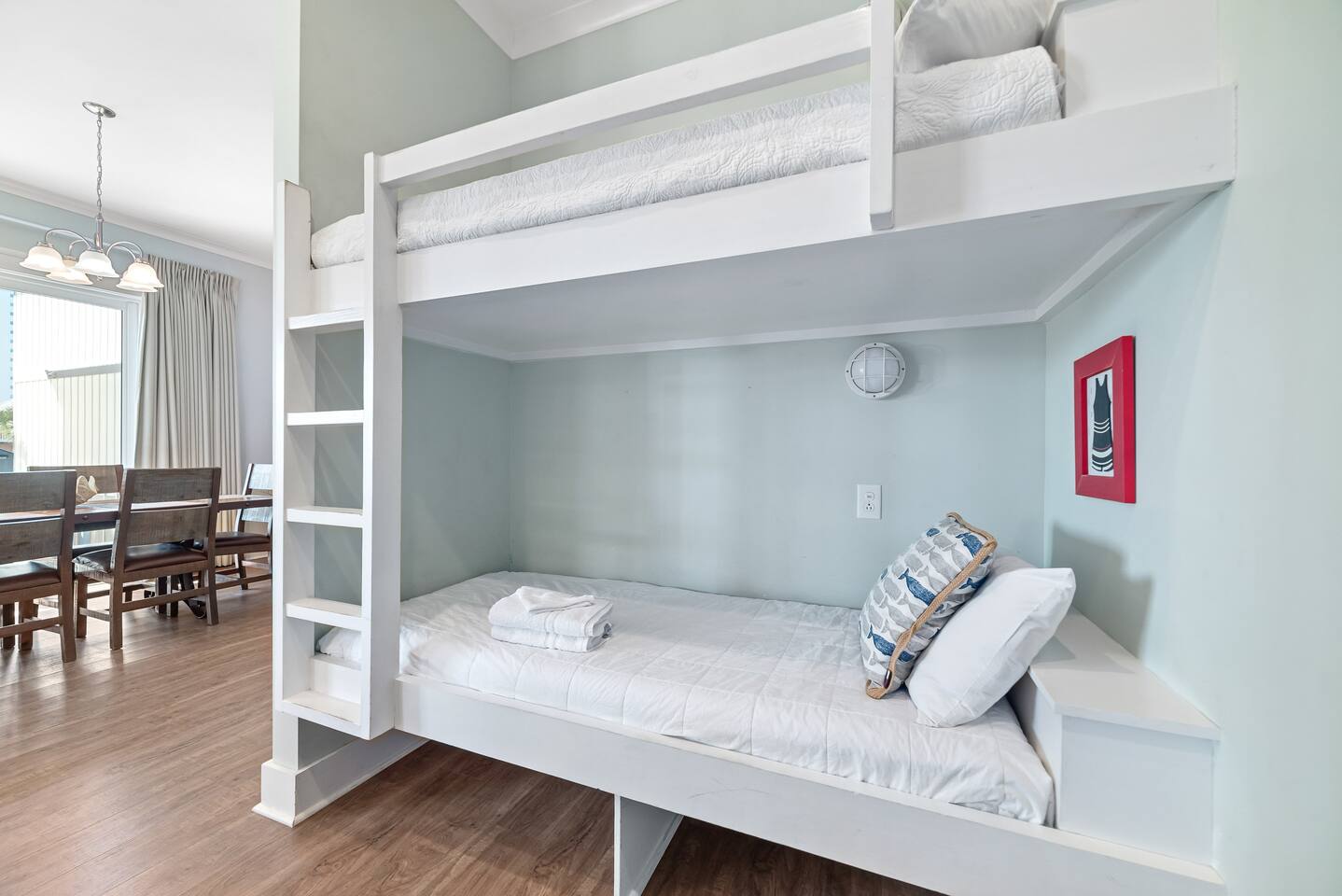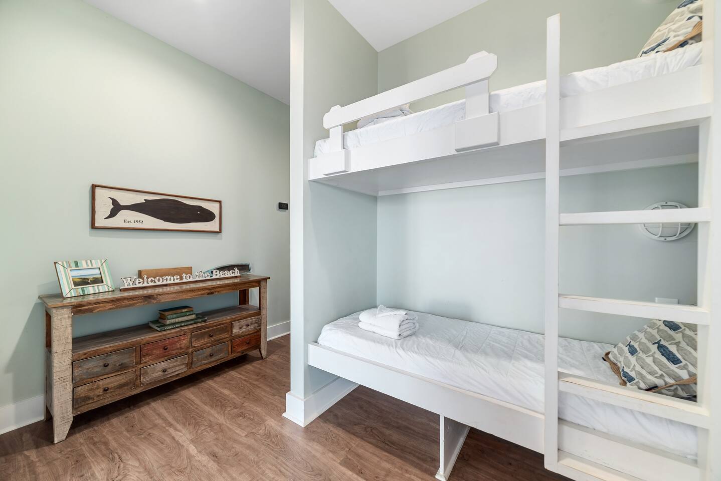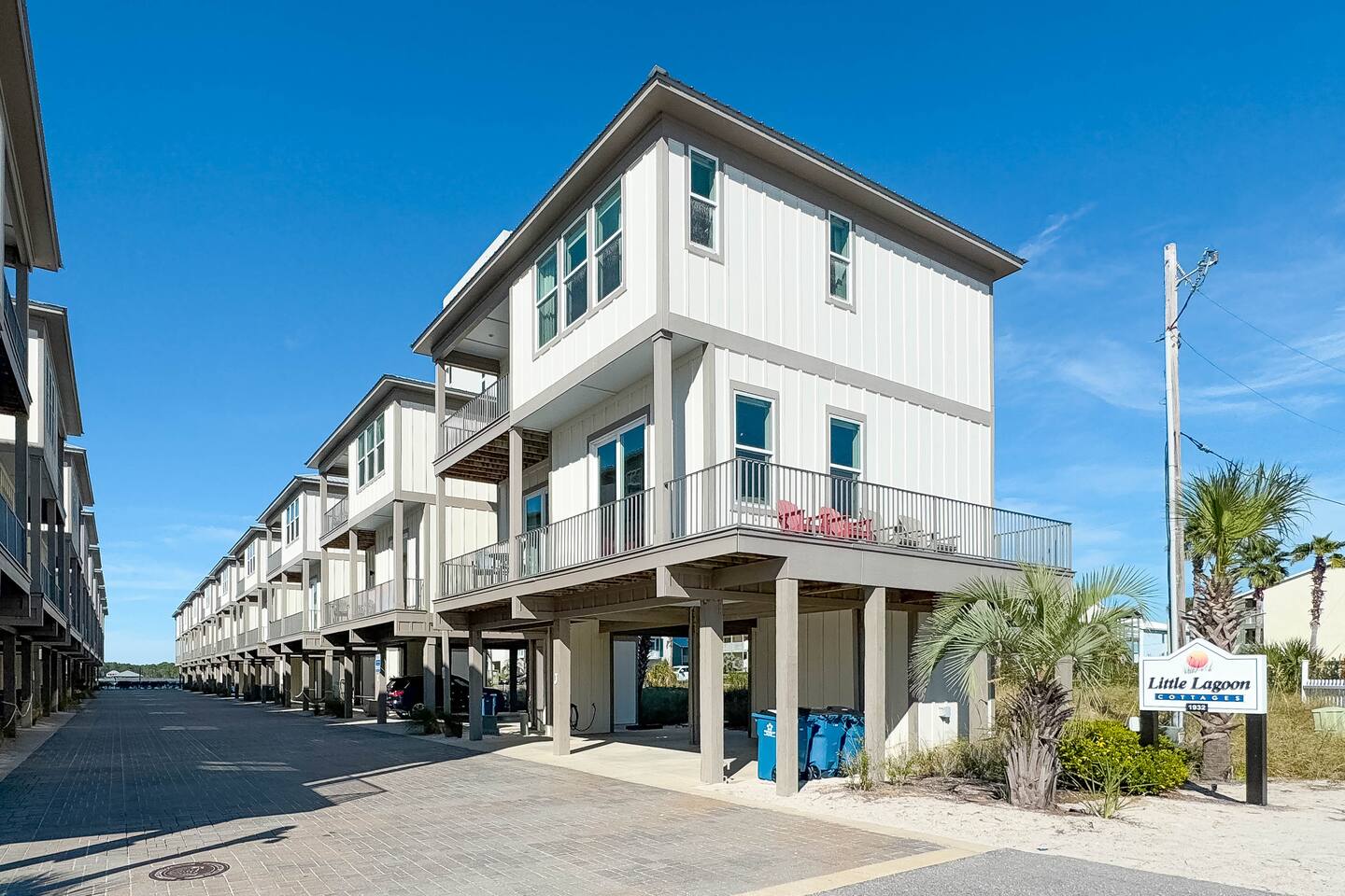 Sweet Caroline’s | Front Row Gulf-View Cottage | Steps to Private Beach Access Welcome to Sweet Caroline’s, a stunning 2-bedroom, 3-bathroom beach cottage located in the exclusive Little Lagoon Cottages community in Gulf Shores, Alabama. This front-row coastal gem offers the best location in the neighborhood, sitting directly across the street from private beach access—just 50 steps to the sand! Perfectly nestled between Little Lagoon and the Gulf of Mexico, this home gives you the best of both worlds—gulf views from multiple balconies and peaceful lagoon access for fishing, kayaking, or sunset strolls. 🌴 Premier Location & Community Amenities You’ll love the charm and amenities of Little Lagoon Cottages, a boutique, low-density community featuring only 18 luxury coastal homes. Enjoy: Lagoon-front community pool with lounge seating Private fishing pier and boat dock BBQ grilling area and picnic space Charming brick-paved streets and lush landscaping Private beach access just steps from your door Located in the West Beach area of Gulf Shores, you’re only 4 miles from The Hangout, local dining, and shopping while enjoying the peace and quiet of this serene coastal retreat. 🏡 Inside Sweet Caroline’s The main level welcomes you with an open-concept living area featuring gulf views from every window, coastal décor, and plenty of space for everyone to unwind. Fully equipped kitchen with stainless steel appliances & granite countertops Ample seating at the dining table and breakfast bar Smart TV and comfortable sofa sleeper in the living room Built-in twin-over-twin bunks—perfect for kids or extra guests Wraparound balcony with amazing gulf views accessible from the living and dining areas 🛏 Bedrooms & Bathrooms The second floor features two spacious bedrooms and a landing area with an additional set of built-in twin-over-twin bunks—making this home sleep up to 10 guests comfortably. Master Bedroom: King bed, Smart TV, gulf views, private balcony access, and en-suite bathroom with dual vanities & walk-in shower Bedroom 2: Queen bed, Smart TV, balcony access, and private bathroom Landing Area: Twin-over-twin bunks perfect for families or groups With three full bathrooms, there’s plenty of space for everyone to get ready for a beach day or night out. ☀️ Outdoor Living Enjoy three private balconies with beautiful views of both the Gulf and Little Lagoon—perfect for morning coffee, evening cocktails, or watching the sunset. The carport offers parking for two vehicles and easy access to your private entrance. 📅 Extended Stays Welcome Looking for a longer beach escape? Monthly stays are available November through February for $3,200/month plus taxes and fees. Message us for details! 💎 Why Guests Love Sweet Caroline’s Guests can’t get enough of Sweet Caroline’s for its unbeatable front-row location, wraparound gulf-view balcony, and luxurious coastal design. Whether you’re relaxing poolside, casting a line from the pier, or strolling to the beach in seconds, this cottage delivers the ultimate Gulf Shores getaway. Book your stay at Sweet Caroline’s today and experience coastal living at its finest—where the beach and lagoon meet in perfect harmony.