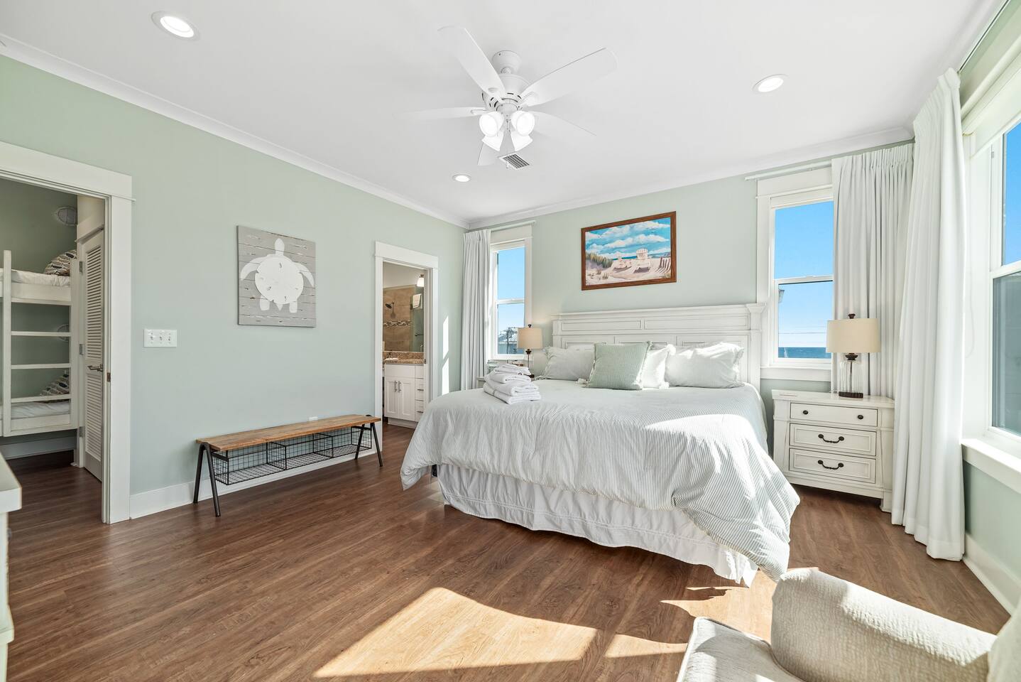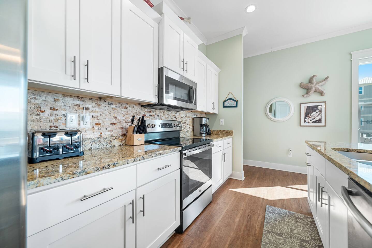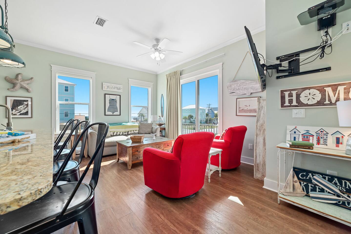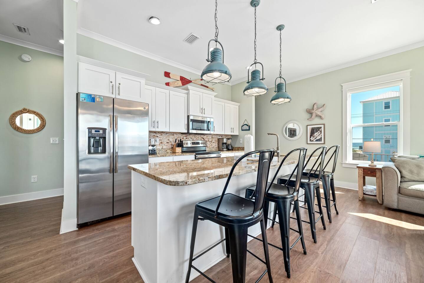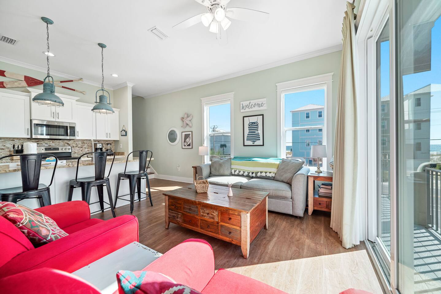 Sweet Caroline’s | Front Row Gulf-View Cottage | Steps to Private Beach Access Welcome to Sweet Caroline’s, a stunning 2-bedroom, 3-bathroom beach cottage located in the exclusive Little Lagoon Cottages community in Gulf Shores, Alabama. This front-row coastal gem offers the best location in the neighborhood, sitting directly across the street from private beach access—just 50 steps to the sand! Perfectly nestled between Little Lagoon and the Gulf of Mexico, this home gives you the best of both worlds—gulf views from multiple balconies and peaceful lagoon access for fishing, kayaking, or sunset strolls. 🌴 Premier Location & Community Amenities You’ll love the charm and amenities of Little Lagoon Cottages, a boutique, low-density community featuring only 18 luxury coastal homes. Enjoy: Lagoon-front community pool with lounge seating Private fishing pier and boat dock BBQ grilling area and picnic space Charming brick-paved streets and lush landscaping Private beach access just steps from your door Located in the West Beach area of Gulf Shores, you’re only 4 miles from The Hangout, local dining, and shopping while enjoying the peace and quiet of this serene coastal retreat. 🏡 Inside Sweet Caroline’s The main level welcomes you with an open-concept living area featuring gulf views from every window, coastal décor, and plenty of space for everyone to unwind. Fully equipped kitchen with stainless steel appliances & granite countertops Ample seating at the dining table and breakfast bar Smart TV and comfortable sofa sleeper in the living room Built-in twin-over-twin bunks—perfect for kids or extra guests Wraparound balcony with amazing gulf views accessible from the living and dining areas 🛏 Bedrooms & Bathrooms The second floor features two spacious bedrooms and a landing area with an additional set of built-in twin-over-twin bunks—making this home sleep up to 10 guests comfortably. Master Bedroom: King bed, Smart TV, gulf views, private balcony access, and en-suite bathroom with dual vanities & walk-in shower Bedroom 2: Queen bed, Smart TV, balcony access, and private bathroom Landing Area: Twin-over-twin bunks perfect for families or groups With three full bathrooms, there’s plenty of space for everyone to get ready for a beach day or night out. ☀️ Outdoor Living Enjoy three private balconies with beautiful views of both the Gulf and Little Lagoon—perfect for morning coffee, evening cocktails, or watching the sunset. The carport offers parking for two vehicles and easy access to your private entrance. 📅 Extended Stays Welcome Looking for a longer beach escape? Monthly stays are available November through February for $3,200/month plus taxes and fees. Message us for details! 💎 Why Guests Love Sweet Caroline’s Guests can’t get enough of Sweet Caroline’s for its unbeatable front-row location, wraparound gulf-view balcony, and luxurious coastal design. Whether you’re relaxing poolside, casting a line from the pier, or strolling to the beach in seconds, this cottage delivers the ultimate Gulf Shores getaway. Book your stay at Sweet Caroline’s today and experience coastal living at its finest—where the beach and lagoon meet in perfect harmony.