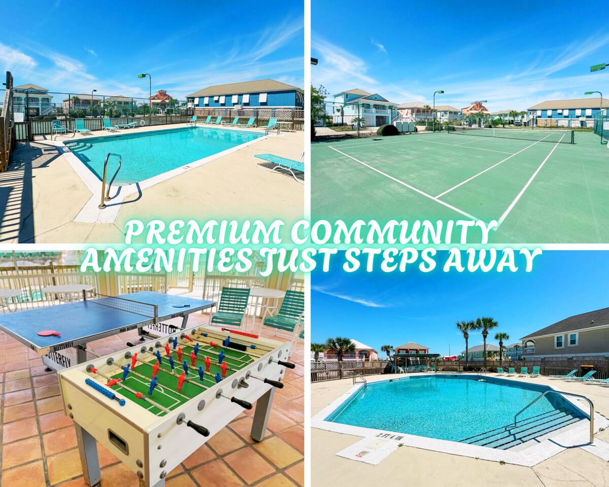 ☀ Gorgeous 4 BR/4.5 BA "almost beachfront" home | Sleeps 12 ☀ 2 spacious private balconies with panoramic gulf views ☀ 2 community pools, clubhouse & tennis courts directly behind home ☀ Just steps from the beautiful white sand beaches of the Emerald Coast ☀Just minutes away from restaurants, shopping & everything Gulf Shores has to offer! Experience the laid back lifestyle of Fort Morgan at "Above The Waves!" Learn More Below!