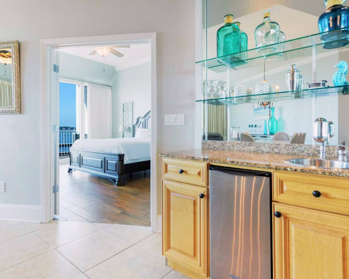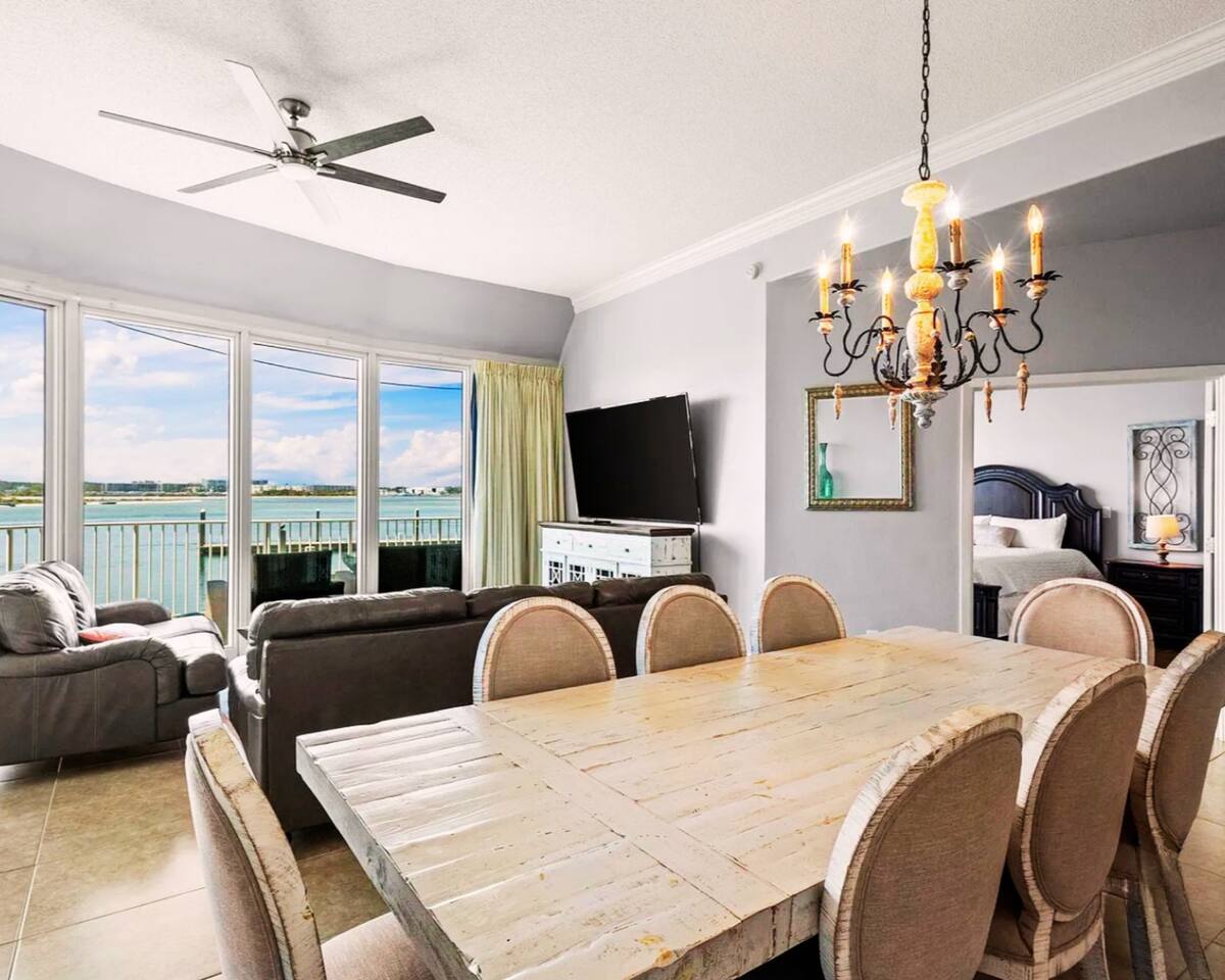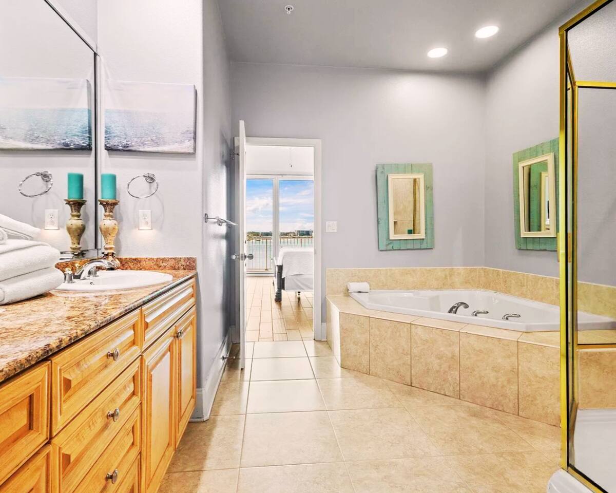 Welcome to Caribe Resort B104! A luxury 3-bedroom, 3-bathroom Bayfront condo located in the heart of Orange Beach, Alabama. This spacious elevated first floor unit offers sweeping Bay views and full access to resort style amenities. ☆☆ Why You’ll Love It ☆☆ ☀ Bayfront luxury condo in sought-after Caribe Tower B ☀ Reserve a boat slip for $75 per day and trailer parking at $20 per day ☀ Expansive private balcony with panoramic views of Perdido Bay ☀ Spa-inspired primary suite with jetted tub and balcony access ☀ Bright open-concept layout with 11 ft ceilings & wall-to-wall windows ☀ Fully equipped chef’s kitchen with stainless KitchenAid appliances ☀ Designer interiors with coastal-chic décor and modern upgrades ☀ Access to incredible resort-style amenities for the whole family ☀ Minutes from restaurants, The Wharf, beaches, & Gulf adventures ☆☆ Stylish Comfort Meets Coastal Charm ☆☆ Step into your Orange Beach escape, where elevated design meets casual beachside comfort. This thoughtfully styled condo features modern furnishings, and tranquil bay views from nearly every room. The bright and airy living area includes a cozy sectional, large TV, and wet bar—perfect for cocktails after a day in the sun. Slide open the balcony doors to enjoy sunrise coffee or sunset breezes with plush outdoor seating and stunning water views. The sleek chef’s kitchen is fully stocked and equipped with premium stainless steel KitchenAid appliances, a built-in microwave and oven, large refrigerator, coffee maker, and blender. A dining table and breakfast bar offer plenty of seating for group meals and snacks. ☆☆ 3 Bedrooms | Sleeps 10 in Luxury ☆☆ ☀ Primary Suite: King bed, balcony access, spa-style ensuite with jetted tub, walk-in shower, dual vanities, and spacious closet ☀ Guest Bedroom 1: Queen bed, private bathroom and TV ☀ Guest Bedroom 2: Queen bed and Smart TV Guest Bedroom 3: 2 Single Beds with twin trundle, Smart TV ☀ Living Room: Additional Double sofa sleeper Each sleeping space is furnished with soft bedding, luxury linens, and warm coastal details for the ultimate relaxation. ☆☆ Resort-Style Amenities at Caribe ☆☆ Your stay includes full access to one of the most amenity-rich properties on the Gulf Coast: 💦 Outdoor lagoon pools, lazy river, slides & kids splash areas 🏊 Indoor heated pools & bubbling hot tubs 🍹 Poolside tiki bar & rentable private cabanas ☕ Brand-new coffee shop in Building D 🍽 On-site restaurant and grilling stations 🏖 Seasonal beach trolley for quick beach access ⛵ Full-service marina with your own boat slip included 🛍 Gift shop for last-minute souvenirs 🏋️♀️ Fitness centers, putting greens, mini golf, basketball & more 🧖 Sauna & steam rooms for ultimate relaxation ☆☆ Prime Orange Beach Location ☆☆ ☀ Bayfront property with direct marina & bay access ☀ Minutes to Gulf beaches & Gulf State Park trails ☀ Close to The Wharf, shopping, dining, & nightlife ☀ Near water rentals, dolphin cruises, and fishing charters ☀ Centrally located for everything the Gulf Coast offers ☆☆ Guest Experience & Check-In Info ☆☆ ✔ Self-check-in for ease and privacy ✔ Complimentary high-speed WiFi & Smart TVs ✔ Starter supply of paper products, soap & detergents included ✔ 2 parking passes are available for your stay ($25 per pass), purchased at the front desk - A 3rd pass may be available but is subject to availability. Parking pass pricing is subject to change at any time. ✔ Check-in: 4 PM | Check-out: 10 AM Come experience Caribe Resort B104, where luxury living meets Bayfront adventure. From the moment you arrive, you'll feel at home in this elegant, amenity-packed retreat—perfect for families, boaters, or couples seeking a relaxing getaway. ☀ Monthly Stays Available! From November through February, enjoy a longer getaway with discounted monthly rates of $3,600. Send us a message for details! ☆☆ Book Your Dream Orange Beach Escape Today! ☆☆