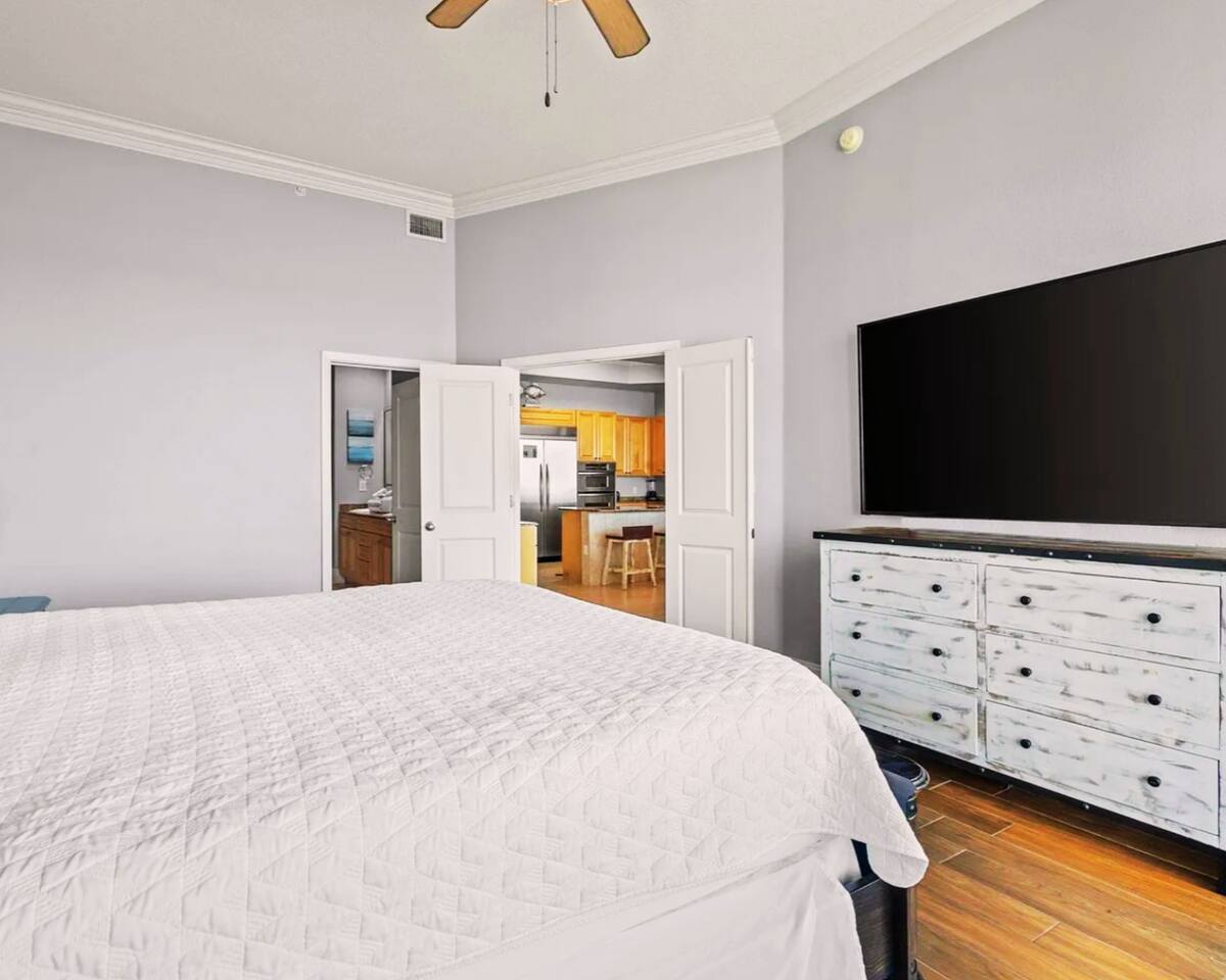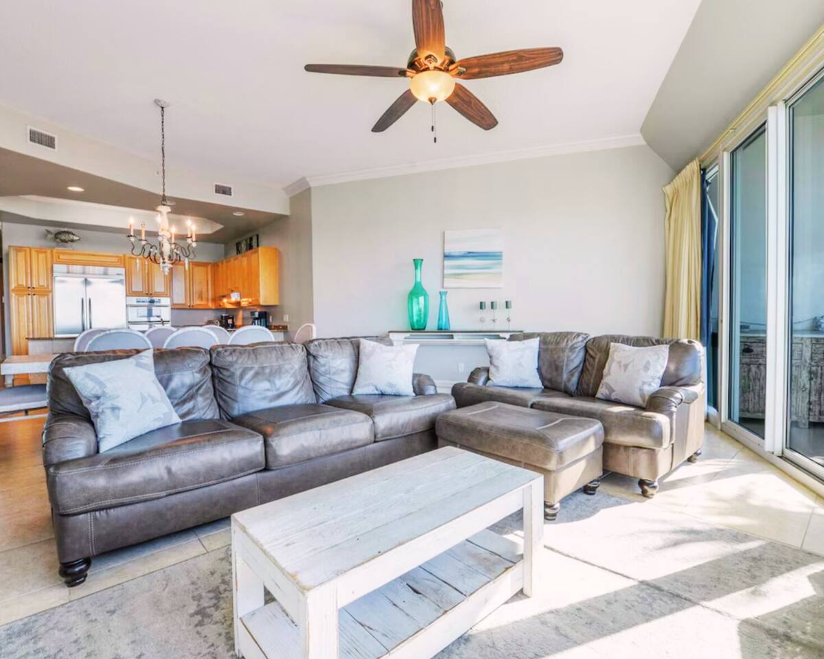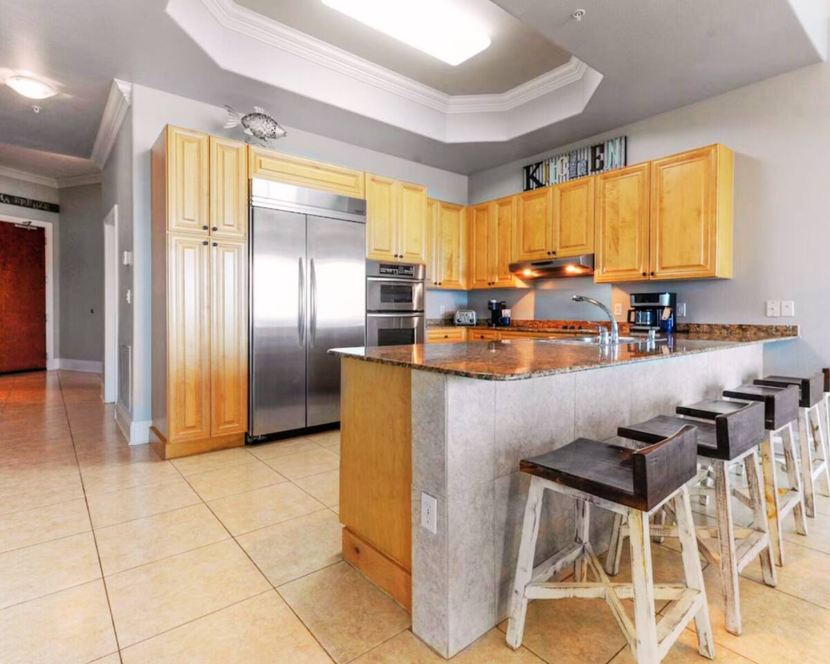 Welcome to Caribe Resort B104! A luxury 3-bedroom, 3-bathroom Bayfront condo located in the heart of Orange Beach, Alabama. This spacious elevated first floor unit offers sweeping Bay views and full access to resort style amenities. ☆☆ Why You’ll Love It ☆☆ ☀ Bayfront luxury condo in sought-after Caribe Tower B ☀ Reserve a boat slip for $75 per day and trailer parking at $20 per day ☀ Expansive private balcony with panoramic views of Perdido Bay ☀ Spa-inspired primary suite with jetted tub and balcony access ☀ Bright open-concept layout with 11 ft ceilings & wall-to-wall windows ☀ Fully equipped chef’s kitchen with stainless KitchenAid appliances ☀ Designer interiors with coastal-chic décor and modern upgrades ☀ Access to incredible resort-style amenities for the whole family ☀ Minutes from restaurants, The Wharf, beaches, & Gulf adventures ☆☆ Stylish Comfort Meets Coastal Charm ☆☆ Step into your Orange Beach escape, where elevated design meets casual beachside comfort. This thoughtfully styled condo features modern furnishings, and tranquil bay views from nearly every room. The bright and airy living area includes a cozy sectional, large TV, and wet bar—perfect for cocktails after a day in the sun. Slide open the balcony doors to enjoy sunrise coffee or sunset breezes with plush outdoor seating and stunning water views. The sleek chef’s kitchen is fully stocked and equipped with premium stainless steel KitchenAid appliances, a built-in microwave and oven, large refrigerator, coffee maker, and blender. A dining table and breakfast bar offer plenty of seating for group meals and snacks. ☆☆ 3 Bedrooms | Sleeps 10 in Luxury ☆☆ ☀ Primary Suite: King bed, balcony access, spa-style ensuite with jetted tub, walk-in shower, dual vanities, and spacious closet ☀ Guest Bedroom 1: Queen bed, private bathroom and TV ☀ Guest Bedroom 2: Queen bed and Smart TV Guest Bedroom 3: 2 Single Beds with twin trundle, Smart TV ☀ Living Room: Additional Double sofa sleeper Each sleeping space is furnished with soft bedding, luxury linens, and warm coastal details for the ultimate relaxation. ☆☆ Resort-Style Amenities at Caribe ☆☆ Your stay includes full access to one of the most amenity-rich properties on the Gulf Coast: 💦 Outdoor lagoon pools, lazy river, slides & kids splash areas 🏊 Indoor heated pools & bubbling hot tubs 🍹 Poolside tiki bar & rentable private cabanas ☕ Brand-new coffee shop in Building D 🍽 On-site restaurant and grilling stations 🏖 Seasonal beach trolley for quick beach access ⛵ Full-service marina with your own boat slip included 🛍 Gift shop for last-minute souvenirs 🏋️♀️ Fitness centers, putting greens, mini golf, basketball & more 🧖 Sauna & steam rooms for ultimate relaxation ☆☆ Prime Orange Beach Location ☆☆ ☀ Bayfront property with direct marina & bay access ☀ Minutes to Gulf beaches & Gulf State Park trails ☀ Close to The Wharf, shopping, dining, & nightlife ☀ Near water rentals, dolphin cruises, and fishing charters ☀ Centrally located for everything the Gulf Coast offers ☆☆ Guest Experience & Check-In Info ☆☆ ✔ Self-check-in for ease and privacy ✔ Complimentary high-speed WiFi & Smart TVs ✔ Starter supply of paper products, soap & detergents included ✔ 2 parking passes are available for your stay ($25 per pass), purchased at the front desk - A 3rd pass may be available but is subject to availability. Parking pass pricing is subject to change at any time. ✔ Check-in: 4 PM | Check-out: 10 AM Come experience Caribe Resort B104, where luxury living meets Bayfront adventure. From the moment you arrive, you'll feel at home in this elegant, amenity-packed retreat—perfect for families, boaters, or couples seeking a relaxing getaway. ☀ Monthly Stays Available! From November through February, enjoy a longer getaway with discounted monthly rates of $3,600. Send us a message for details! ☆☆ Book Your Dream Orange Beach Escape Today! ☆☆