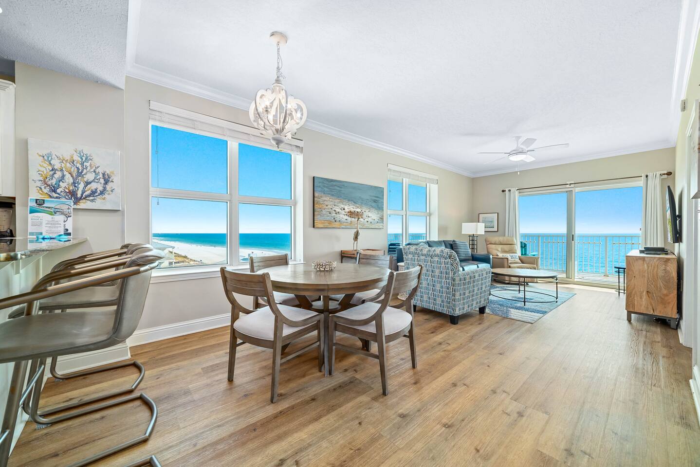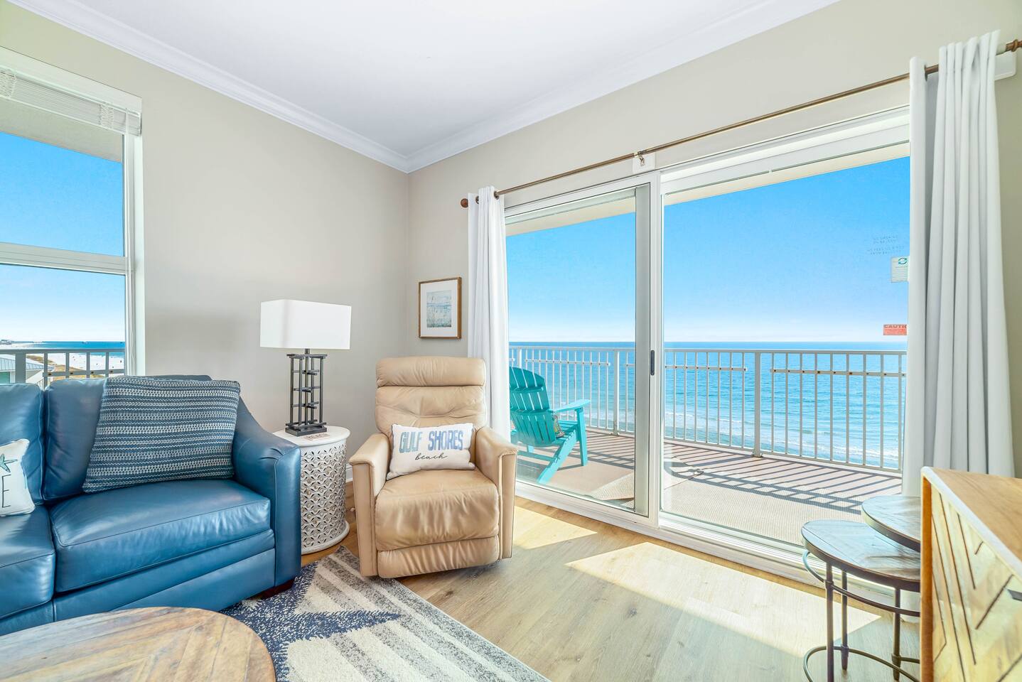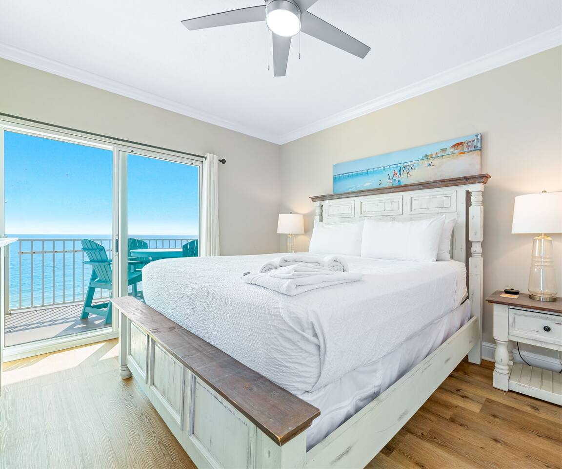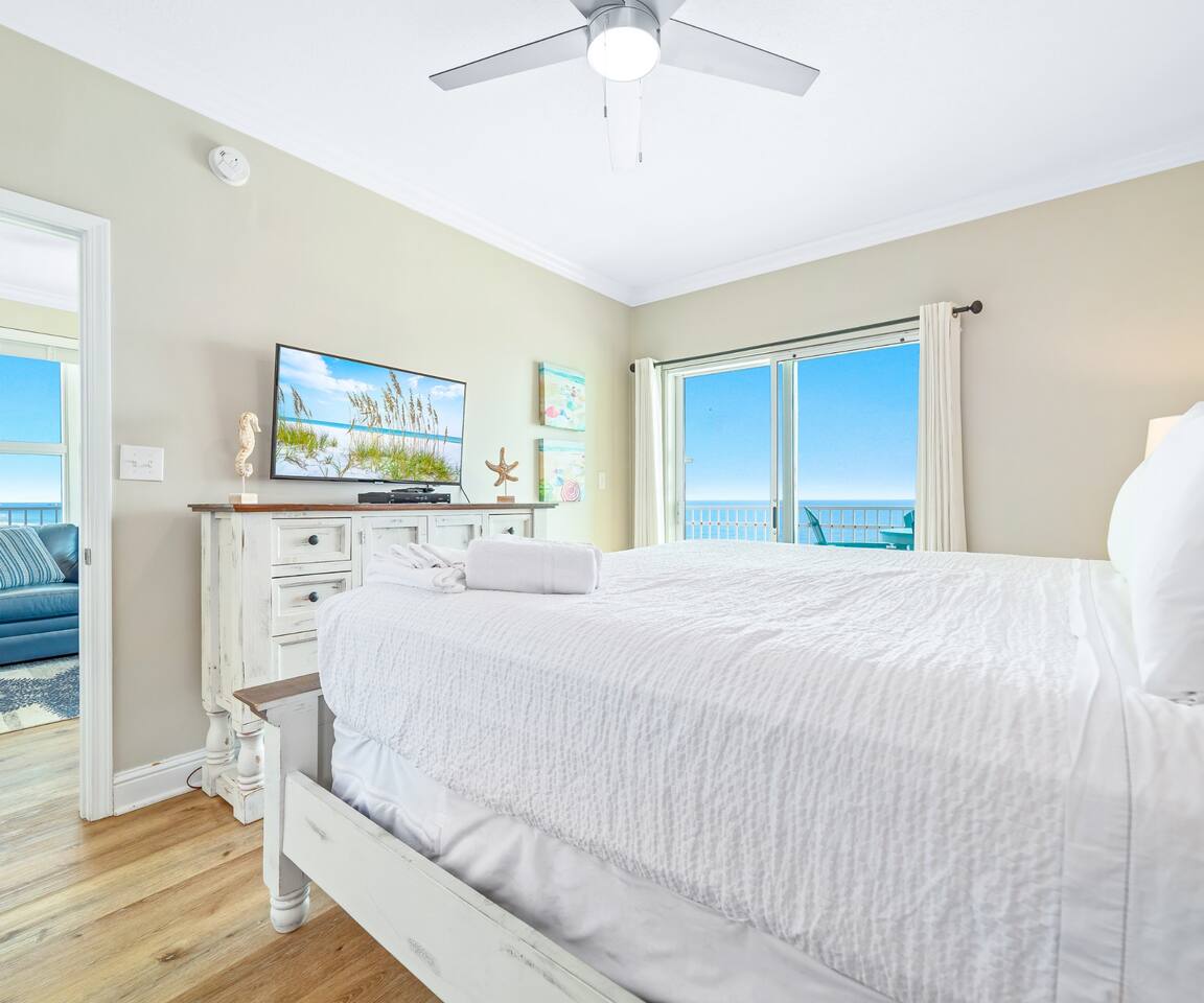 Crystal Shores #601 | Corner Gulf-Front Condo | Wraparound Balcony with Unmatched Sunset Views Welcome to Crystal Shores #601, where coastal luxury meets breathtaking views.. This corner 2-bedroom, 2-bath beachfront condo redefines the Gulf Coast experience — offering stunning water views from every room, including both bedrooms, and one of the best sunset views in Gulf Shores from its massive wraparound balcony. Perched on the 6th floor, this light-filled retreat surrounds you with panoramic vistas of the Gulf of Mexico to the south and Little Lagoon to the north via your private wraparound balcony — a rare dual-waterfront view you won’t find in most condos. From sunrise coffee over the waves to sunset cocktails bathed in golden light, every moment here feels cinematic. ✨ The Space Step into an inviting open-concept living area, where floor-to-ceiling windows showcase endless blue horizons. Relax on the plush sleeper sofa or enjoy a movie night on the 75-inch Smart TV as the sound of waves drifts through the glass doors. Outside, your wraparound Gulf-front balcony wraps the entire corner of the building — an entertainer’s dream with high-end Polywood furniture, sun loungers, and unobstructed views of the shoreline and lagoon. Watch the sun melt into the water as the sky transforms into a canvas of fiery oranges and purples — this is what vacation dreams are made of. The fully equipped kitchen features quartz countertops, stainless appliances, and everything you need to cook and dine with a view. The master suite offers a peaceful retreat with a king bed, Smart TV, private en suite bathroom, and floor-to-ceiling Gulf views that make waking up feel like paradise. The second bedroom features a queen bed, Smart TV, and tranquil views of Little Lagoon, letting guests enjoy their own slice of the waterfront experience. This unit comfortably sleeps 6 guests and delivers a rare combination of comfort, design, and coastal scenery. 🌴 Resort Amenities at Crystal Shores Guests enjoy exclusive access to all the resort’s upscale amenities: ☀ Private Beach Access – Step directly onto the sugar-white sands of Gulf Shores ☀ Indoor/Outdoor Swim-Through Pool – Perfect year-round relaxation ☀ Sauna & Game Room – Added touches for comfort and fun ☀ Beach Level Fitness Center with Amazing Views – Work out while overlooking the beach ☀ Seasonal Beach Loungers & Umbrella Rentals ☀ Parking for up to 2 vehicles – 1 pass included with your stay. 2nd pass can be purchased for $45 upon request. 📍 Prime Gulf Shores Location ☀ Direct beachfront access – You’re right on the sand ☀ 5 minute walk To Bahama Bob's a local beachfront favorite restaurant ☀ 5 minute drive to Gulf State Park and its 28+ miles of trails ☀ 5 minute drive to The Hangout ☀ Less than 10 minute drive to dolphin cruises, fishing charters, and water adventures ☀ Less than 20 minutes to The Wharf, OWA, and Adventure Island 🌅 Monthly Stays Available From November through February, enjoy discounted monthly rates of $3,200 for extended stays or snowbird getaways. Whether you’re sipping wine at sunset, waking up to Gulf-front views, or watching dolphins play from your balcony, Crystal Shores #601 offers a front-row seat to paradise with water views in every direction — truly one of the most unique and scenic condos in all of Gulf Shores. ☀ Check In Time : 4:00 PM ☀ Check Out Time : 10:00 AM Make yourself at home! Guests have full access to the entire condo, resort amenities, pools and boardwalk beach access.