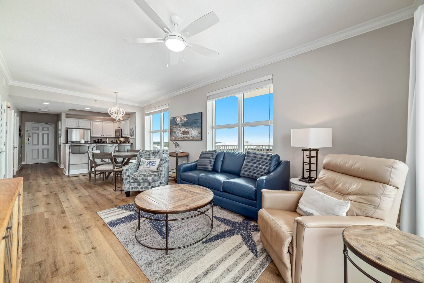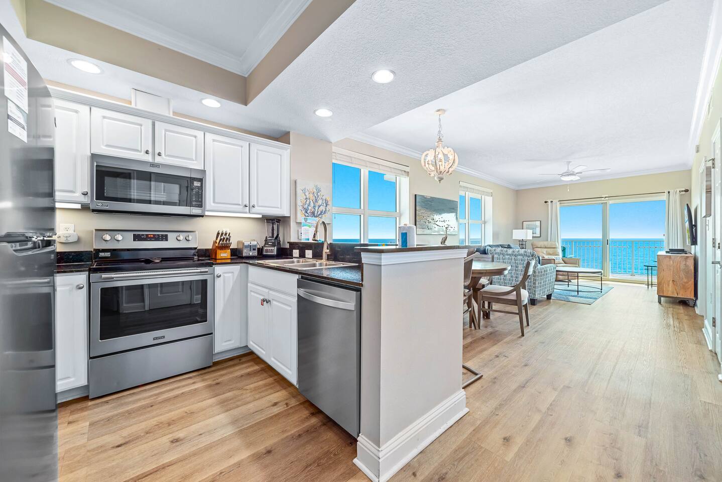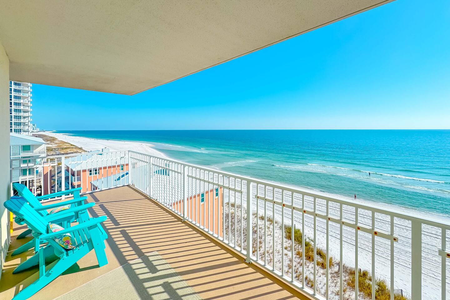 Crystal Shores #601 | Corner Gulf-Front Condo | Wraparound Balcony with Unmatched Sunset Views Welcome to Crystal Shores #601, where coastal luxury meets breathtaking views.. This corner 2-bedroom, 2-bath beachfront condo redefines the Gulf Coast experience — offering stunning water views from every room, including both bedrooms, and one of the best sunset views in Gulf Shores from its massive wraparound balcony. Perched on the 6th floor, this light-filled retreat surrounds you with panoramic vistas of the Gulf of Mexico to the south and Little Lagoon to the north via your private wraparound balcony — a rare dual-waterfront view you won’t find in most condos. From sunrise coffee over the waves to sunset cocktails bathed in golden light, every moment here feels cinematic. ✨ The Space Step into an inviting open-concept living area, where floor-to-ceiling windows showcase endless blue horizons. Relax on the plush sleeper sofa or enjoy a movie night on the 75-inch Smart TV as the sound of waves drifts through the glass doors. Outside, your wraparound Gulf-front balcony wraps the entire corner of the building — an entertainer’s dream with high-end Polywood furniture, sun loungers, and unobstructed views of the shoreline and lagoon. Watch the sun melt into the water as the sky transforms into a canvas of fiery oranges and purples — this is what vacation dreams are made of. The fully equipped kitchen features quartz countertops, stainless appliances, and everything you need to cook and dine with a view. The master suite offers a peaceful retreat with a king bed, Smart TV, private en suite bathroom, and floor-to-ceiling Gulf views that make waking up feel like paradise. The second bedroom features a queen bed, Smart TV, and tranquil views of Little Lagoon, letting guests enjoy their own slice of the waterfront experience. This unit comfortably sleeps 6 guests and delivers a rare combination of comfort, design, and coastal scenery. 🌴 Resort Amenities at Crystal Shores Guests enjoy exclusive access to all the resort’s upscale amenities: ☀ Private Beach Access – Step directly onto the sugar-white sands of Gulf Shores ☀ Indoor/Outdoor Swim-Through Pool – Perfect year-round relaxation ☀ Sauna & Game Room – Added touches for comfort and fun ☀ Beach Level Fitness Center with Amazing Views – Work out while overlooking the beach ☀ Seasonal Beach Loungers & Umbrella Rentals ☀ Parking for up to 2 vehicles – 1 pass included with your stay. 2nd pass can be purchased for $45 upon request. 📍 Prime Gulf Shores Location ☀ Direct beachfront access – You’re right on the sand ☀ 5 minute walk To Bahama Bob's a local beachfront favorite restaurant ☀ 5 minute drive to Gulf State Park and its 28+ miles of trails ☀ 5 minute drive to The Hangout ☀ Less than 10 minute drive to dolphin cruises, fishing charters, and water adventures ☀ Less than 20 minutes to The Wharf, OWA, and Adventure Island 🌅 Monthly Stays Available From November through February, enjoy discounted monthly rates of $3,200 for extended stays or snowbird getaways. Whether you’re sipping wine at sunset, waking up to Gulf-front views, or watching dolphins play from your balcony, Crystal Shores #601 offers a front-row seat to paradise with water views in every direction — truly one of the most unique and scenic condos in all of Gulf Shores. ☀ Check In Time : 4:00 PM ☀ Check Out Time : 10:00 AM Make yourself at home! Guests have full access to the entire condo, resort amenities, pools and boardwalk beach access.
