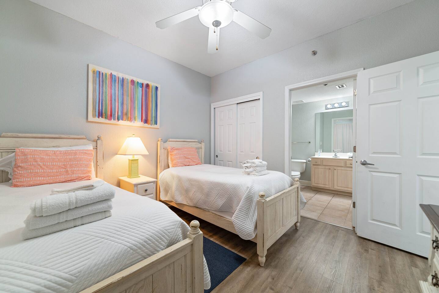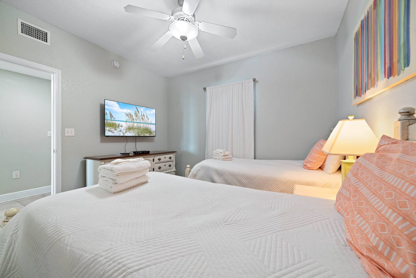 ☀ Check In Time : 4:00 PM ☀ Check Out Time : 10:00 AM ☆☆ Guest Experience & Check-In ☆☆ ✔ Self-check-in with keypad for convenience ✔ Complimentary starter set of essentials (paper goods, soap, etc.) ✔ 100% Fresh Crisp White Linens Guarantee – Every stay, every time! ☀ Parking for up to 2 vehicles – 1 pass included with your stay. 2nd pass can be purchased for $45 upon request. No trailers, RVs, or oversized vehicles. Property is located at Crystal Shores West in Gulf Shores, AL. Make yourself at home! Guests have full access to the entire condo, parking garage, and community pool/common areas.