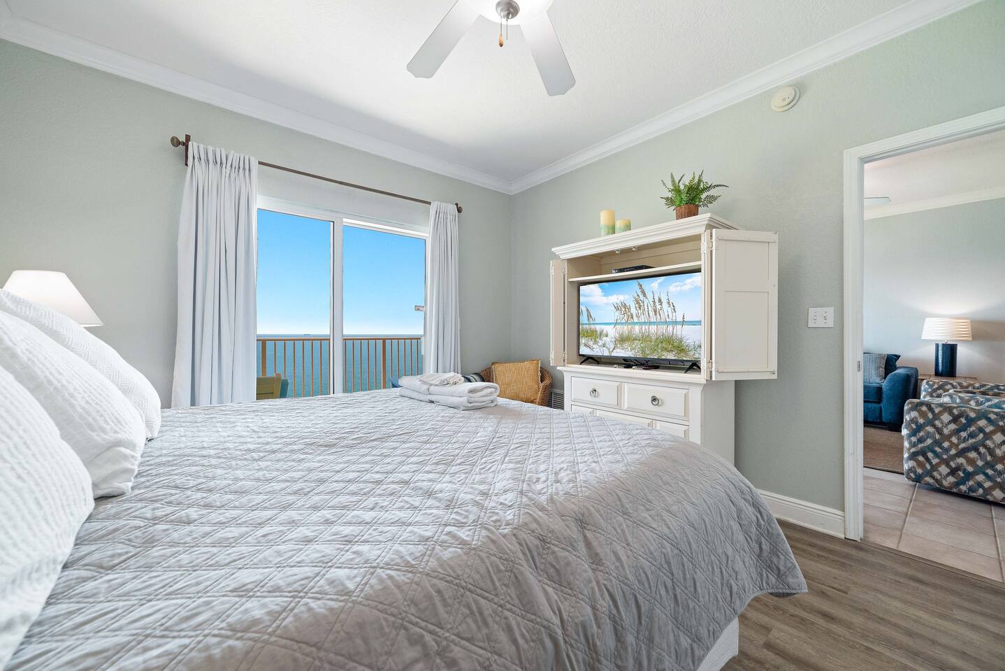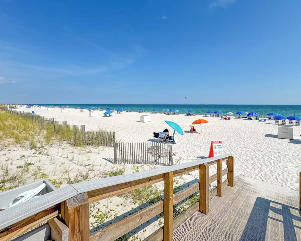 🌊 Crystal Shores West #1203 | Gulf-Front Condo | 2BR | 2BA | Sleeps 6 | 12th Floor Views | Gulf Shores, AL Welcome to Crystal Shores West #1203, a beautifully appointed 12th-floor beachfront condo in Gulf Shores, Alabama offering panoramic views of the Gulf of Mexico, direct beach access, and resort-style amenities. This 2-bedroom, 2-bath Gulf-front condo comfortably sleeps up to 6 guests and is perfect for families, couples, and small group getaways. If you’re searching for a Gulf Shores beachfront condo with indoor pool, Gulf views, and central location, this is it. 🌴 12th Floor Gulf Views + Direct Beach Access Wake up to sweeping views of the Gulf and fall asleep to the sound of waves. • Private Gulf-front balcony with panoramic views • Direct boardwalk access to sugar-white sand beaches • Perfect for morning coffee and sunset cocktails • Dolphin watching right from your balcony Free WiFi and an in-unit washer and dryer are included. 🛏 2 Bedrooms | 2 Bathrooms | Sleeps 6 This thoughtfully designed layout offers comfort and privacy. • Primary Suite – King bed, private ensuite bathroom, Smart TV, Gulf views • Guest Bedroom – Two twin beds, Smart TV, easy access to full bathroom • Living Room – Sleeper sofa with open-concept layout and beachfront views Perfect for families or couples traveling together. 🍽 Fully Equipped Kitchen • Modern appliances • Fully stocked cookware and utensils • Dining area for group meals • Open layout connecting kitchen and living space Great for preparing meals, snacks, or enjoying takeout with a view. 🏖 Resort-Style Amenities at Crystal Shores West Guests enjoy access to: • Beachfront outdoor swim-through pool • Heated indoor pool • Hot tub • Sauna • Fitness center • Game room • BBQ grills and picnic area Everything you need for a relaxing and fun beach vacation. 📍 Central Gulf Shores Location Crystal Shores West is ideally located on West Beach, close to top attractions, dining, and entertainment: • 1 mile to The Hangout • 11 miles to Flora-Bama • 3 miles to Gulf State Park • 4 miles to Gulf Shores International Airport (Jack Edwards) • 36 miles to Pensacola International Airport • 2 miles to Walmart and grocery stores • 10 miles to Orange Beach Sportsplex • 14 miles to Foley Sports Complex • 12 miles to Tanger Outlets Foley • 8 miles to The Wharf • 12 miles to Tropic Falls at OWA • 9 miles to Cobalt Restaurant • 8 miles to Coastal Orange Beach You’re just minutes from everything Gulf Shores has to offer. ❄ Snowbird Monthly Stays Available November through February $100 per night plus taxes and fees for stays of 28+ nights Message us for customized quotes. 🚗 Parking & Policies • Parking available (HOA rules apply) • No U-Hauls, trailers, boats, jet skis, buses, or oversized vehicles permitted • No smoking • No pets allowed ⭐ Why Guests Love Crystal Shores West #1203 • 12th-floor beachfront views • Direct beach access • Indoor + outdoor pool • Sleeps 6 comfortably • Central Gulf Shores location Crystal Shores West #1203 offers the perfect combination of beachfront views, resort amenities, and convenience—making it an ideal Gulf Shores vacation rental. Book your stay today and experience the best of the Alabama Gulf Coast. 🌊🏖️