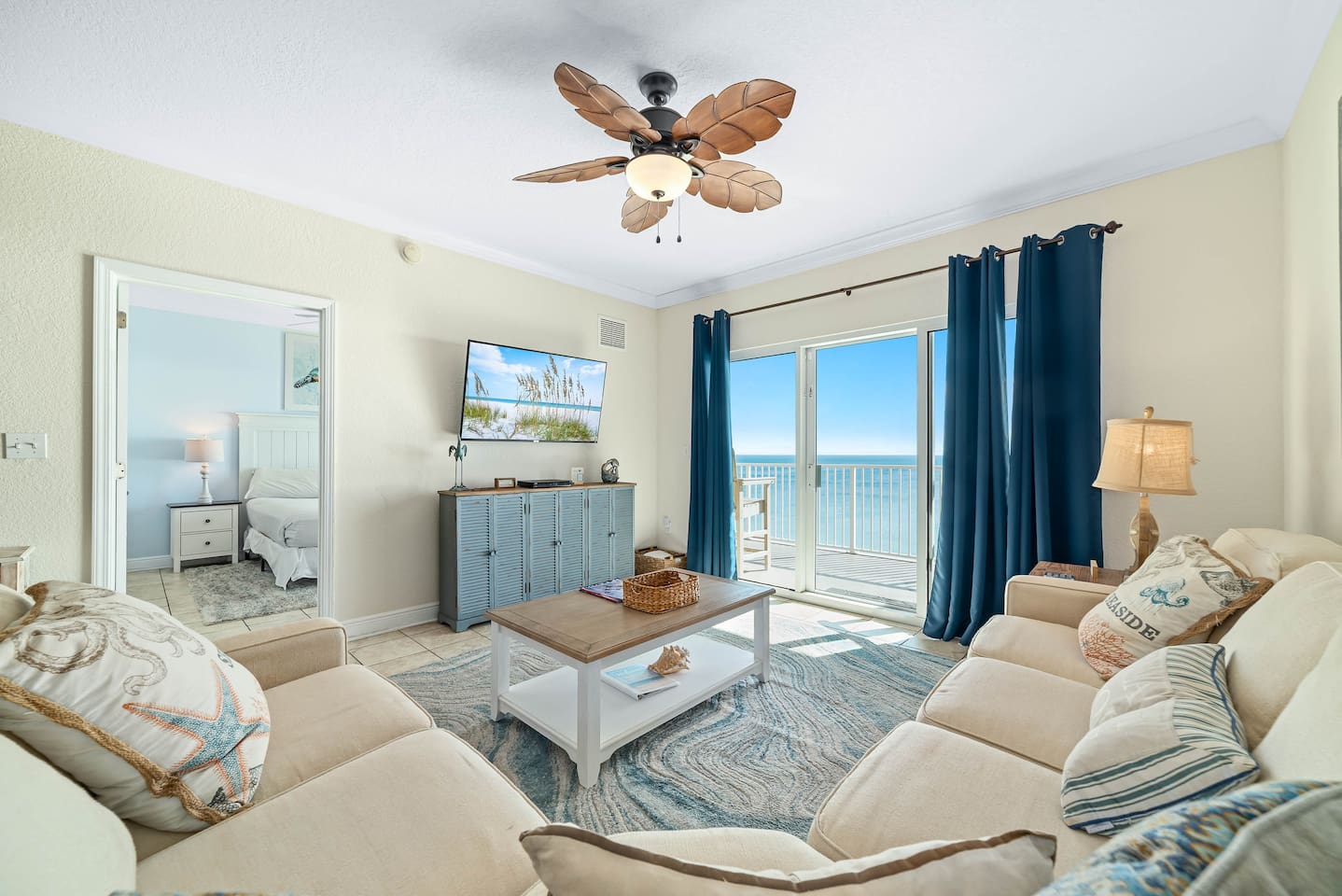 🌊 Crystal Shores West #503 | 5th-Floor Beachfront Condo in Gulf Shores, AL 🌊 Welcome to Crystal Shores West #503, a beautifully appointed 5th-floor beachfront condo located in the heart of Gulf Shores, Alabama. This 2-bedroom, 2-bath Gulf-front vacation rental offers stunning views of the Gulf of Mexico, direct beach access, and resort-style amenities—making it an ideal escape for couples, families, or small groups. The condo comfortably sleeps up to 6 guests. 🏖️ Prime Beachfront Location Step straight onto the sugar-white sands of Gulf Shores via private boardwalk access. Spend your days swimming, sunbathing, or strolling the shoreline, then relax on your private Gulf-front balcony with morning coffee or sunset cocktails while enjoying beautiful 5th-floor Gulf views. 🏡 Condo Highlights & Sleeping Arrangements Master Suite King-size bed Private ensuite bathroom Smart TV Stunning Gulf views Second Bedroom Queen-size bed Smart TV Convenient access to the second full bathroom Living Room Comfortable sofa sleeper Open-concept layout Smart TV Gorgeous beachfront views Fully Equipped Kitchen Stocked with everything needed to prepare meals and beach snacks Additional Conveniences In-unit washer & dryer Free high-speed WiFi Modern furnishings throughout 🌊 Crystal Shores West Resort-Style Amenities Beachfront outdoor swim-through pool Heated indoor pool Hot tub & sauna for relaxation Fitness center & game room BBQ grills & picnic area for casual cookouts 📍 Central Gulf Shores Location Crystal Shores West #503 is centrally located in Gulf Shores and just minutes from popular dining, shopping, and attractions including Gulf State Park, The Hangout, Waterville USA, and more—keeping you close to everything while still enjoying a peaceful beachfront stay. 📅 Snowbird Friendly | Monthly Stays Available Planning a winter escape? Monthly rentals available in January & February for $3,200/month plus taxes and fees. ⭐ Why Guests Love Crystal Shores West #503 ✔ 5th-floor beachfront views ✔ Direct beach access ✔ Sleeps 6 comfortably ✔ Resort-style amenities ✔ Central Gulf Shores location Book your stay at Crystal Shores West #503 and enjoy the perfect blend of beachfront views, comfort, and convenience for your next Gulf Shores vacation. 🌴🌊