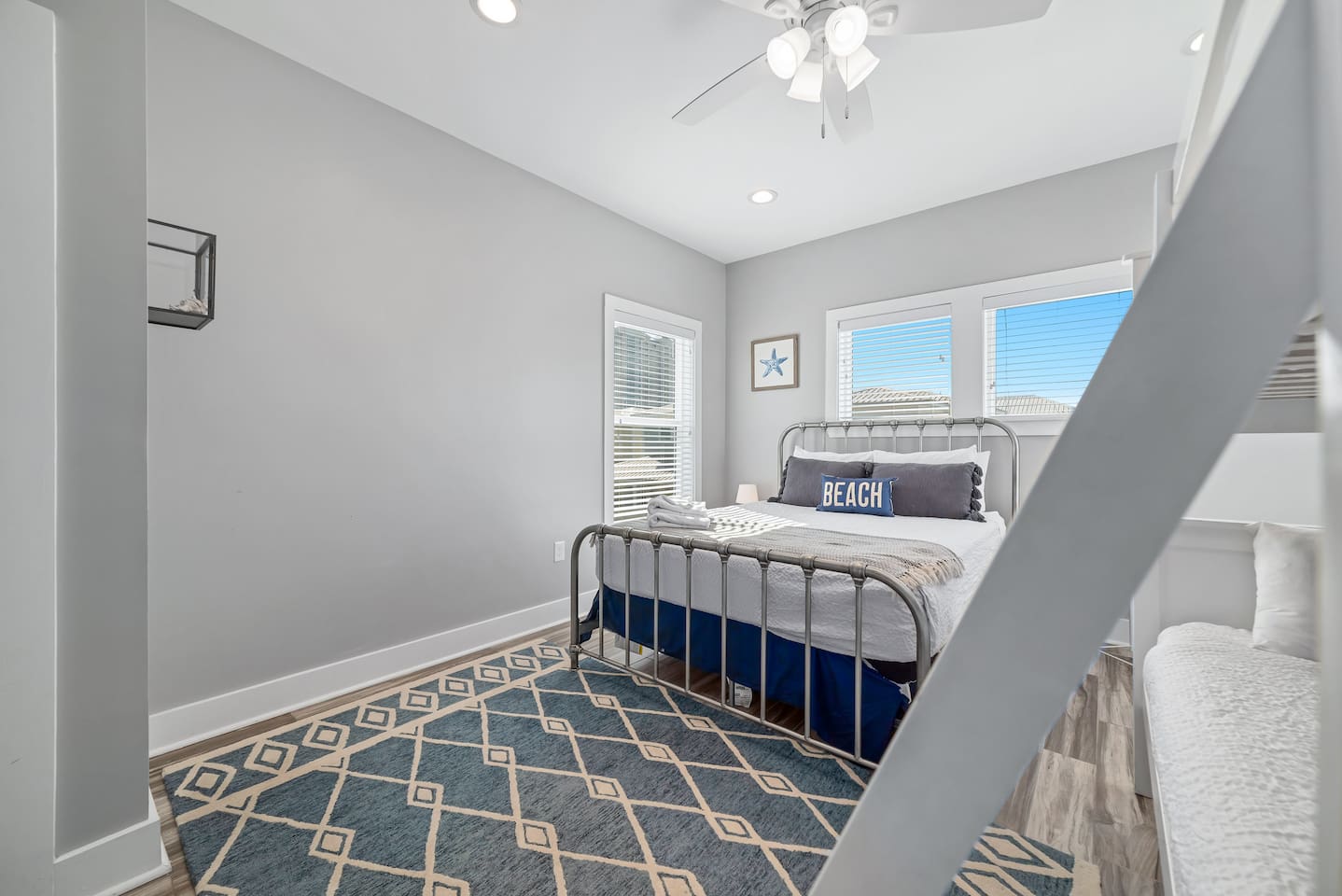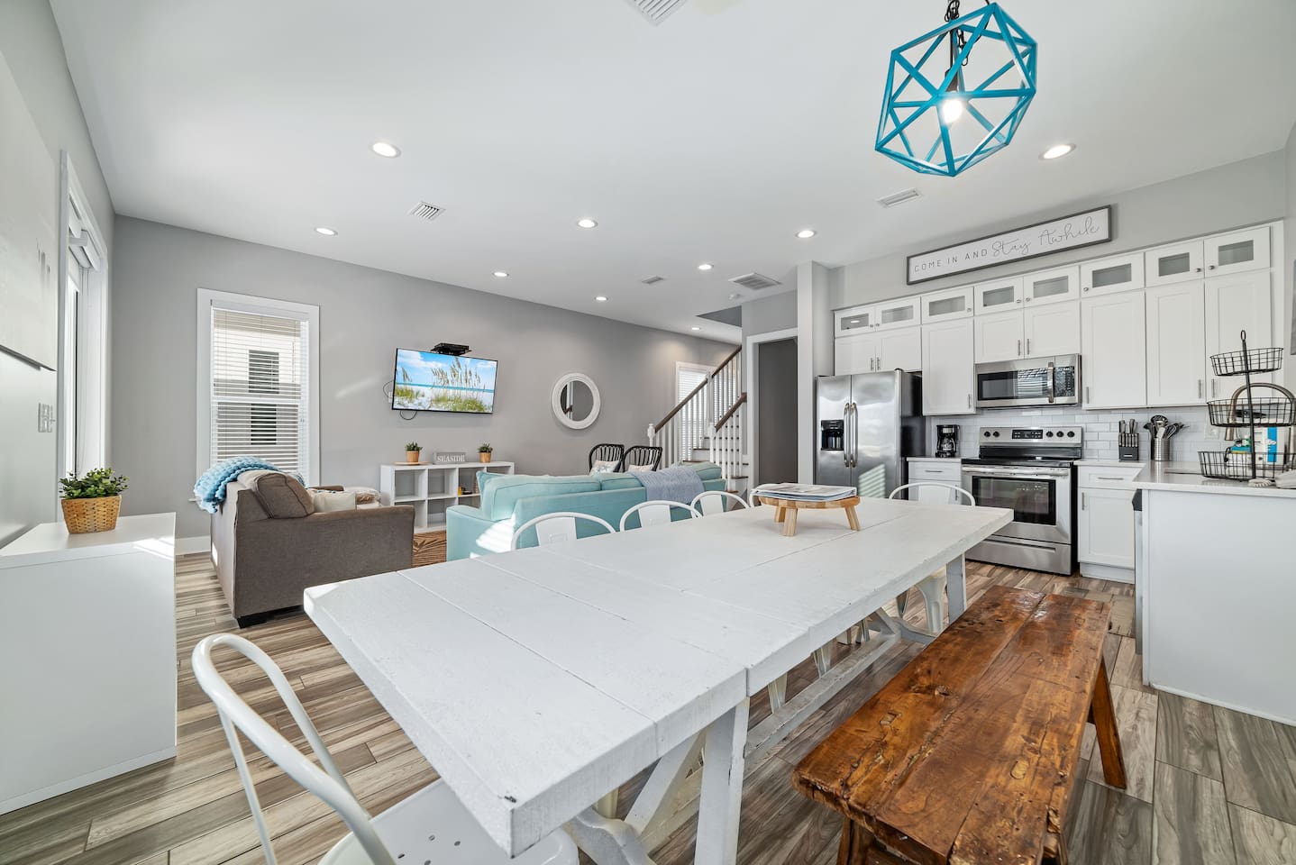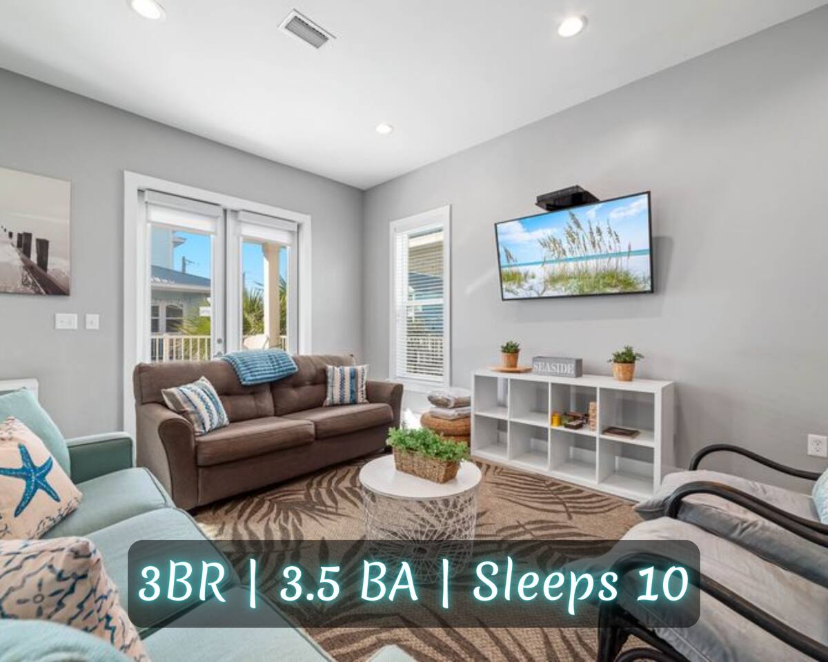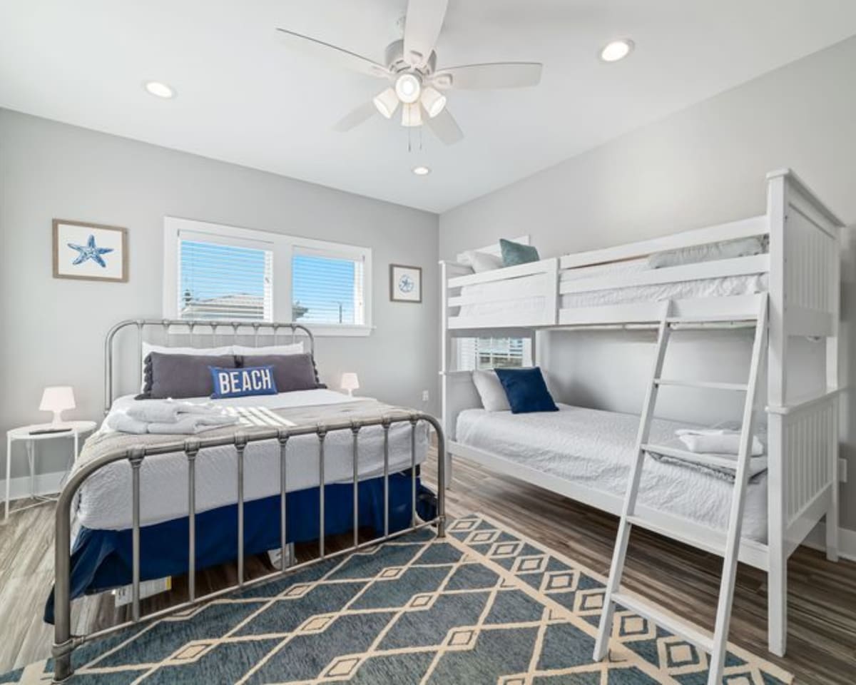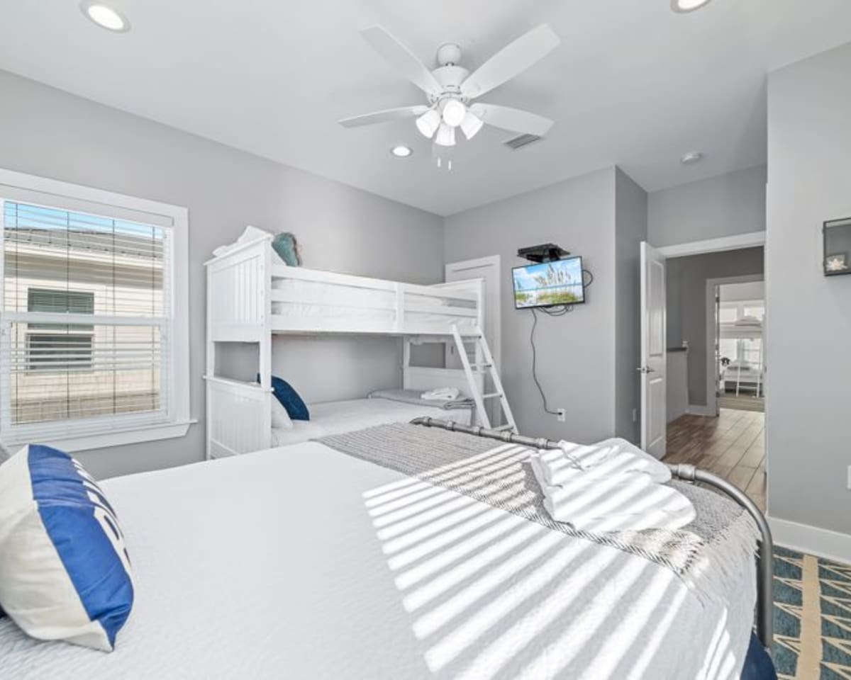 Island Time at East Point Cottages | Walk to Beach • Pool • Gulf Shores Getaway Welcome to Island Time at East Point Cottages, your laid-back beach retreat in the heart of Gulf Shores, Alabama. This beautifully designed coastal cottage is just a 2-minute walk to beach access, putting the sugar-white sand and emerald waters of the Gulf of Mexico right across the street. With a gated community pool, private balcony, and an unbeatable central location, Island Time is the perfect spot to relax, recharge, and soak up the Gulf Coast lifestyle. Whether you’re planning a family vacation, a girls’ getaway, or a peaceful beach escape, this home delivers comfort, convenience, and true island vibes. Prime Location Near the Best of Gulf Shores Island Time is ideally located near Gulf Shores’ most popular attractions while still offering a peaceful cottage-style setting. • 2-minute walk to public beach access • Less than 1 mile to The Hangout and Picnic Beach • Close to dining, shopping, and local attractions • Easy access to everything Gulf Shores has to offer Spend your days at the beach, then cool off in the gated community pool or unwind on the balcony with a refreshing coastal breeze. Spacious Coastal Cottage with Open-Concept Living Step inside this 3-bedroom, 3.5-bath beach cottage and feel instantly at ease. The open floor plan on the main living level keeps everyone connected, making it perfect for families and groups. • Bright, spacious living room with modern coastal décor • Living room sofa bed for additional sleeping space • Open dining area ideal for shared meals • Fully stocked kitchen with stainless steel appliances and granite countertops • Smart TVs with cable and streaming access • Garden-view balcony for relaxing with morning coffee or evening breezes Every detail has been thoughtfully designed to help you fully enjoy your time at the beach. Comfortable Sleeping Arrangements for the Whole Group Island Time offers comfortable, well-appointed bedrooms that make it easy to unwind after a day in the sun. First Level • Primary bedroom with king-size bed and TV • Private ensuite bathroom with modern fixtures and large walk-in shower Second Level • Bedroom 2 = Queen-size bed, twin over twin bunk, Smart TV and full bathroom with tub/shower combo • Bedroom 3 = Queen-size bed, twin over twin bunk • Bathroom connected to Bedroom 3 with tub/shower combo Combined with the sofa bed in the living room, the home easily accommodates families and groups. Convenient Amenities for a Stress-Free Stay Island Time is stocked with everything you need for a comfortable vacation. • Free WiFi • Stacked washer and dryer on the main level • Closed parking for up to 3 vehicles • Gated community pool with pool chairs • Modern, new appliances throughout Just pull up, unpack, and start enjoying island life. Why Guests Love Island Time at East Point Cottages • 2-minute walk to the beach • Central Gulf Shores location • Community pool • Living room sofa bed for flexible sleeping • Family-friendly layout • Walkable to attractions and dining • Peaceful cottage setting near the action Your Gulf Shores Beach Escape Awaits From morning beach walks to sunset breezes on the balcony, Island Time at East Point Cottages is the perfect home base for your Gulf Shores vacation. Enjoy the best of beach living with unbeatable walkability, modern comforts, and a location that truly has it all. Book your stay today and get on Island Time.