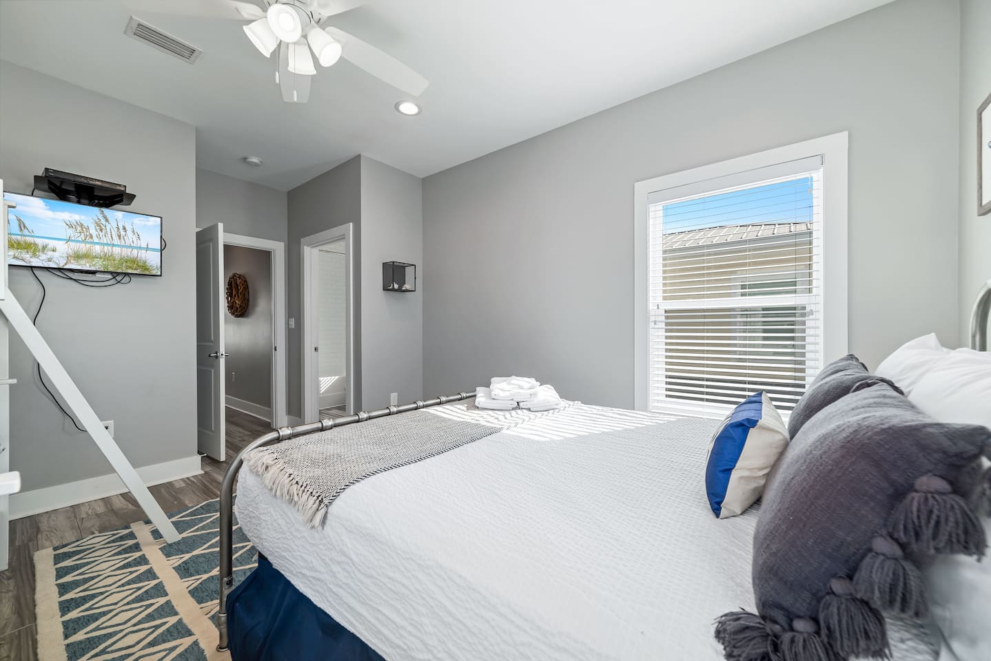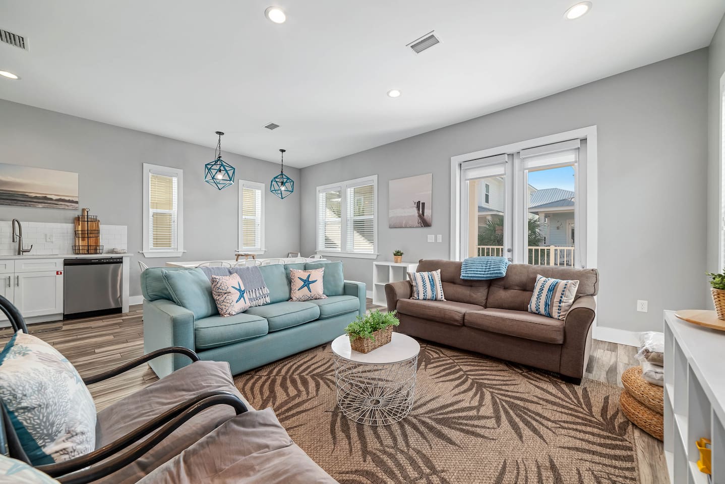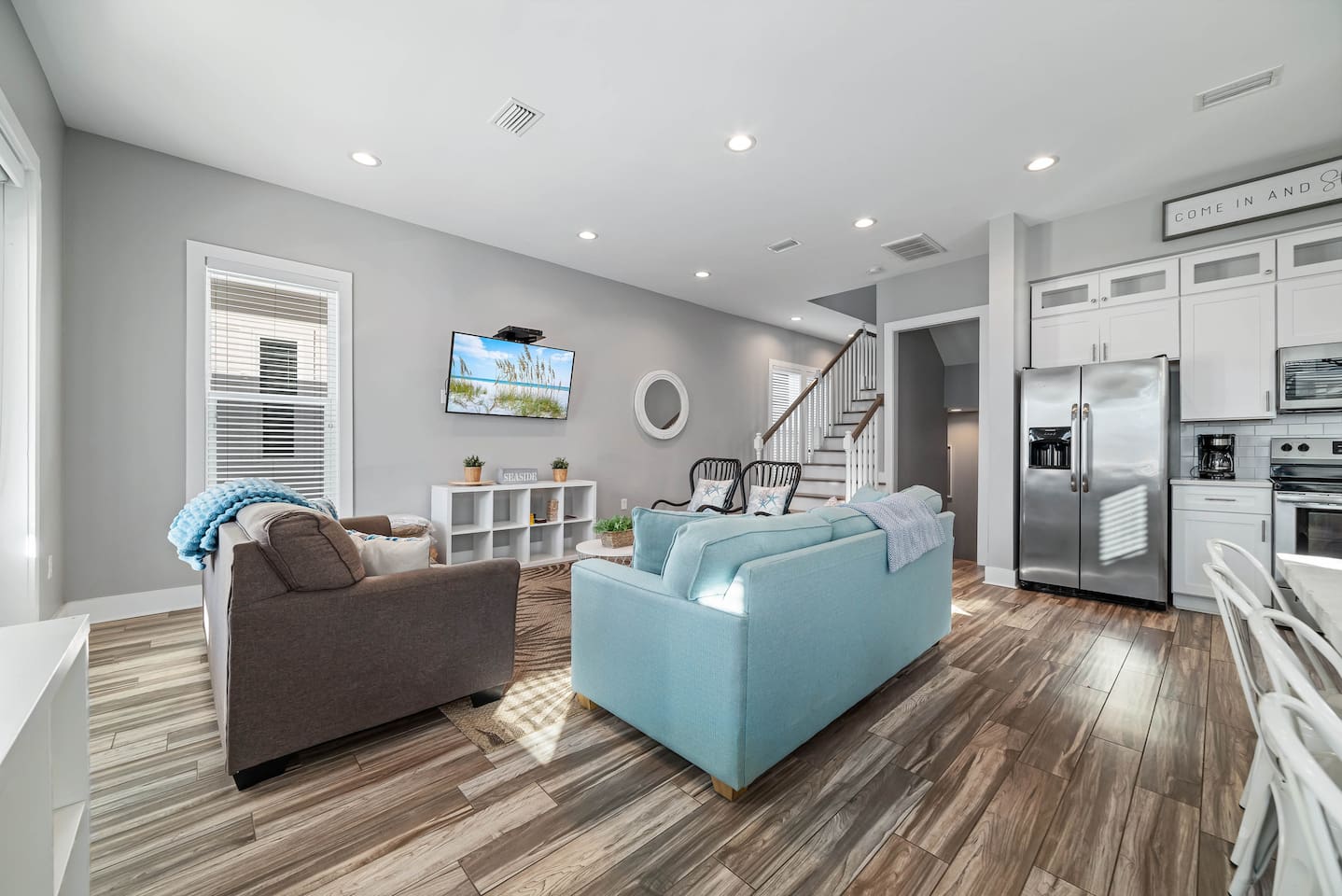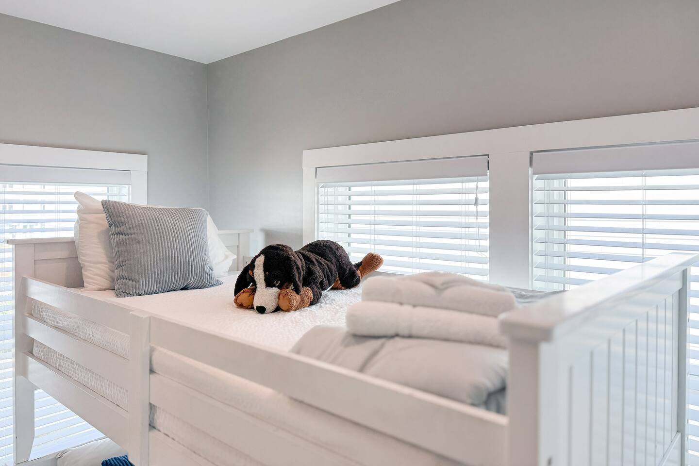 Island Time at East Point Cottages | Walk to Beach • Pool • Gulf Shores Getaway Welcome to Island Time at East Point Cottages, your laid-back beach retreat in the heart of Gulf Shores, Alabama. This beautifully designed coastal cottage is just a 2-minute walk to beach access, putting the sugar-white sand and emerald waters of the Gulf of Mexico right across the street. With a gated community pool, private balcony, and an unbeatable central location, Island Time is the perfect spot to relax, recharge, and soak up the Gulf Coast lifestyle. Whether you’re planning a family vacation, a girls’ getaway, or a peaceful beach escape, this home delivers comfort, convenience, and true island vibes. Prime Location Near the Best of Gulf Shores Island Time is ideally located near Gulf Shores’ most popular attractions while still offering a peaceful cottage-style setting. • 2-minute walk to public beach access • Less than 1 mile to The Hangout and Picnic Beach • Close to dining, shopping, and local attractions • Easy access to everything Gulf Shores has to offer Spend your days at the beach, then cool off in the gated community pool or unwind on the balcony with a refreshing coastal breeze. Spacious Coastal Cottage with Open-Concept Living Step inside this 3-bedroom, 3.5-bath beach cottage and feel instantly at ease. The open floor plan on the main living level keeps everyone connected, making it perfect for families and groups. • Bright, spacious living room with modern coastal décor • Living room sofa bed for additional sleeping space • Open dining area ideal for shared meals • Fully stocked kitchen with stainless steel appliances and granite countertops • Smart TVs with cable and streaming access • Garden-view balcony for relaxing with morning coffee or evening breezes Every detail has been thoughtfully designed to help you fully enjoy your time at the beach. Comfortable Sleeping Arrangements for the Whole Group Island Time offers comfortable, well-appointed bedrooms that make it easy to unwind after a day in the sun. First Level • Primary bedroom with king-size bed and TV • Private ensuite bathroom with modern fixtures and large walk-in shower Second Level • Bedroom 2 = Queen-size bed, twin over twin bunk, Smart TV and full bathroom with tub/shower combo • Bedroom 3 = Queen-size bed, twin over twin bunk • Bathroom connected to Bedroom 3 with tub/shower combo Combined with the sofa bed in the living room, the home easily accommodates families and groups. Convenient Amenities for a Stress-Free Stay Island Time is stocked with everything you need for a comfortable vacation. • Free WiFi • Stacked washer and dryer on the main level • Closed parking for up to 3 vehicles • Gated community pool with pool chairs • Modern, new appliances throughout Just pull up, unpack, and start enjoying island life. Why Guests Love Island Time at East Point Cottages • 2-minute walk to the beach • Central Gulf Shores location • Community pool • Living room sofa bed for flexible sleeping • Family-friendly layout • Walkable to attractions and dining • Peaceful cottage setting near the action Your Gulf Shores Beach Escape Awaits From morning beach walks to sunset breezes on the balcony, Island Time at East Point Cottages is the perfect home base for your Gulf Shores vacation. Enjoy the best of beach living with unbeatable walkability, modern comforts, and a location that truly has it all. Book your stay today and get on Island Time.