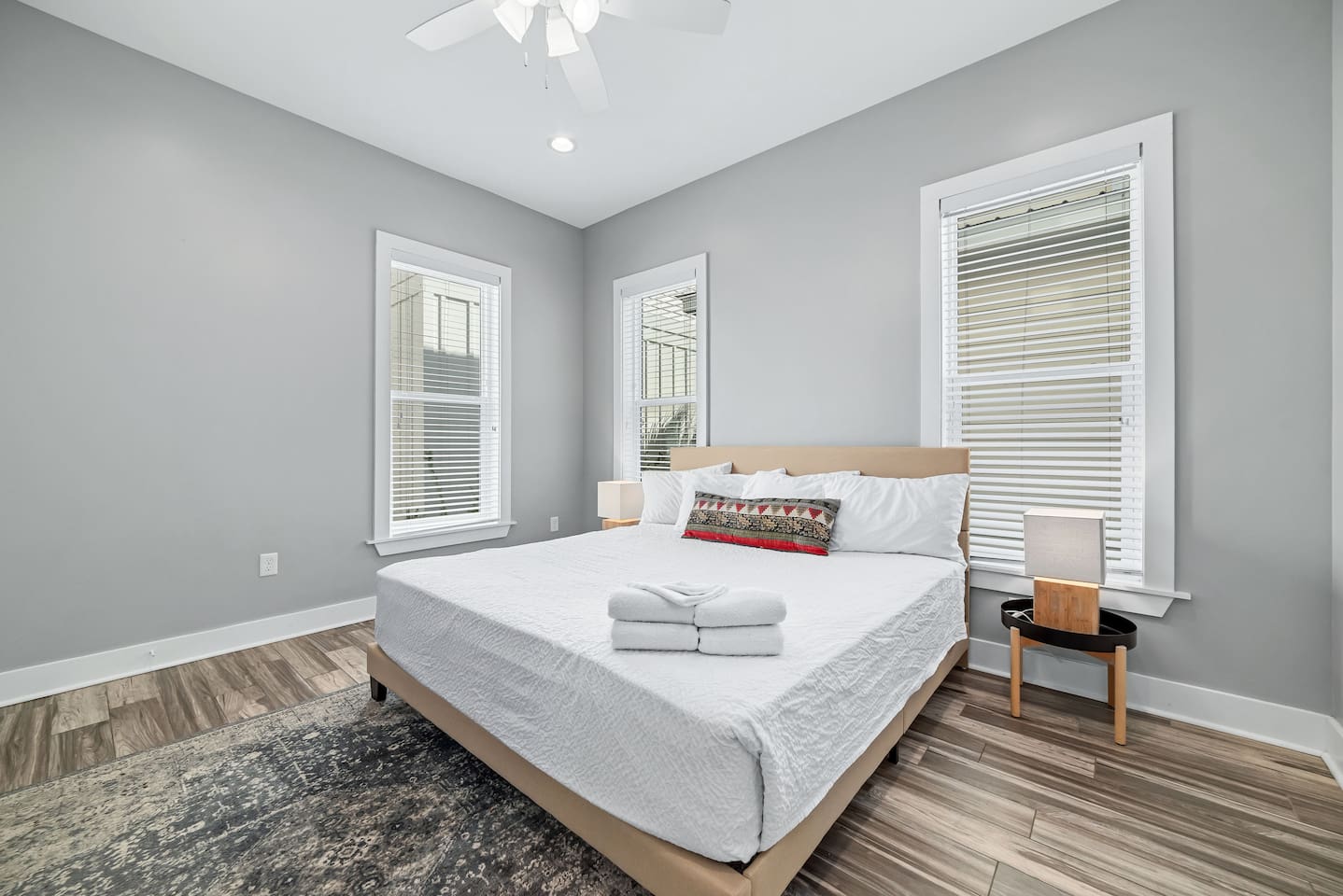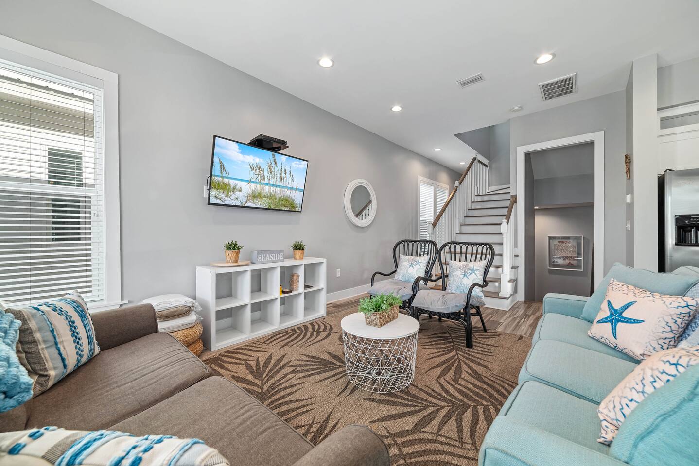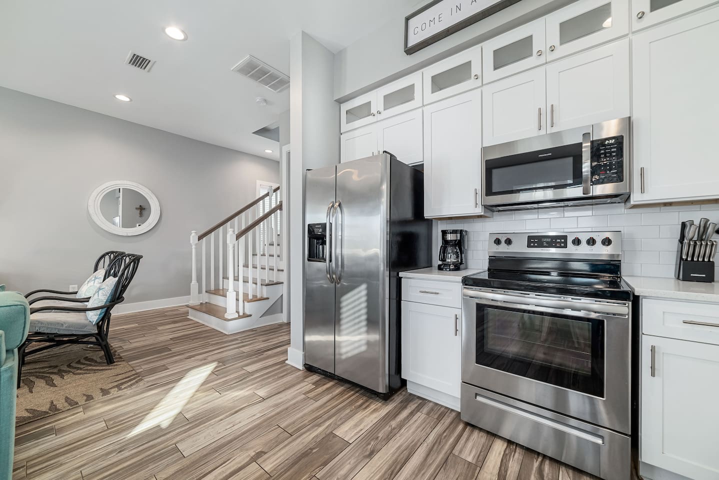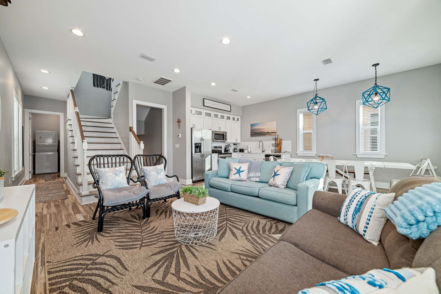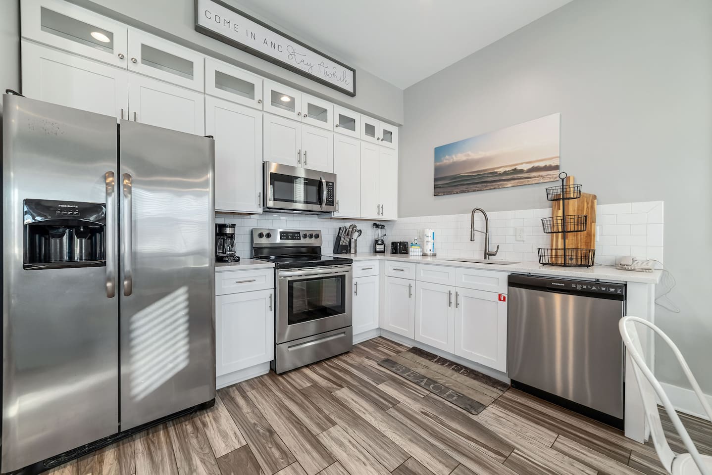 Island Time at East Point Cottages | Walk to Beach • Pool • Gulf Shores Getaway Welcome to Island Time at East Point Cottages, your laid-back beach retreat in the heart of Gulf Shores, Alabama. This beautifully designed coastal cottage is just a 2-minute walk to beach access, putting the sugar-white sand and emerald waters of the Gulf of Mexico right across the street. With a gated community pool, private balcony, and an unbeatable central location, Island Time is the perfect spot to relax, recharge, and soak up the Gulf Coast lifestyle. Whether you’re planning a family vacation, a girls’ getaway, or a peaceful beach escape, this home delivers comfort, convenience, and true island vibes. Prime Location Near the Best of Gulf Shores Island Time is ideally located near Gulf Shores’ most popular attractions while still offering a peaceful cottage-style setting. • 2-minute walk to public beach access • Less than 1 mile to The Hangout and Picnic Beach • Close to dining, shopping, and local attractions • Easy access to everything Gulf Shores has to offer Spend your days at the beach, then cool off in the gated community pool or unwind on the balcony with a refreshing coastal breeze. Spacious Coastal Cottage with Open-Concept Living Step inside this 3-bedroom, 3.5-bath beach cottage and feel instantly at ease. The open floor plan on the main living level keeps everyone connected, making it perfect for families and groups. • Bright, spacious living room with modern coastal décor • Living room sofa bed for additional sleeping space • Open dining area ideal for shared meals • Fully stocked kitchen with stainless steel appliances and granite countertops • Smart TVs with cable and streaming access • Garden-view balcony for relaxing with morning coffee or evening breezes Every detail has been thoughtfully designed to help you fully enjoy your time at the beach. Comfortable Sleeping Arrangements for the Whole Group Island Time offers comfortable, well-appointed bedrooms that make it easy to unwind after a day in the sun. First Level • Primary bedroom with king-size bed and TV • Private ensuite bathroom with modern fixtures and large walk-in shower Second Level • Bedroom 2 = Queen-size bed, twin over twin bunk, Smart TV and full bathroom with tub/shower combo • Bedroom 3 = Queen-size bed, twin over twin bunk • Bathroom connected to Bedroom 3 with tub/shower combo Combined with the sofa bed in the living room, the home easily accommodates families and groups. Convenient Amenities for a Stress-Free Stay Island Time is stocked with everything you need for a comfortable vacation. • Free WiFi • Stacked washer and dryer on the main level • Closed parking for up to 3 vehicles • Gated community pool with pool chairs • Modern, new appliances throughout Just pull up, unpack, and start enjoying island life. Why Guests Love Island Time at East Point Cottages • 2-minute walk to the beach • Central Gulf Shores location • Community pool • Living room sofa bed for flexible sleeping • Family-friendly layout • Walkable to attractions and dining • Peaceful cottage setting near the action Your Gulf Shores Beach Escape Awaits From morning beach walks to sunset breezes on the balcony, Island Time at East Point Cottages is the perfect home base for your Gulf Shores vacation. Enjoy the best of beach living with unbeatable walkability, modern comforts, and a location that truly has it all. Book your stay today and get on Island Time.