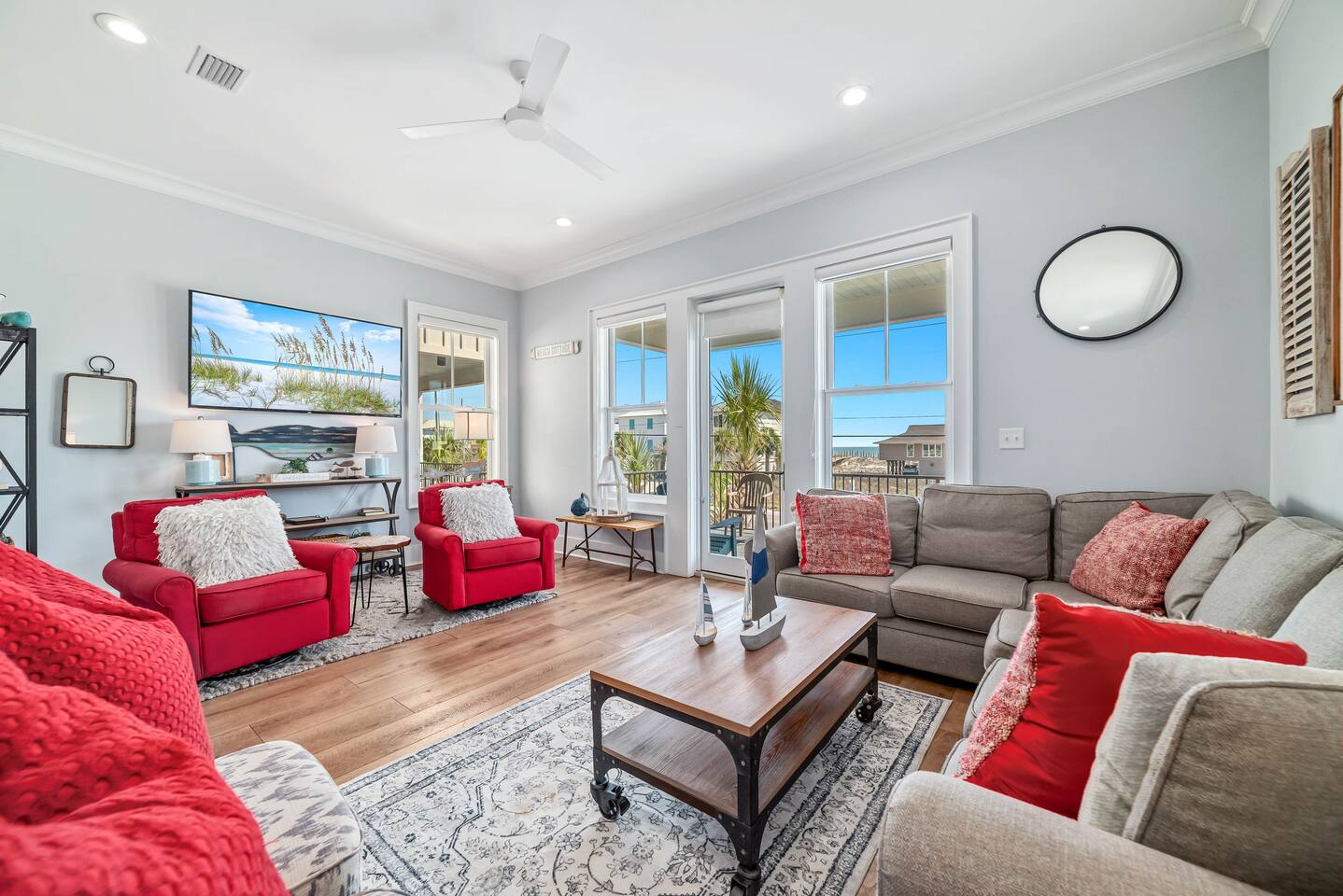 ☀ 4 BR/4 BA home located directly across the street from the beach ☀ Short 3 minute walk to the beautiful white sand beaches of the Emerald Coast ☀ 5 minute drive to “The Hangout”, restaurants & shopping ☀ Lagoon with 100 ft fishing pier located directly behind the community with breathtaking views of Little Lagoon ☀ Private Balcony Boasting Gorgeous Gulf Views ☀ Loaded with Beach Gear and Family Friendly amenities Learn More Below!