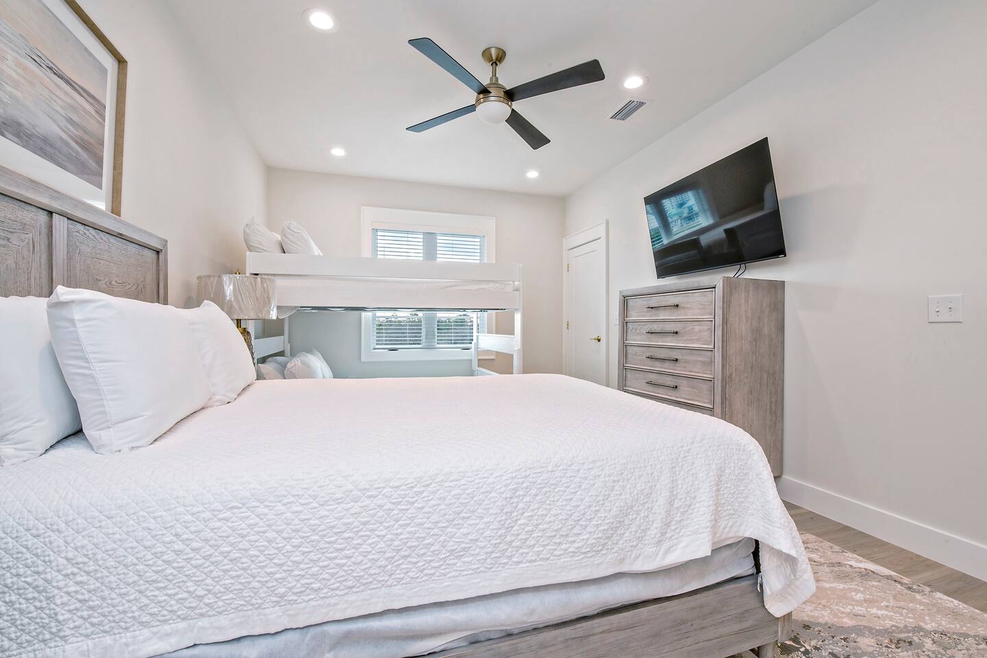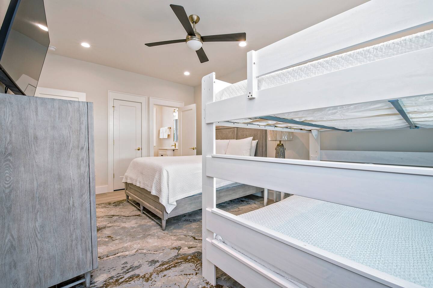 🌊 “Latitude Adjustment” @ Beach Club Cottage #59 | Private Pool | 5BR | 4BA | Sleeps 16 | Gulf Shores, AL Welcome to “Latitude Adjustment” @ Beach Club Cottage #59, a spacious and beautifully furnished 5-bedroom, 4-bathroom private pool home in Gulf Shores, Alabama. Located inside the highly sought-after Beach Club community, this two-story coastal retreat is designed for large families, multi-family vacations, sports teams, and group getaways. With room to sleep up to 16 guests, a private backyard pool, and easy access to sugar-white sand beaches, Latitude Adjustment delivers the perfect combination of space, comfort, and resort-style living. 🌴 Private Pool + Outdoor Living Step outside to your own backyard oasis. The outdoor space features: • Private swimming pool • Lounge seating for relaxing in the sun • Covered porch for shade • Outdoor dining area • Built-in gas grill • Fenced yard for added privacy The home is just a 5–10 minute walk to private beach access, where you can enjoy the emerald waters and soft white sand Gulf Shores is famous for. 🏡 Spacious Two-Story Layout Latitude Adjustment offers a thoughtfully designed two-level floor plan, providing both gathering space and privacy for large groups. The open-concept main living area includes: • Comfortable seating for the whole group • Large Smart TV • Natural light throughout • Seamless flow between living room, dining area, and kitchen Free high-speed WiFi and a private washer and dryer are included. 🍽 Fully Equipped Gourmet Kitchen The kitchen is built to accommodate large groups. • Granite countertops • Stainless steel appliances • Fully stocked cookware and utensils • Ample cabinet space • Dining table with room for gathering Perfect for seafood dinners, holiday meals, or easy breakfasts before heading to the beach. 🛏 5 Bedrooms | 4 Bathrooms | Sleeps 16 This layout is ideal for large or multi-generational groups. First Floor Bedrooms (3) • Primary Suite (#1) – King bed, Smart TV, private ensuite bathroom with soaking tub, oversized walk-in shower, and dual vanities • Bedroom #2 – King bed, Smart TV, private ensuite bathroom • Bedroom #3 – Full-over-Full bunk bed with Smart TV Upstairs Bedrooms (2) • Bedroom #4 – Queen bed plus Full-over-Full bunk bed, Smart TV, private ensuite bathroom • Bedroom #5 – Twin-over-Twin bunk bed with Smart TV With four full bathrooms, everyone has space and comfort. 🌊 Beach Club Community Amenities Guests at Beach Club Cottage #59 enjoy access to: • Private beach access • Walking trails • Tennis, basketball & shuffleboard courts • Playground • Outdoor hot tubs & tower pools • The Village Hideaway restaurant & arcade • The Village Creamery • The Mercantile • Community events & food trucks ⭐ Optional Clubhouse Amenities Guests may purchase optional Clubhouse wristbands directly from the resort to access: • Indoor pool • Clubhouse outdoor pool • Fitness center • Arcade • Sand Island • Organized resort activities Daily Amenity Charge (per property, not per person): • Day 1 – $57 • Day 2 – $55 • Day 3 – $53 • Day 4 – $51 • Day 5 – $49 • Day 6 – $47 • Day 7 – $45 Fees are set by the resort and subject to change. 📍 Prime Gulf Shores Location Conveniently located in Gulf Shores with easy access to area attractions: • 14 miles to The Hangout • 16 miles to Gulf Shores International Airport (Jack Edwards) • 45 miles to Pensacola International Airport • 13 miles to Gulf State Park • 14 miles to Walmart & grocery stores • 24 miles to Orange Beach Sportsplex • 19 miles to Foley Sports Complex • 20 miles to Tanger Outlets Foley • 22 miles to The Wharf • 1 mile to Kiva Dunes Golf Course • 8 miles to Sassy Bass Amazin’ Grill • 6 miles to Tacky Jack’s • 7 miles to Fort Morgan Historic Site • 9 miles to Bon Secour National Wildlife Refuge • 6 miles to Fort Morgan Marina Enjoy a peaceful beach setting while remaining within driving distance of dining, golf, shopping, and entertainment. ❄ Snowbird Monthly Stays Available November through February $160 per night plus taxes and fees for stays of 28+ nights Message us for customized quotes. 🚗 Parking & Policies • 2 parking passes included • Additional passes available for $40 each • Vehicles must be pre-registered • No golf carts permitted • No U-Hauls, trailers, boats, jet skis, buses, or oversized vehicles • No pets • No smoking • Must be 25+ to rent “Latitude Adjustment” @ Beach Club Cottage #59 offers the rare combination of private pool living, five bedrooms, space for 16 guests, and access to one of Gulf Shores’ premier resort communities. Book your stay today and experience the ultimate large-group beach getaway on Alabama’s beautiful Gulf Coast. 🌊🌴