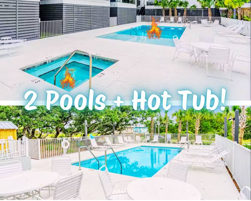 ☀ Pools and hot tub are open year round from 8:00am-10:00pm. 1 of the pools is heated seasonally from March thru May. The unheated pool will typically stay warm enough to swim through October and into November. ☀ We use a fantastic house cleaning company that provides clean bedding, towels/wash cloths, and a starter kit for each new guest that includes 1 use of the following items to get you started for your trip: Dishwasher soap, liquid dish soap, paper towels, toilet paper, trash bags and laundry detergent. ☀ This house is on stilts so their are stairs! Stairs to get to the main living area and then stairs to get to the upstairs bedrooms.