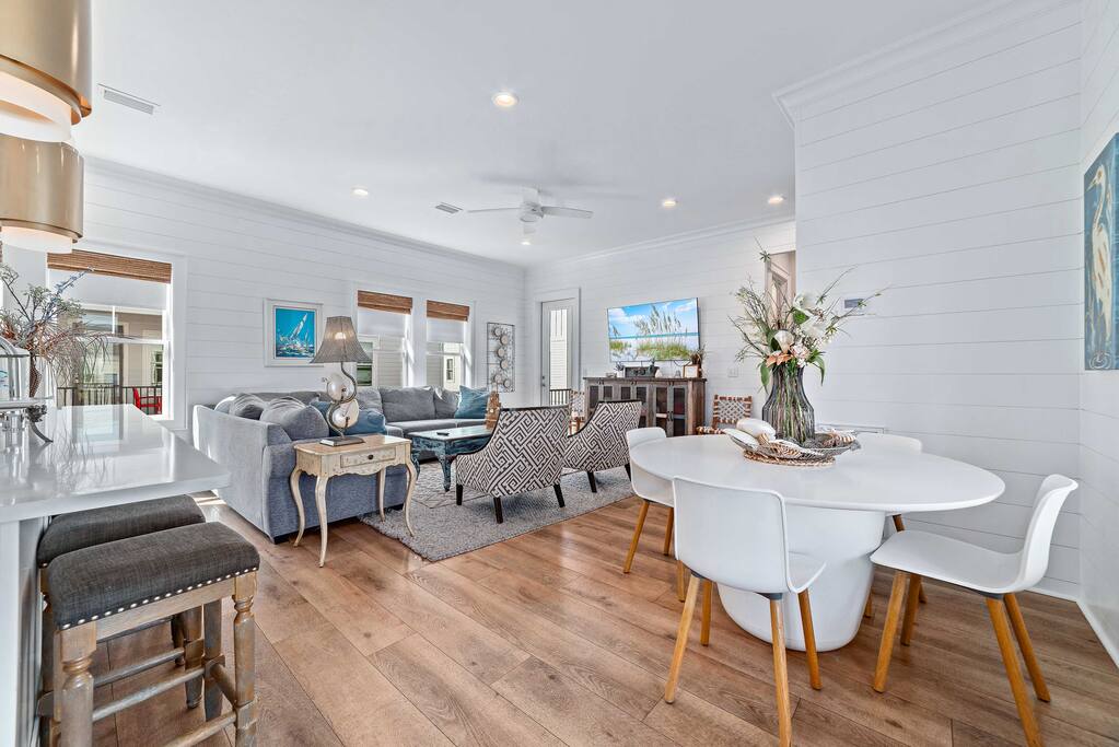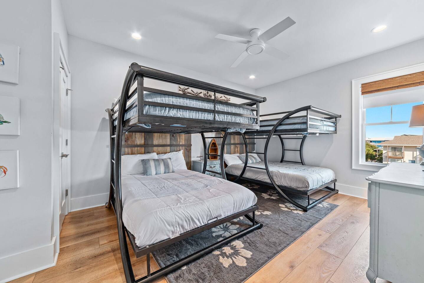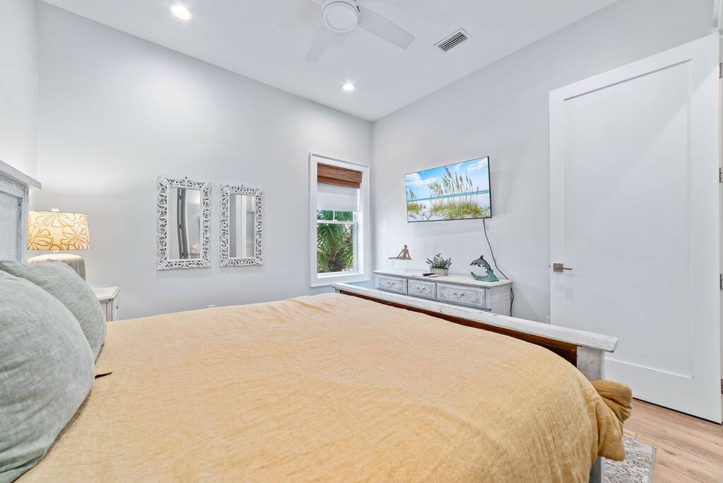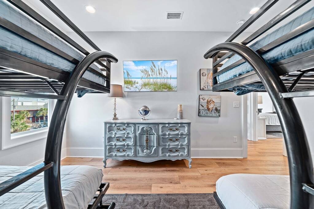 🌴 Oasis Beach Cottage @ Lost Dunes #S — Your Gulf Shores Escape Awaits Welcome to Oasis Beach Cottage @ Lost Dunes #S, a bright, upscale 4-bedroom, 4-bath luxury beach home perfectly positioned in the heart of Gulf Shores, Alabama. Just a 2-minute walk to the beach with public access directly across the street, this 1,800 sq ft retreat delivers the best of both worlds—quick access to the Gulf and the peaceful beauty of Little Lagoon. Whether you're planning a family vacation, couples’ getaway, or group retreat, this home offers comfort, convenience, and coastal charm at every turn. ✨ Key Features You’ll Love 🛏 4 Bedrooms • 4 Bathrooms (All Ensuite!) Perfect for groups who value space and privacy. Bedroom 1 (Main Floor Primary): King bed + ensuite bathroom + Smart TV Bedroom 2: King bed + private balcony access + ensuite bathroom + Smart TV Bedroom 3: King bed + ensuite bathroom + Smart TV Bedroom 4: Bunk room with 2 full-over-full bunks + ensuite bathroom + Smart TV Every bedroom features its own private bathroom—no sharing, no waiting. 🌊 Steps to the Beach + Pocket Gulf View Grab your beach gear and be on the sand in minutes. From the balcony, enjoy a charming pocket view of the Gulf, perfect for morning coffee or relaxing at sunset. 🏡 Modern, Bright & Upscale Interior Coastal-bright design with 10' ceilings Spacious open-concept living room with a large flat-screen TV Fully stocked kitchen designed for large group meals Fast free WiFi Full-size washer & dryer ☀️ Outdoor Living at Its Best This home features 3 balconies, each thoughtfully furnished for relaxation: Outdoor dining table Plenty of seating Cute porch swing Plus: Carport parking for up to 4 vehicles Outdoor shower Beach closet stocked with beach gear Kayak included for exploring Little Lagoon 🏊♂️ Resort-Style Amenities at Lost Dunes Guests enjoy access to: 2 community pools Community hot tub One pool seasonally heated from March through May 📍 Perfect Central Gulf Shores Location You’ll be less than 5 minutes from restaurants, shopping, and attractions. Situated perfectly between the beach and Little Lagoon, enjoy the ultimate convenience—walk to the Gulf, then kayak the lagoon. 👶 Family-Friendly Essentials Pack ’n Play (bring your own sheets) High chair 📆 Snowbird-Friendly — Monthly Stays Available November–February monthly rate: $4,000/month Send us a message for extended-stay details. 🌴 Book Your Oasis Today With upscale design, premium amenities, and an unbeatable location, Oasis Beach Cottage @ Lost Dunes #S offers everything you need for the perfect Gulf Shores beach vacation. Reserve your stay now—your coastal oasis is waiting!