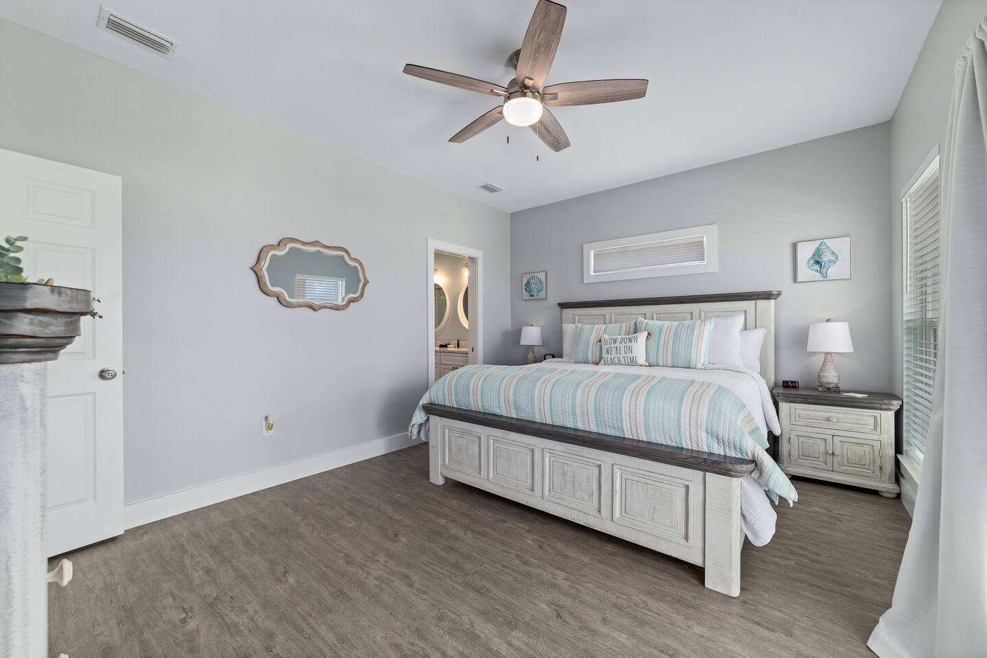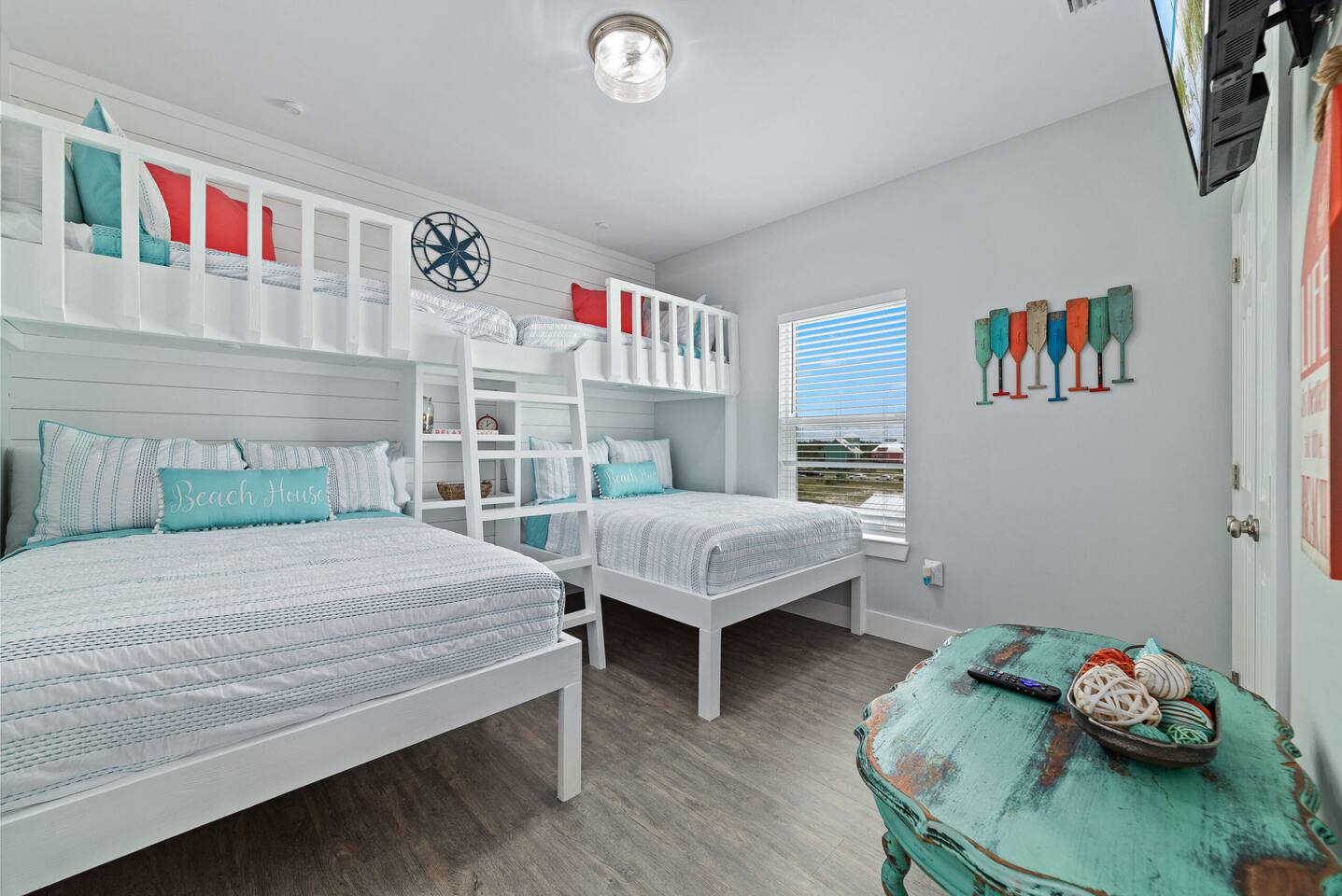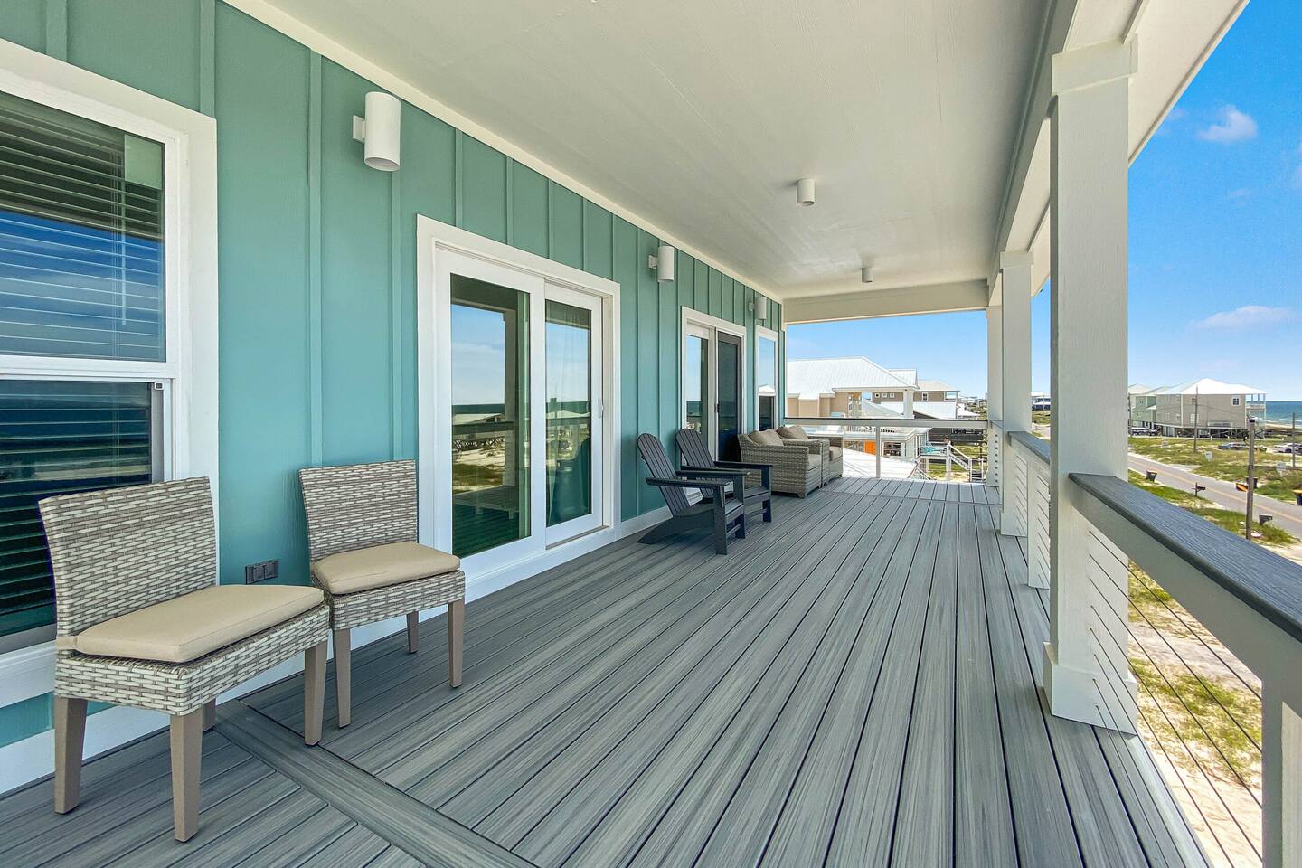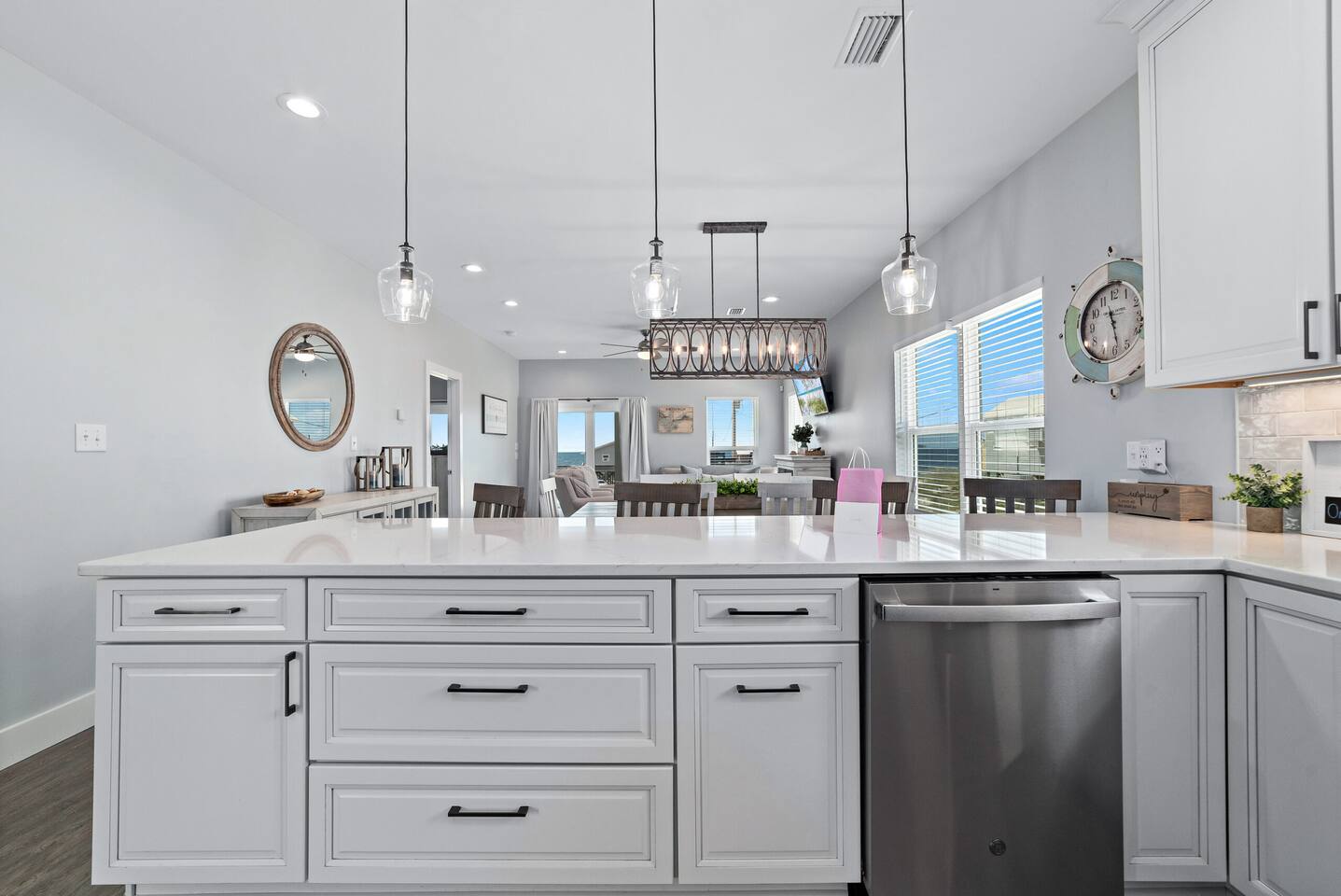 Welcome to "On Beach Time!" Experience the pinnacle of luxury at our exquisite Gulf Shores beach home. Newly furnished with stunning décor, this exclusive retreat boasts a private heated pool and is mere steps away from the pristine white sand beaches of the Emerald Coast. Indulge in breathtaking Gulf views over a cup of morning coffee on the spacious balcony...then spend your afternoons enjoying a range of amenities including cornhole, paddle boards, kayaks, and more. Elevate your beach vacation with unparalleled comfort and style at our Gulf Shores oasis...we would love for you to be our guest! ☆☆ KEY FEATURES ☆☆ ☀ Sleeps 12; 4 BR/3.5 BA, 2 king beds, 1 queen bed and 2 sets of twin over full bunks ☀ Smart TVs in each bedroom ☀ 2 Living Rooms: Each equipped with large Smart TVs and ample seating ☀ Modern and well-equipped kitchen with ample seating ☀ 3 private balconies with ample seating, 2 with Gulf views and the other overlooking the private pool ☀ Christmas Tree provided for holiday stays! ☀ Above and beyond luxury amenities listed below ☆☆ 1ST FLOOR ☆☆ *1ST FLOOR DECK* Panoramic ocean view Bar height table with 4 chairs 2 Adirondack chairs with side table Dining table with six chairs *KITCHEN* Fully stocked kitchen Lots of extra cabinet space for food and beverage storage Quartz countertops Stainless steel appliances Cooktop stove Dishwasher Microwave Dishes and Utensils Ninja DualBrew Coffee Maker Keurig K- Slim single serve K-Cup coffee maker Mr Coffee 12 cup coffee maker Primula Burke Deluxe Cold Brew Iced Coffee Maker Ninja blender/food processor Popcorn maker Crock pots Phone charging station *DINING ROOM* Large Dining room table seats up to 8 4 additional seats at island bar *LIVING ROOM* 2 sofas 2 Comfy, Plush swivel chairs 55in Roku TV Gulf Front view with Patio door leading to expansive deck *1ST FLOOR MASTER SUITE* King Size Luxury Mattress 42in Roku TV Gulf Front view with Patio door leading to expansive deck Master Bath Walk in shower Dual Shower Head with Adjustable Handheld shower head Dual sink vanity Master Closet Walk in closet with organizer *HALL HALF BATH* Toilet with single vanity *LAUNDRY ROOM* Washer Dryer Iron/ Ironing Board Vacuum Drying rack Beach towels ☆☆ 2ND FLOOR ☆☆ *2ND FLOOR DECK* Panoramic ocean view Two Adirondack chairs with side table 2 large cushioned wicker patio chairs with cup holders 2 additional patio wicker chairs *2ND FLOOR MASTER SUITE* King size luxury mattress 42in Roku TV Spacious closet with organizer Gulf Front view with Patio door leading to expansive deck Master Bath Walk in shower Dual Shower Head with Adjustable Handheld shower head Dual sink vanity *2ND FLOOR FAMILY ROOM* Large sectional sofa Sofa Comfy plush swivel chair 70in Roku TV Sound bar with surround sound PlayStation 4 gaming system with games Family board games Gulf Front view with Patio door leading to expansive deck *2ND FLOOR BATHROOM* Tub/Shower combo Dual sink vanity *2ND FLOOR QUEEN BEDROOM* Queen size luxury mattress 1 comfy, Plush swivel chair 42in Roku TV Large Spacious closet with clothes and shoe organizer Makeup vanity set with chair *BUNK ROOM* Custom made bunk beds 2 Twin beds over 2 Full Beds with luxury mattresses Spacious closet with organizer 42in Roku TV *POOL VIEW BACK DECK* 2 patio wicker chairs and table Shoe organizer ☆☆ OUTDOOR AREA & AMENITIES ☆☆ Heated Pool Bar with mini refrigerator & icemaker Pool lounge chairs Outdoor shower with hot/cold water 2 picnic tables Charcoal grill Patio furniture Mini Basketball goal Tiki ring toss Game Large Jenga Corn Hole Beach cart Chairs Umbrellas Boogie Boards Beach Toys Bicycles Paddle board Kayak Beach chairs Beach tent Boogie boards Large beach wagon with balloon tires Large beach wheeled cooler ★★ Book Today & Let Us Take Care Of You In Gulf Shores! ★★