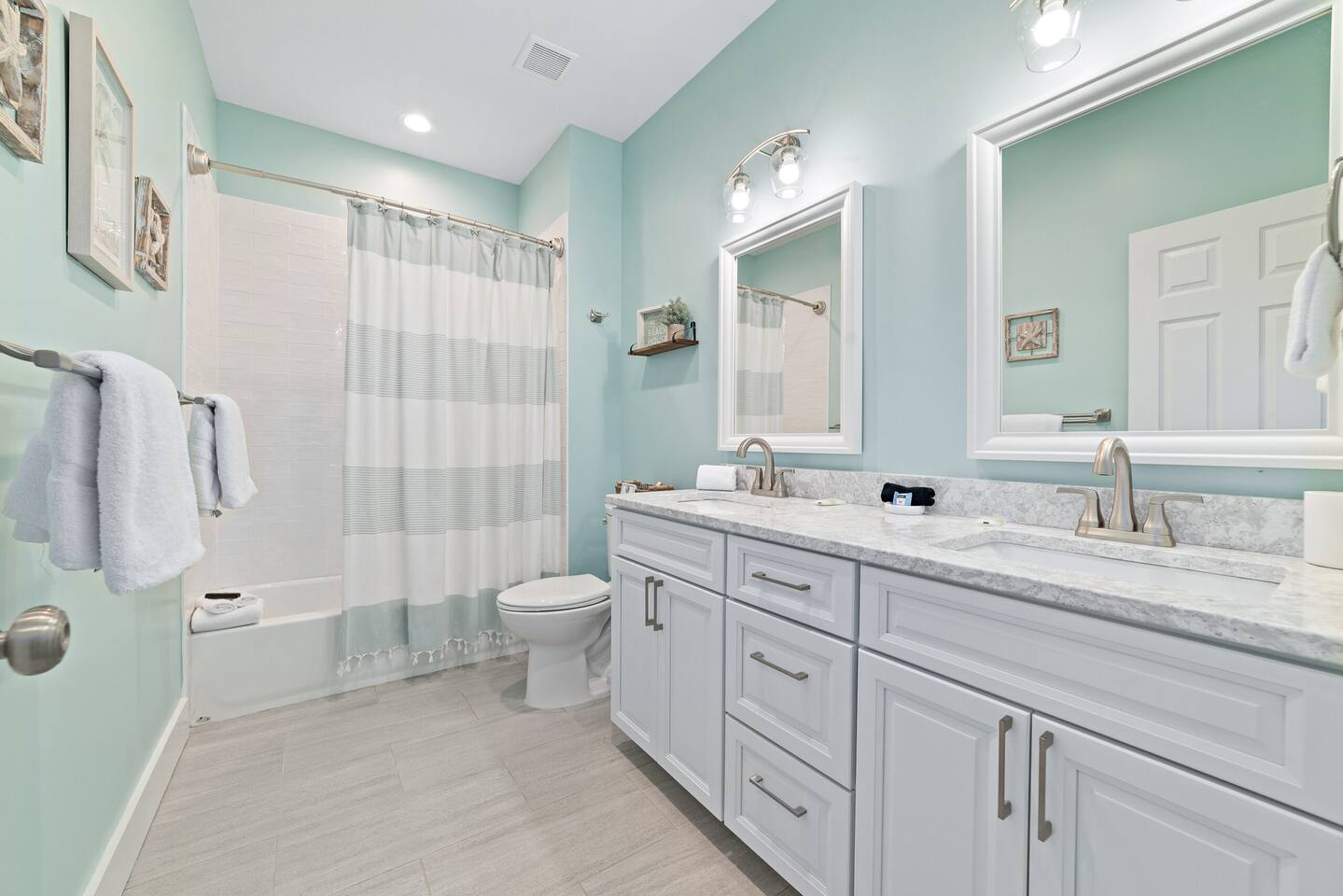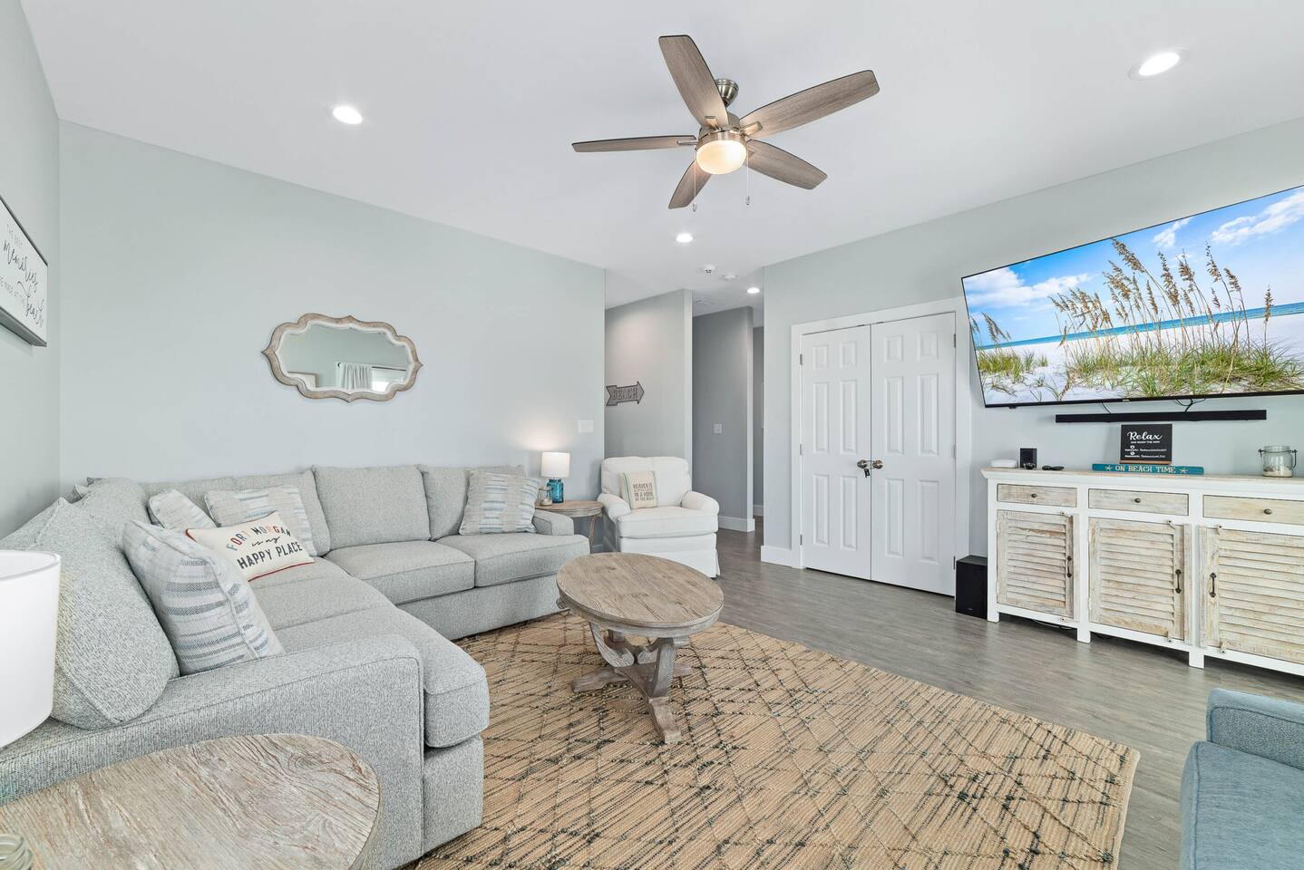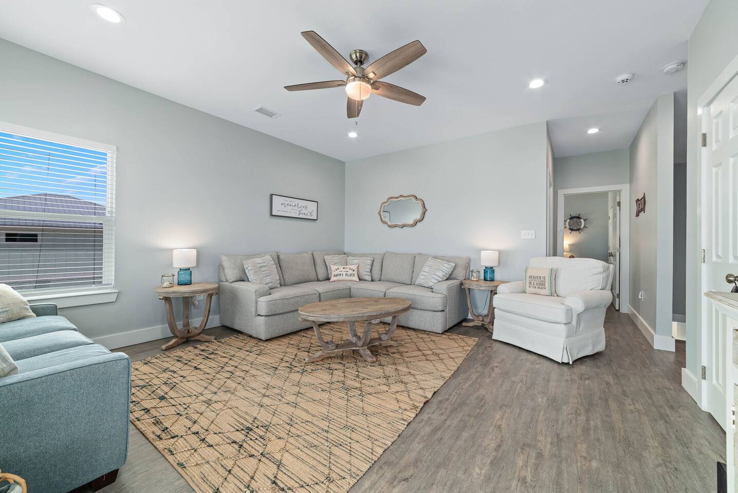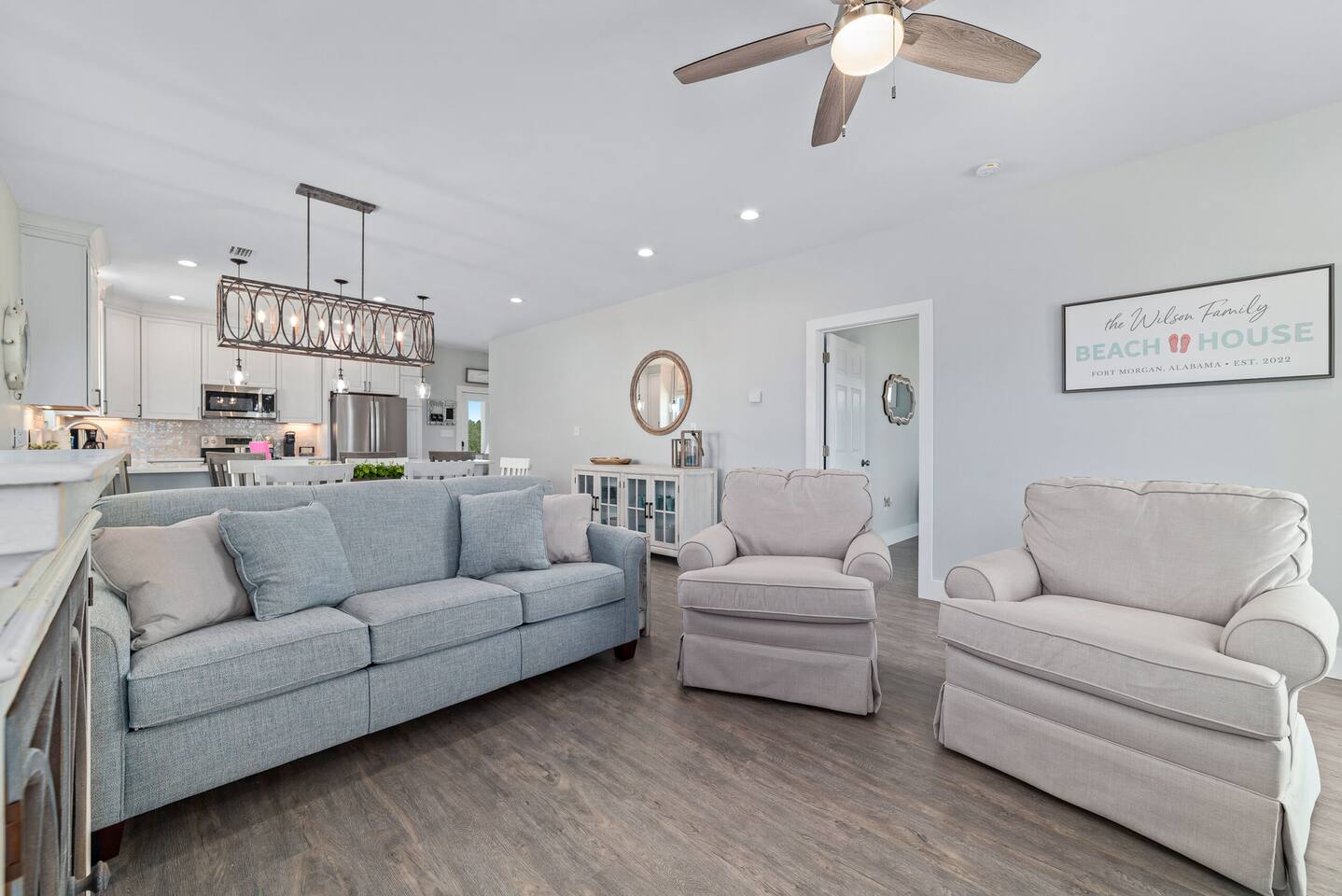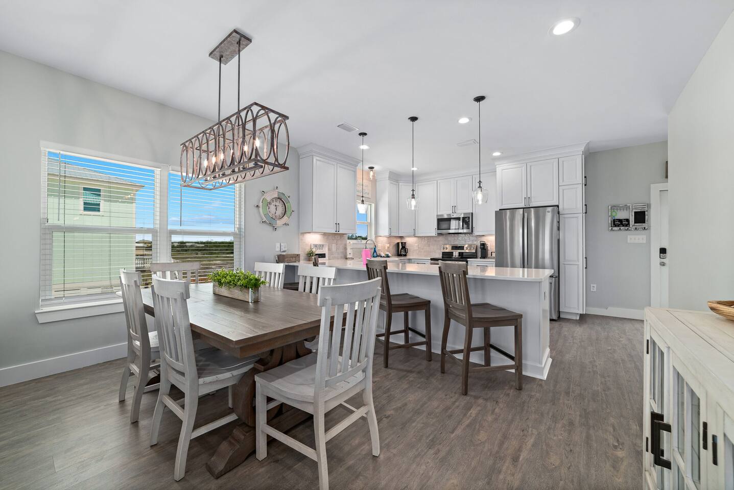 Welcome to "On Beach Time!" Experience the pinnacle of luxury at our exquisite Gulf Shores beach home. Newly furnished with stunning décor, this exclusive retreat boasts a private heated pool and is mere steps away from the pristine white sand beaches of the Emerald Coast. Indulge in breathtaking Gulf views over a cup of morning coffee on the spacious balcony...then spend your afternoons enjoying a range of amenities including cornhole, paddle boards, kayaks, and more. Elevate your beach vacation with unparalleled comfort and style at our Gulf Shores oasis...we would love for you to be our guest! ☆☆ KEY FEATURES ☆☆ ☀ Sleeps 12; 4 BR/3.5 BA, 2 king beds, 1 queen bed and 2 sets of twin over full bunks ☀ Smart TVs in each bedroom ☀ 2 Living Rooms: Each equipped with large Smart TVs and ample seating ☀ Modern and well-equipped kitchen with ample seating ☀ 3 private balconies with ample seating, 2 with Gulf views and the other overlooking the private pool ☀ Christmas Tree provided for holiday stays! ☀ Above and beyond luxury amenities listed below ☆☆ 1ST FLOOR ☆☆ *1ST FLOOR DECK* Panoramic ocean view Bar height table with 4 chairs 2 Adirondack chairs with side table Dining table with six chairs *KITCHEN* Fully stocked kitchen Lots of extra cabinet space for food and beverage storage Quartz countertops Stainless steel appliances Cooktop stove Dishwasher Microwave Dishes and Utensils Ninja DualBrew Coffee Maker Keurig K- Slim single serve K-Cup coffee maker Mr Coffee 12 cup coffee maker Primula Burke Deluxe Cold Brew Iced Coffee Maker Ninja blender/food processor Popcorn maker Crock pots Phone charging station *DINING ROOM* Large Dining room table seats up to 8 4 additional seats at island bar *LIVING ROOM* 2 sofas 2 Comfy, Plush swivel chairs 55in Roku TV Gulf Front view with Patio door leading to expansive deck *1ST FLOOR MASTER SUITE* King Size Luxury Mattress 42in Roku TV Gulf Front view with Patio door leading to expansive deck Master Bath Walk in shower Dual Shower Head with Adjustable Handheld shower head Dual sink vanity Master Closet Walk in closet with organizer *HALL HALF BATH* Toilet with single vanity *LAUNDRY ROOM* Washer Dryer Iron/ Ironing Board Vacuum Drying rack Beach towels ☆☆ 2ND FLOOR ☆☆ *2ND FLOOR DECK* Panoramic ocean view Two Adirondack chairs with side table 2 large cushioned wicker patio chairs with cup holders 2 additional patio wicker chairs *2ND FLOOR MASTER SUITE* King size luxury mattress 42in Roku TV Spacious closet with organizer Gulf Front view with Patio door leading to expansive deck Master Bath Walk in shower Dual Shower Head with Adjustable Handheld shower head Dual sink vanity *2ND FLOOR FAMILY ROOM* Large sectional sofa Sofa Comfy plush swivel chair 70in Roku TV Sound bar with surround sound PlayStation 4 gaming system with games Family board games Gulf Front view with Patio door leading to expansive deck *2ND FLOOR BATHROOM* Tub/Shower combo Dual sink vanity *2ND FLOOR QUEEN BEDROOM* Queen size luxury mattress 1 comfy, Plush swivel chair 42in Roku TV Large Spacious closet with clothes and shoe organizer Makeup vanity set with chair *BUNK ROOM* Custom made bunk beds 2 Twin beds over 2 Full Beds with luxury mattresses Spacious closet with organizer 42in Roku TV *POOL VIEW BACK DECK* 2 patio wicker chairs and table Shoe organizer ☆☆ OUTDOOR AREA & AMENITIES ☆☆ Heated Pool Bar with mini refrigerator & icemaker Pool lounge chairs Outdoor shower with hot/cold water 2 picnic tables Charcoal grill Patio furniture Mini Basketball goal Tiki ring toss Game Large Jenga Corn Hole Beach cart Chairs Umbrellas Boogie Boards Beach Toys Bicycles Paddle board Kayak Beach chairs Beach tent Boogie boards Large beach wagon with balloon tires Large beach wheeled cooler ★★ Book Today & Let Us Take Care Of You In Gulf Shores! ★★