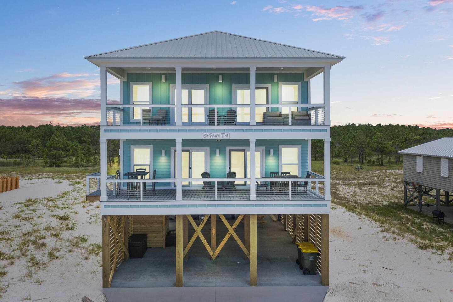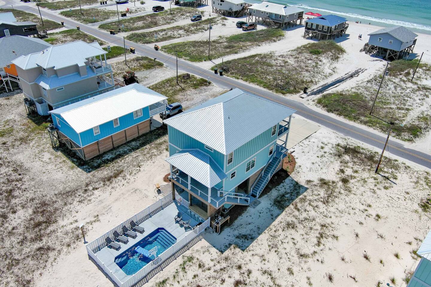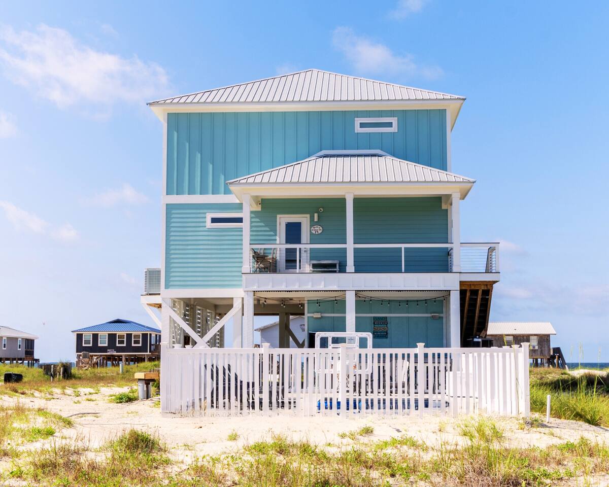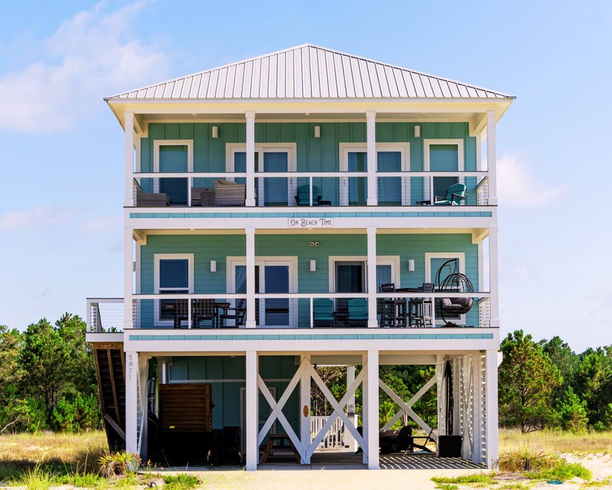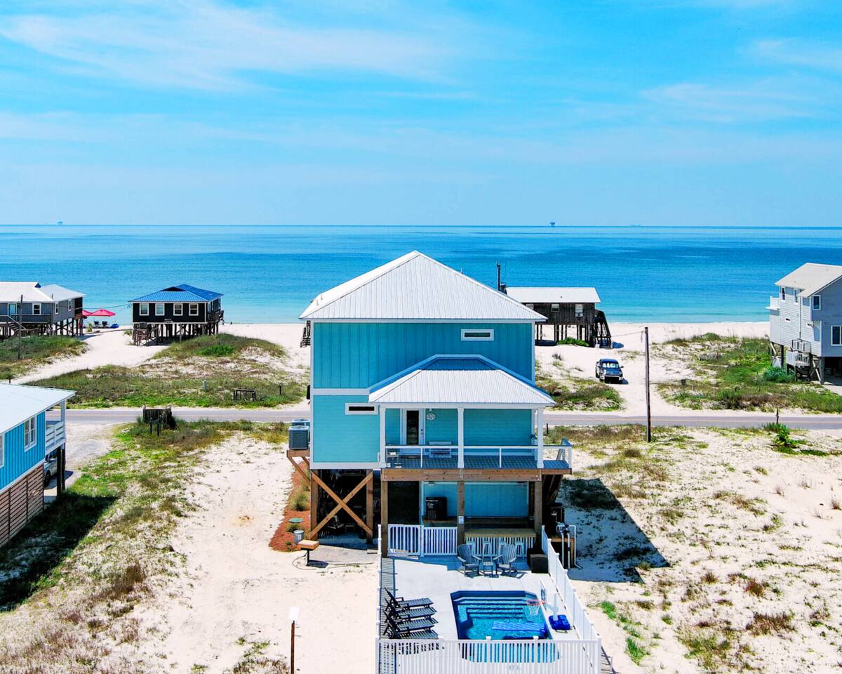 ☀ Luxurious 4 BR/3.5 BA "almost beachfront" home ☀ 3 spacious private balconies with panoramic gulf views ☀ Heated private pool with sun loungers and a tiki bar ☀ 100 steps from the beautiful white sand beaches of the Emerald Coast ☀ Loaded with beach gear and "over the top" amenities ☀Just minutes away from restaurants, shopping & everything Gulf Shores has to offer! Experience Emerald Coast Luxury at its finest with us at "On Beach Time!" Learn More Below!