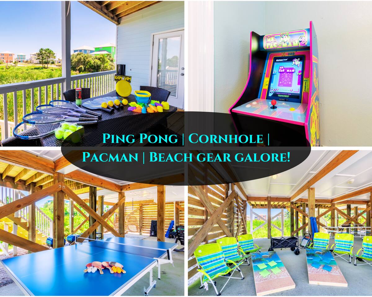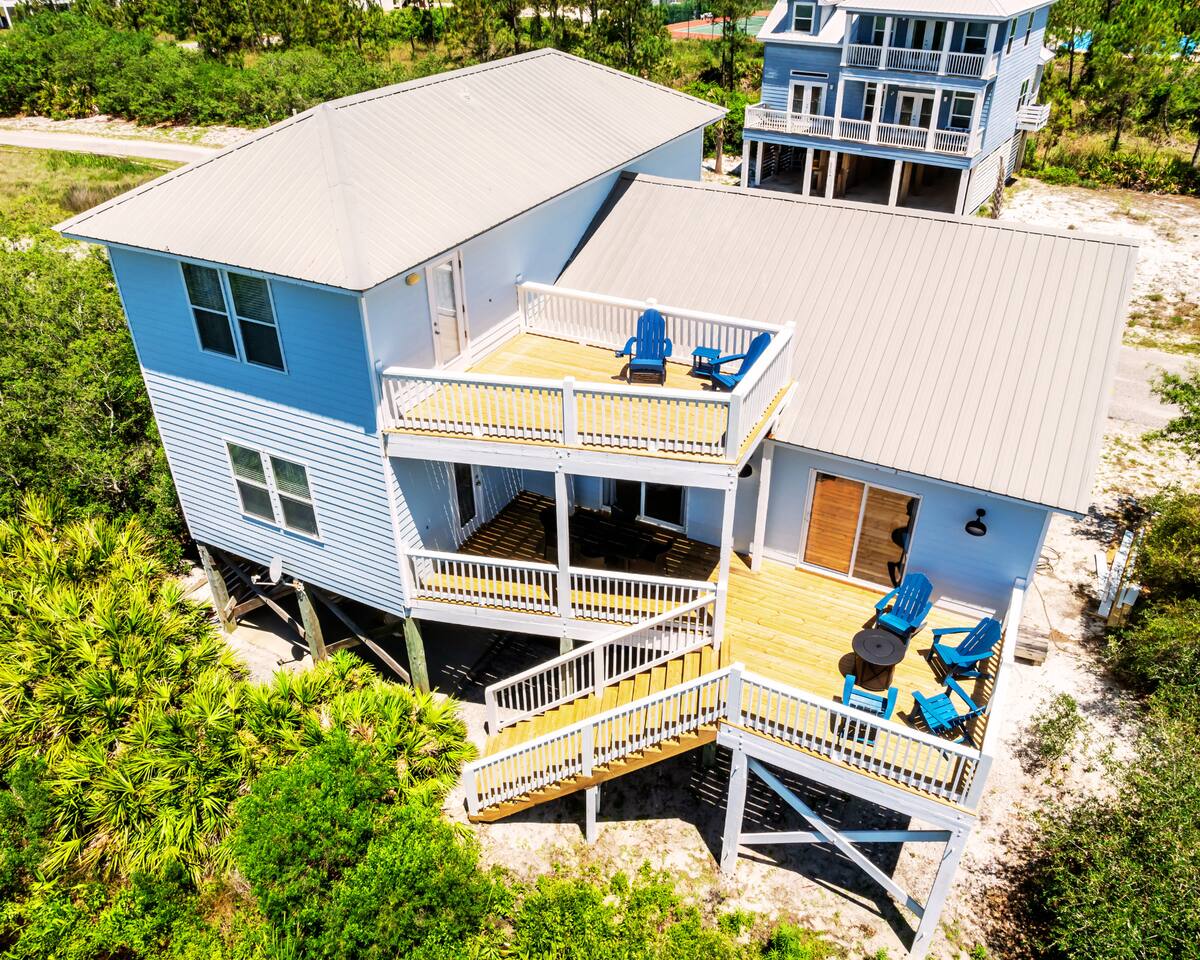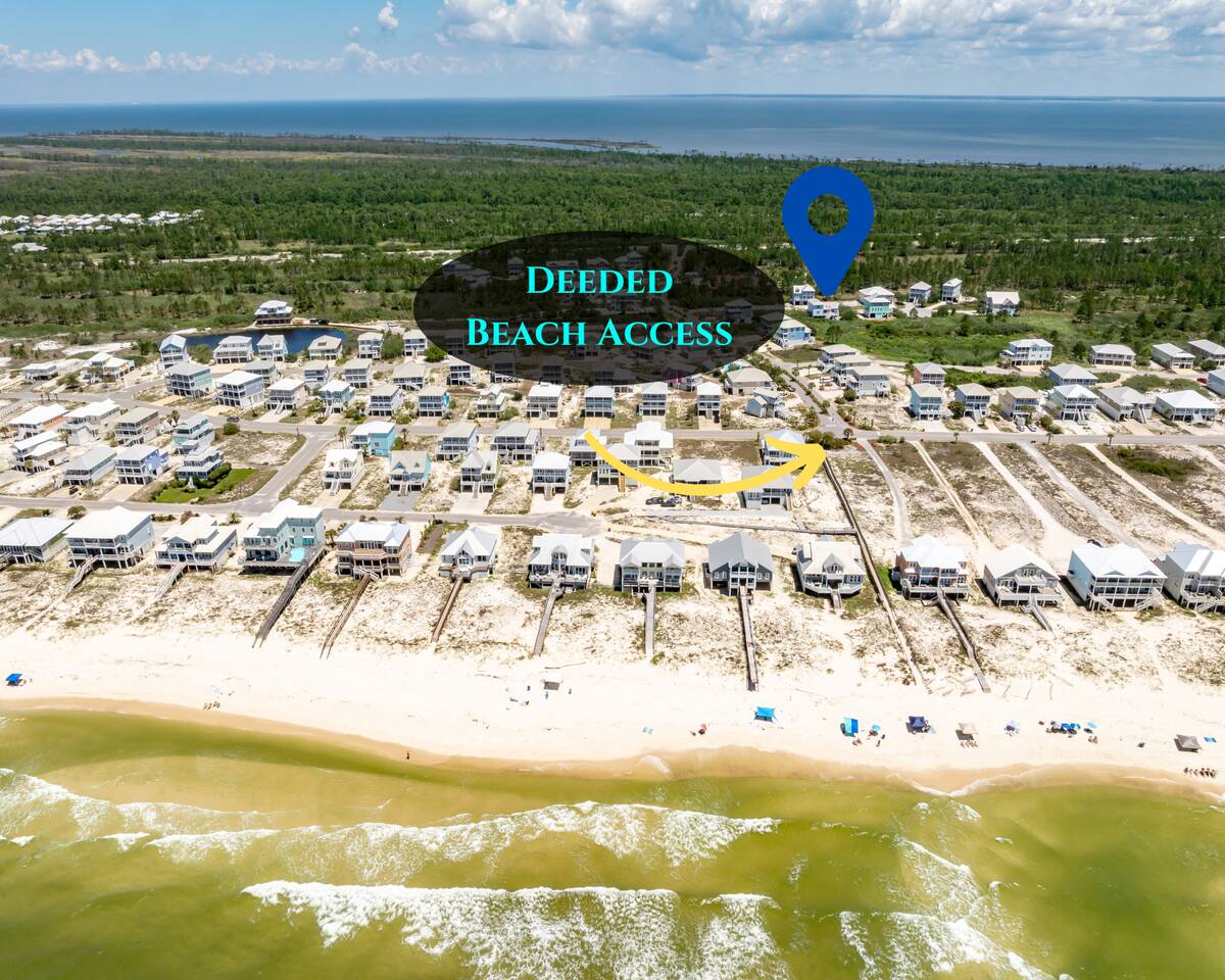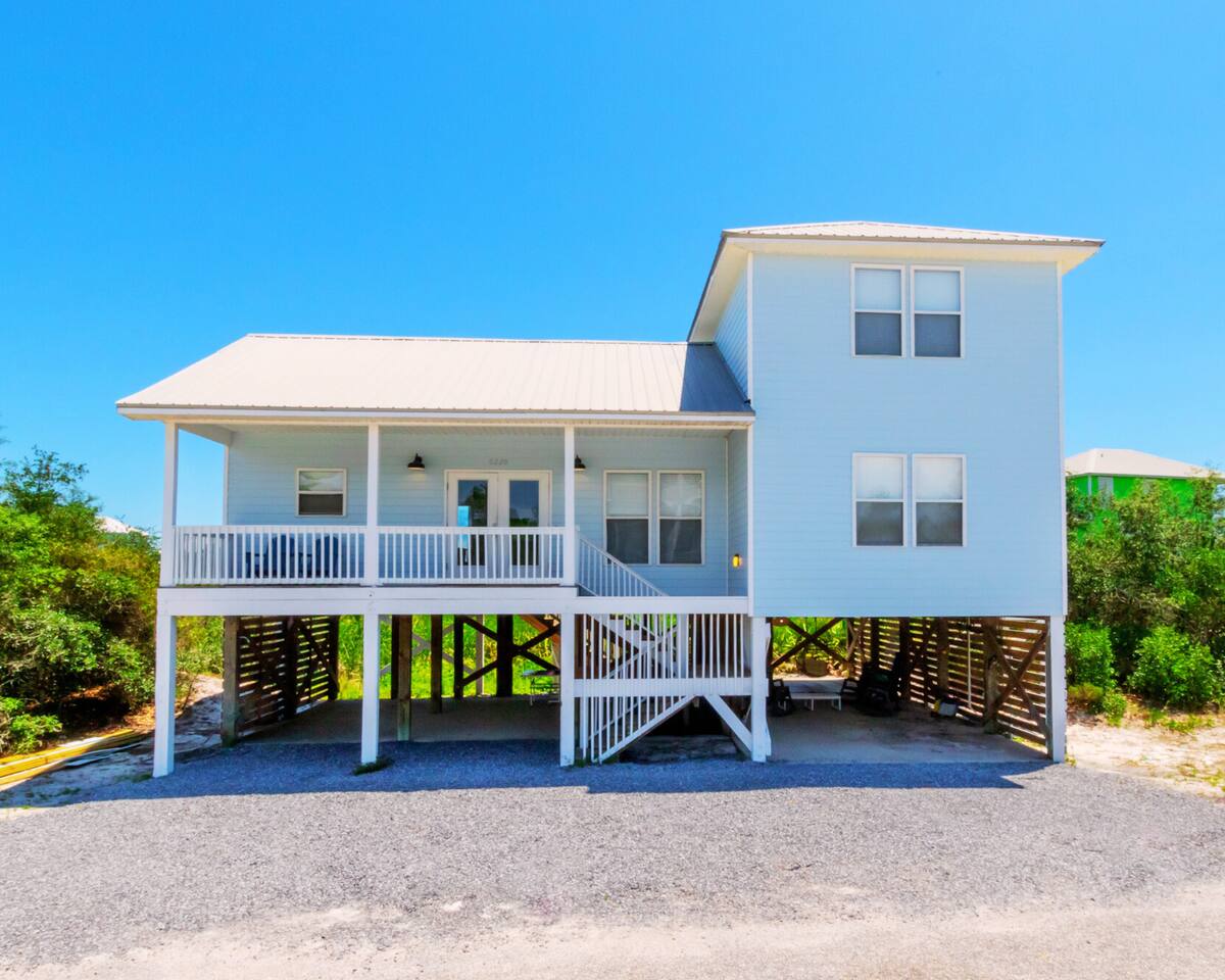 Welcome to "On Breeze Time!" Located in the serene and exclusive area of Morgantown, Gulf Shores, AL, our tranquil coastal retreat offers beautifully furnished accommodations, making it the perfect beach getaway for families and friends alike! Begin your day by soaking in the breathtaking gulf and marsh views from the balcony while enjoying your morning coffee. Then, take a leisurely stroll down to the white sand beach for a relaxing afternoon of sunbathing, swimming, and perhaps a cold beverage or 2. Afterward, return to the house for a home-cooked meal or dine at one of the fantastic local restaurants just minutes away. Finally, end your day taking in the gorgeous sunset on the patio with your loved ones. This beach paradise has everything you need for a memorable vacation, and we would be delighted to have you as our guest! ☆☆ KEY FEATURES & AMENITIES☆☆ ☀ Sleeps 16; 4 BR/3.5 BA, 1 king beds, 2 queen beds, 2 sets of full over full bunks, queen size sleeper sofa, pack-n-play ☀ Smart TVs in each bedroom + living room ☀ Access to Morgantown community amenities including 2 pools, tennis courts & deeded beach access ☀ Modern and well-equipped kitchen with ample seating ☀ 3 decks equipped with patio furniture + Marsh/Gulf views ☀ AMENITIES GALORE! Firepit, ping pong table, cornhole, can jam frisbee game, Ms pac-man arcade game, pickleball set, tennis rackets/balls, beach toys, beach chairs, umbrellas and a beach wagon! ☆☆ LIVING AND DINING AREA ☆☆ ☀ Open concept main floor with ample seating, 58" Smart TV + cable ☀ Modern, brand new furnishings and décor throughout the home ☀ Large Dining Table + Bar Seating ☀ Stainless steel appliances - fridge w ice maker, electric stove/oven, microwave and dishwasher ☀ Fully stocked w silverware, plates, cups, bowls, bakeware, pots/pans, Tupperware, cooking utensils and silverware ☀ K-Duo coffee maker, crockpot, toaster, blender ☆☆ 4 BEDROOMS / 3.5 BATHROOMS ☆☆ ☀ Upstairs Master Suite = King bed, private bathroom, closet, Smart TV and private balcony with Gulf view ☀ Upstairs Bedroom 2 = Queen bed, Smart TV, closet and private bathroom ☀ Main Floor Bedroom 3 = Queen Bed, Smart TV, closet, balcony access and Jack & Jill full bathroom shared with bunk room ☀ Bedroom 4 = 2 Full Over Full Bunks, Smart TV, Ms. Pac-Man Arcade, closet and Jack & Jill bathroom shared with bedroom 3 ☀ Pack-n-play provided for the little ones during their stay ☀ All bedrooms equipped with a Smart TV ☆☆ OUTDOOR AREA ☆☆ ☀ 3 gorgeous private decks with Adirondack furniture on the front porch and main level back deck. ☀ Spacious covered carport plus additional parking is available in the private driveway ☀ Charcoal Grill ☀ Outdoor Shower ★★ Book Today & Let Us Take Care Of You In Gulf Shores! ★★ ☀ Monthly Stays Available! From November through February, enjoy a longer getaway with discounted monthly rates of $3,600. Send us a message for details!