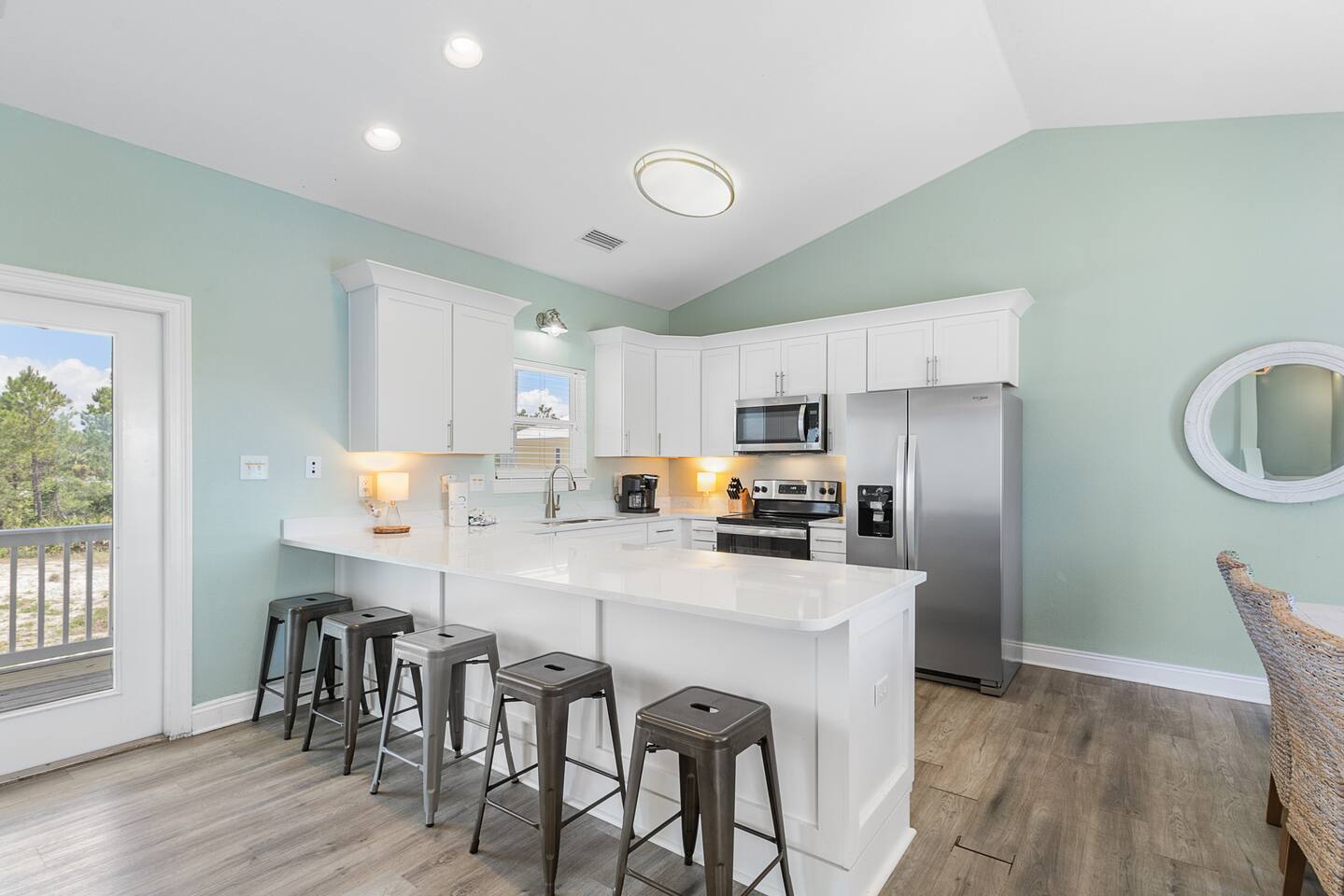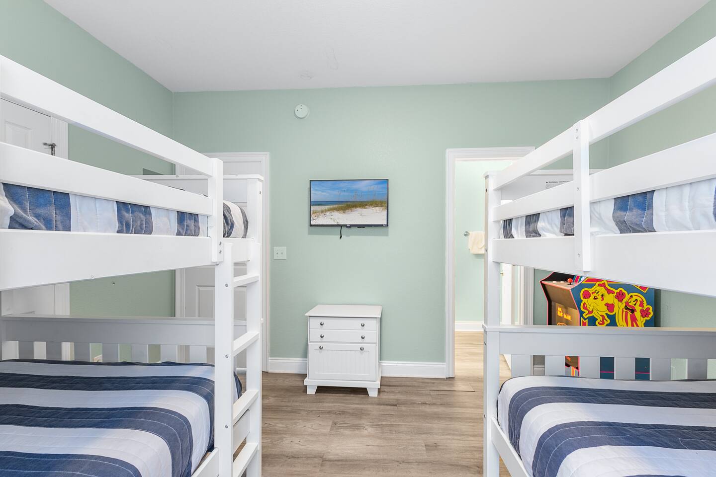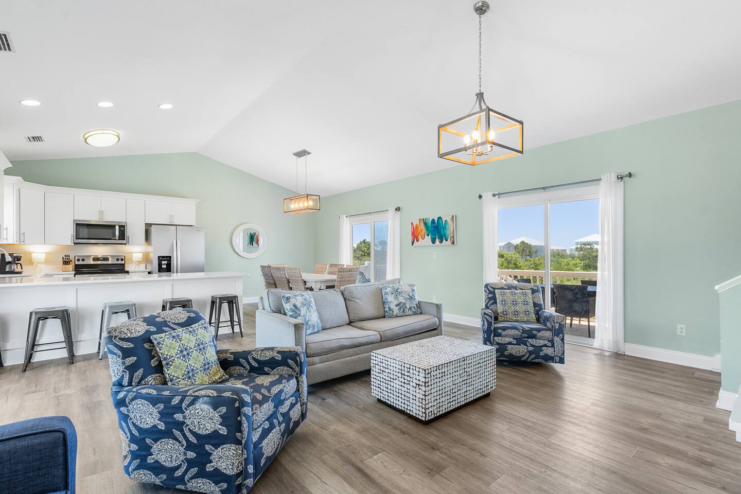 Welcome to "On Breeze Time!" Located in the serene and exclusive area of Morgantown, Gulf Shores, AL, our tranquil coastal retreat offers beautifully furnished accommodations, making it the perfect beach getaway for families and friends alike! Begin your day by soaking in the breathtaking gulf and marsh views from the balcony while enjoying your morning coffee. Then, take a leisurely stroll down to the white sand beach for a relaxing afternoon of sunbathing, swimming, and perhaps a cold beverage or 2. Afterward, return to the house for a home-cooked meal or dine at one of the fantastic local restaurants just minutes away. Finally, end your day taking in the gorgeous sunset on the patio with your loved ones. This beach paradise has everything you need for a memorable vacation, and we would be delighted to have you as our guest! ☆☆ KEY FEATURES & AMENITIES☆☆ ☀ Sleeps 16; 4 BR/3.5 BA, 1 king beds, 2 queen beds, 2 sets of full over full bunks, queen size sleeper sofa, pack-n-play ☀ Smart TVs in each bedroom + living room ☀ Access to Morgantown community amenities including 2 pools, tennis courts & deeded beach access ☀ Modern and well-equipped kitchen with ample seating ☀ 3 decks equipped with patio furniture + Marsh/Gulf views ☀ AMENITIES GALORE! Firepit, ping pong table, cornhole, can jam frisbee game, Ms pac-man arcade game, pickleball set, tennis rackets/balls, beach toys, beach chairs, umbrellas and a beach wagon! ☆☆ LIVING AND DINING AREA ☆☆ ☀ Open concept main floor with ample seating, 58" Smart TV + cable ☀ Modern, brand new furnishings and décor throughout the home ☀ Large Dining Table + Bar Seating ☀ Stainless steel appliances - fridge w ice maker, electric stove/oven, microwave and dishwasher ☀ Fully stocked w silverware, plates, cups, bowls, bakeware, pots/pans, Tupperware, cooking utensils and silverware ☀ K-Duo coffee maker, crockpot, toaster, blender ☆☆ 4 BEDROOMS / 3.5 BATHROOMS ☆☆ ☀ Upstairs Master Suite = King bed, private bathroom, closet, Smart TV and private balcony with Gulf view ☀ Upstairs Bedroom 2 = Queen bed, Smart TV, closet and private bathroom ☀ Main Floor Bedroom 3 = Queen Bed, Smart TV, closet, balcony access and Jack & Jill full bathroom shared with bunk room ☀ Bedroom 4 = 2 Full Over Full Bunks, Smart TV, Ms. Pac-Man Arcade, closet and Jack & Jill bathroom shared with bedroom 3 ☀ Pack-n-play provided for the little ones during their stay ☀ All bedrooms equipped with a Smart TV ☆☆ OUTDOOR AREA ☆☆ ☀ 3 gorgeous private decks with Adirondack furniture on the front porch and main level back deck. ☀ Spacious covered carport plus additional parking is available in the private driveway ☀ Charcoal Grill ☀ Outdoor Shower ★★ Book Today & Let Us Take Care Of You In Gulf Shores! ★★ ☀ Monthly Stays Available! From November through February, enjoy a longer getaway with discounted monthly rates of $3,600. Send us a message for details!