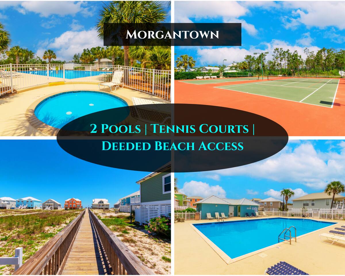 ☀ Dog friendly 4 BR/3.5 BA beach home in Morgantown, Gulf Shores ☀ Amenities galore! Plus access all Morgantown has to offer! 2 pools, tennis courts, pickle ball and more! ☀ Gorgeous balcony with views of the Gulf and surrounding nature ☀ Convenient beach access just a 3 minute walk from the home ☀ Only minutes away from popular restaurants, grocery stores, golf courses, fishing charters and more! Experience the tranquility of the Emerald Coast with us at "On Breeze Time!" Learn More Below!
