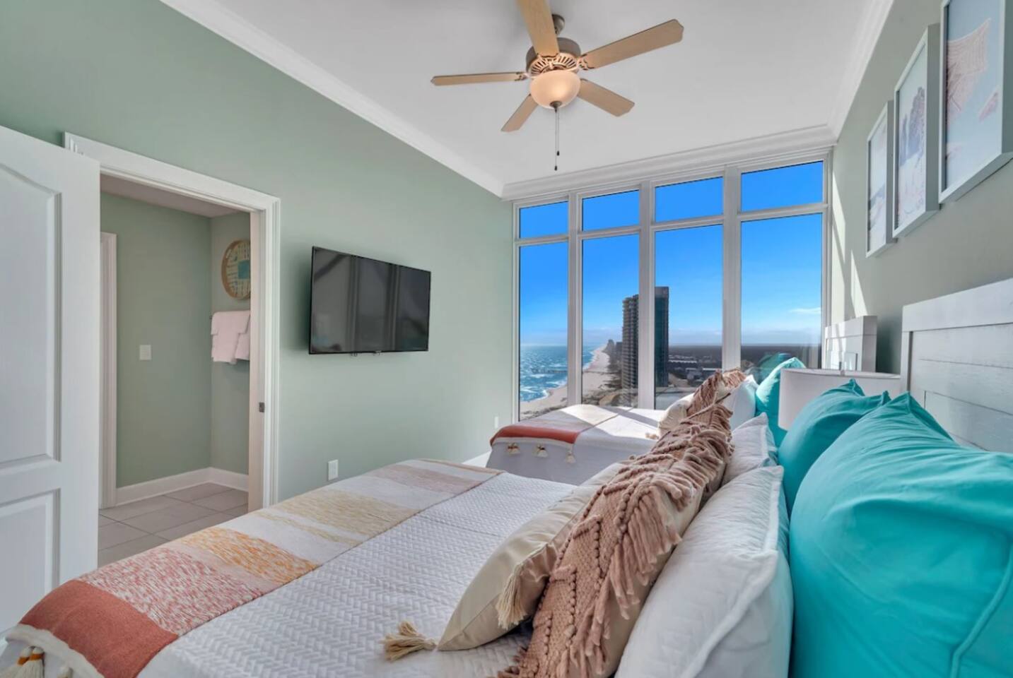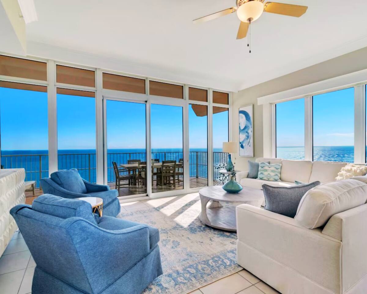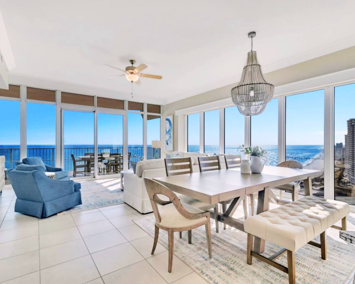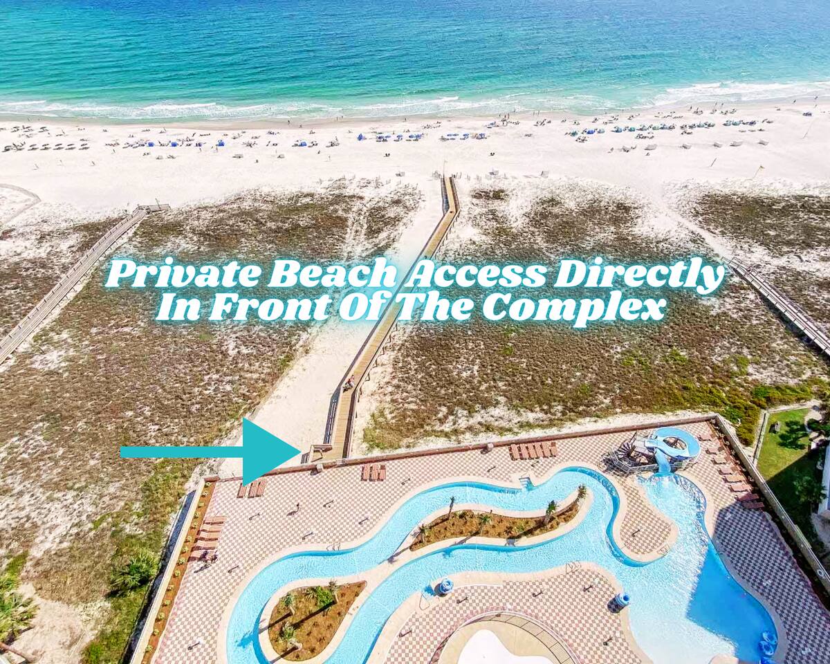 **PLEASE NOTE** THIS CONDO IS ON THE BEACH WITH PRIVATE BEACH ACCESS RIGHT IN FRONT OF THE CONDO. THE "15 MINUTE WALK" SHOWING IN THE DESCRIPTION IS AIRBNB AUTOPOPULATING THE WALKING DISTANCE TO THE NEAREST PUBLIC BEACH ACCESS. Welcome to your dreamy beachfront getaway at Phoenix II Orange Beach #2101! This luxury 4-bedroom, 3-bathroom condo offers unparalleled Gulf-front living with floor-to-ceiling windows showcasing million-dollar views of the Gulf of Mexico throughout the property. With space to comfortably sleep up to 16 guests, this condo is perfect for family vacations & group get togethers. Step inside to discover luxury finishes and thoughtfully curated decor designed with families in mind. The open-concept living area provides ample space to relax, while the fully equipped kitchen boasts modern appliances and everything you need to prepare meals for your group. The condo's spacious bedrooms and bathrooms offer comfort and privacy, with plush bedding and high-end touches to make your stay unforgettable. Enjoy your morning coffee or evening cocktails on the private balcony as you take in the breathtaking gulf views. ☆☆ KITCHEN & LIVING AREA ☆☆ ☀ Fully equipped kitchen with stainless steel appliances and granite countertops ☀ Indoor & outdoor dining areas with a seat for every guest ☀ Open concept living area with 70' Roku TV, floor to ceiling windows & gorgeous gulf views ☀ Sectional sofa with queen size sofa bed creating plenty of seating to kick back and relax after a long day at the beach ☀ Gulf front balcony with dining area and lounge area ☀ Full Washer/Dryer ☆☆ BEDROOMS ☆☆ ☀ Bedroom 1: Gulf front king suite with private bathroom, jacuzzi style jetted tub, private access balcony & 50' Roku TV (sleeps 2) ☀ Bedroom 2: Gulf view king room with attached jack & jill bathroom & 50' Roku TV (sleeps 2) ☀ Bedroom 3: 2 queen beds with attached jack & jill bathroom & 50' Roku TV (sleeps 4) ☀ Bedroom 4: 2 twin over queen bunks with attached private bathroom & 50' Roku TV (sleeps 6) ☀ Living Room Sofa Queen pullout (sleeps 2) ☆☆ GENERAL INFO ☆☆ ☀ Free Wi-Fi ☀ 4 high speed elevators providing little to no wait time ☀ Guests can purchase up to 3 parking passes prior to arrival set at $55 each (HOA sets prices & subject to change without notice) ☆☆ PHOENIX ORANGE BEACH II AMENITIES ☆☆ ☀ Lagoon style, zero entry pool with lazy river and water slide ☀ Indoor heated pool & hot tub ☀ Sauna & Steam Room ☀ Resort style fitness center ☀ Outdoor dining area with BBQ grills and ample seating ☀ NEW state of the art luxury complex built in 2021 ☆☆ PRIME LOCATION ☆☆ ☀ Walk to Zeke's Marina, a local dining favorite, directly across the street ☀ 5 minutes from "FloraBama" ☀ Centrally located less than 10 minutes from all of the restaurants, shopping and activities that Orange Beach has to offer ☀ Monthly Stays Available! From November through February, enjoy a longer getaway with discounted monthly rates of $6,000. Send us a message for details!