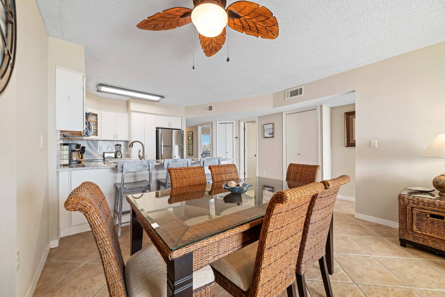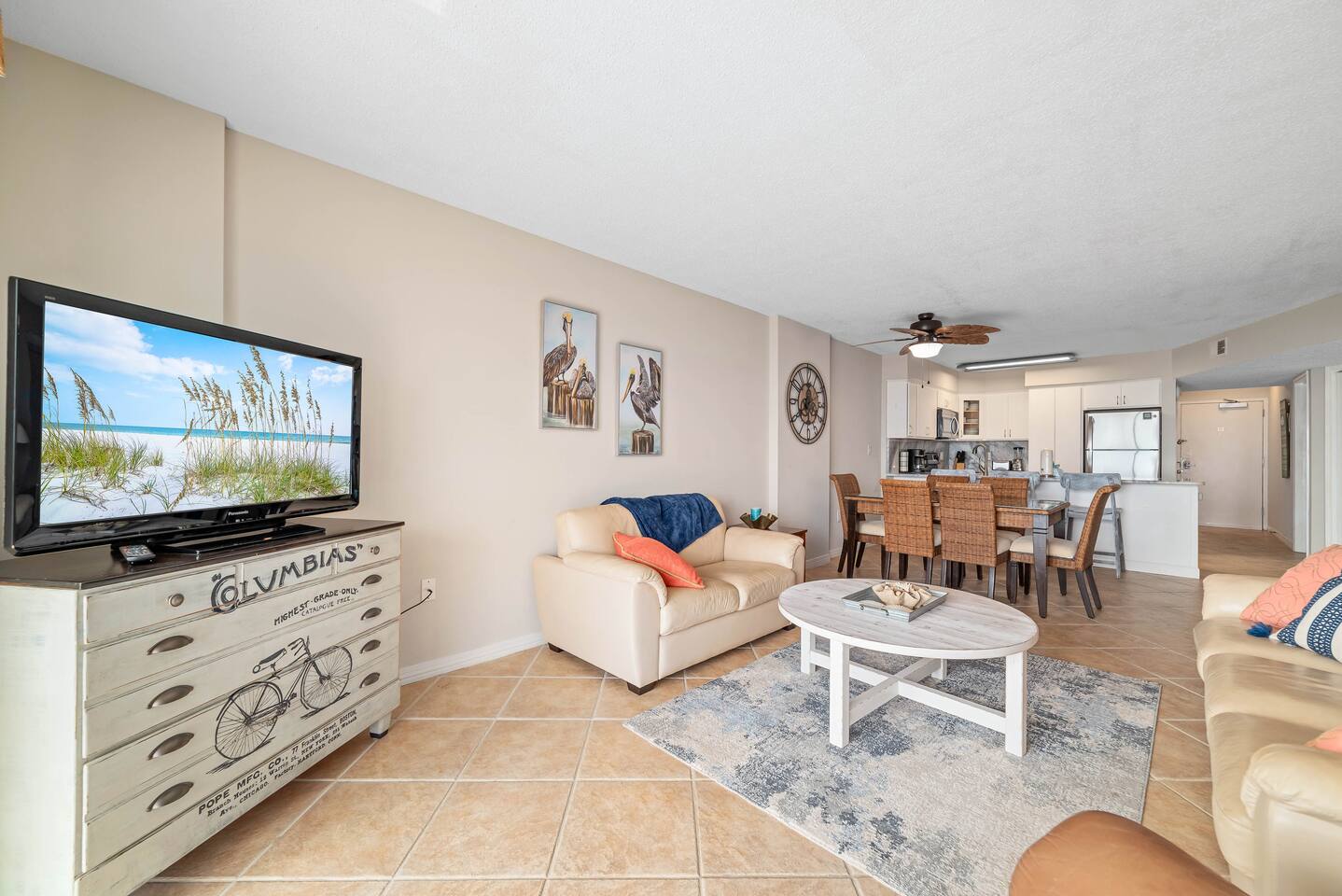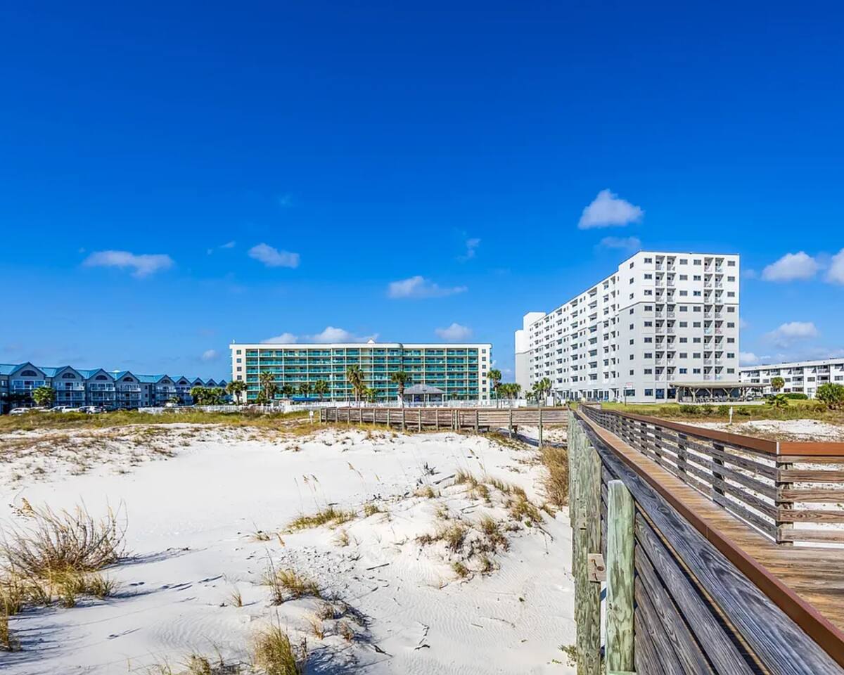 🌊 Plantation Palms #6409 | Beachfront 2BR Condo | Sleeps 6 | Fort Morgan, Gulf Shores ☀ Welcome to Plantation Palms #6409, a newly updated 4th-floor beachfront condo located in Plantation Palms within the Gulf Shores Plantation, a private resort-style community in the Fort Morgan area of Gulf Shores, Alabama. With 915 sq ft, floor-to-ceiling windows, and a private Gulf-view balcony, this 2BR/2BA condo sleeps up to 6 guests and offers a peaceful beachfront escape surrounded by nature. Enjoy panoramic views of the Gulf of Mexico, direct access to uncrowded sugar-white beaches, and full access to the incredible amenities of Gulf Shores Plantation. 🏡 Condo Highlights ✔ 4th-floor beachfront condo with sweeping Gulf views ✔ Floor-to-ceiling windows for maximum natural light ✔ Private Gulf-view balcony with comfortable seating ✔ 915 sq ft of thoughtfully designed space ✔ Sleeps up to 6 guests ✔ Newly updated interior ✔ Free high-speed WiFi ✔ Washer & dryer in unit ✔ Fully equipped kitchen with dining table + bar seating 🛏 Sleeping Arrangements Primary Bedroom (Gulf Front) • Queen bed • Direct Gulf views & balcony access • Smart TV • Private ensuite bathroom with shower/tub combo Bedroom 2 • Queen bed • Smart TV • Private ensuite bathroom Living Area • Sleeper sofa • Smart TV • Open-concept living & dining 🍽 Kitchen & Dining The fully equipped kitchen includes everything needed to cook meals at home. Enjoy meals at the dining table, grab a quick bite at the bar seating, or take your food outside to the balcony while watching the waves roll in. 🏖 Plantation Resort Amenities Guests at Plantation Palms enjoy access to one of the most amenity-rich resorts in the Fort Morgan area: 🏊 Multiple outdoor pools 🏊 Heated indoor pool (year-round) 🛁 Hot tubs 🏋️ On-site fitness center 🎾 Pickleball & tennis courts 🏀 Basketball courts ⛳ Mini-golf 🧖 Sauna 🔥 Shared BBQ grills & picnic areas 🚪 Guarded entry & secure community 🍴 On-Site Dining • Sassy Bass – lunch, dinner & beachside drinks • Selah – coffee, ice cream & breakfast sandwiches 🏖 Seasonal beach chair & umbrella service available (fees apply) 📍 Prime Fort Morgan Location Plantation Palms is tucked inside the Bon Secour National Wildlife Refuge, offering quiet beaches and a relaxed, family-friendly atmosphere—yet still close to top attractions: • Historic Fort Morgan – ~3 miles • Tacky Jacks (Fort Morgan) – ~4 miles • The Hangout (Gulf Shores) – ~18 miles • Gulf State Park – ~20 miles • Closest Walmart / Grocery Stores – ~17 miles • Gulf Shores Airport (Jack Edwards) – ~16 miles • Pensacola International Airport (PNS) – ~45 miles • Orange Beach Sportsplex – ~22 miles • Foley Sports Complex – ~23 miles • Tanger Outlets Foley – ~22 miles • The Wharf – ~24 miles • Tropic Falls at OWA – ~26 miles • Flora-Bama – ~30 miles This location is ideal for guests who want peace, privacy, nature, and beachfront beauty without the crowds. ❄ Snowbirds Welcome | Monthly Winter Stays Looking for a longer, peaceful Gulf Coast stay? Message us for details! ✔ Snowbird-friendly condo ✔ Special rate: $80 per night ✔ Valid November through February ✔ Monthly stays only ✔ Plus applicable taxes & fees 🚗 Parking & Property Rules • Parking available for up to 2 vehicles • $35 per parking pass • Passes must be purchased and registered through Plantation Palms before or upon arrival • 🚫 No RVs, trailers, oversized vehicles, or watercraft • 🚭 No smoking 🌅 Why Guests Love Plantation Palms #6409 ✔ Quiet, uncrowded beachfront ✔ Gulf-front primary suite with balcony access ✔ Resort-style amenities + on-site dining ✔ Family-friendly & secure community ✔ Perfect for snowbirds & relaxing getaways 📅 Book Plantation Palms #6409 today and experience the peaceful side of Gulf Shores beachfront living.