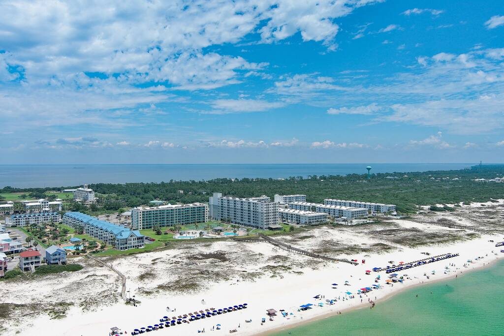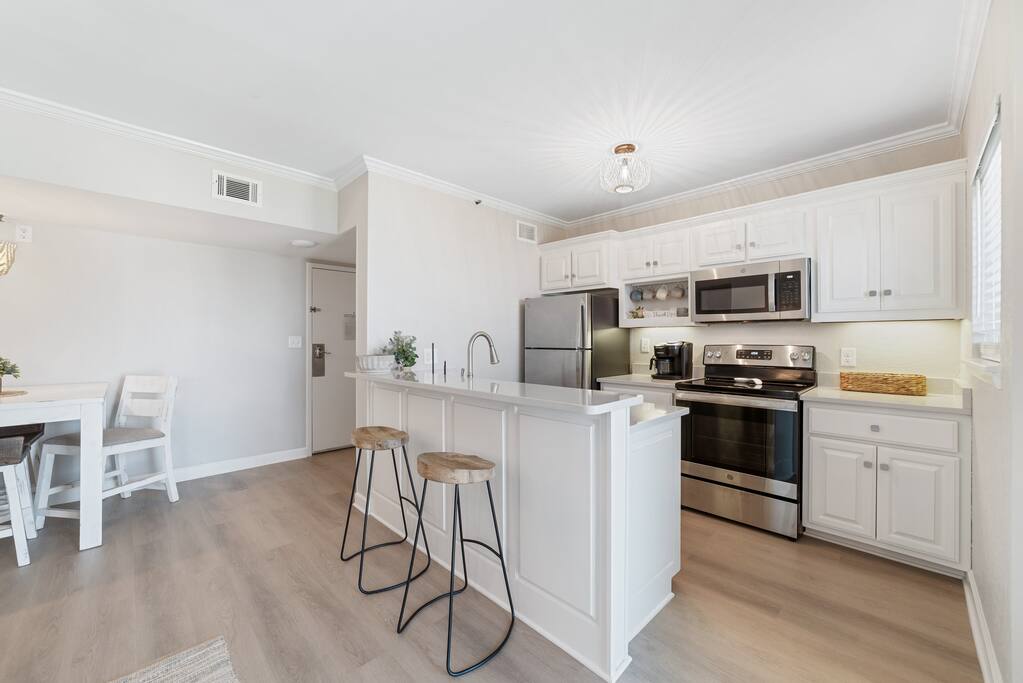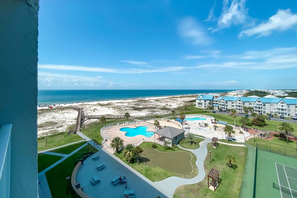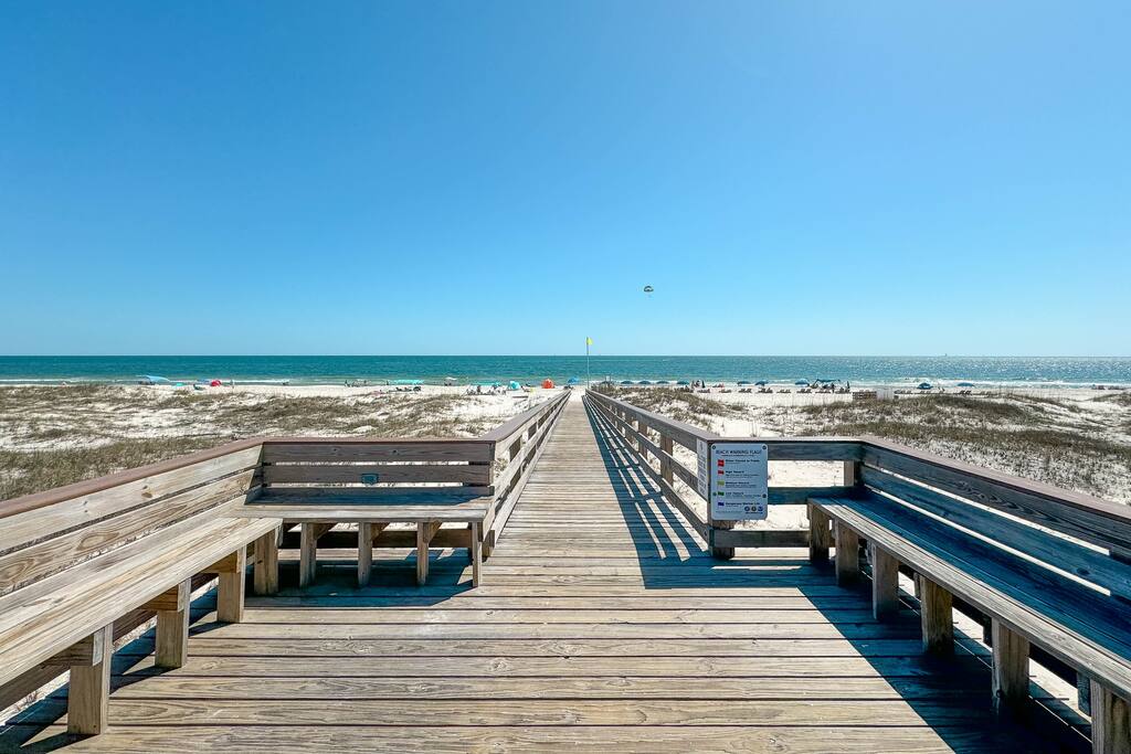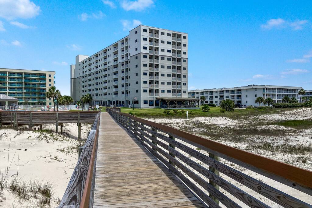 Royal Gulf Beach & Racquet Club #5612 | Beachfront Fort Morgan Condo Welcome to Royal Gulf Beach & Racquet Club #5612, a beautifully updated 2-bedroom, 2-bath beachfront condo located in the peaceful Fort Morgan area of Gulf Shores, Alabama. Perfect for families, couples, and snowbirds, this coastal retreat offers stunning beach views, resort-style amenities, and easy access to both nature and dining—while still being just 20 minutes from downtown Gulf Shores. Whether you’re visiting for sun-soaked summer days or a relaxing off-season escape, this condo delivers comfort, convenience, and classic Gulf Coast charm. ⭐ Key Features ⭐ ☀ Sleeps 6 | 2 Bedrooms | 2 Bathrooms ☀ King bed, two twin beds, plus sleeper sofa ☀ Private balcony with beach view ☀ Fully stocked kitchen with modern appliances ☀ Keurig and drip coffee makers ☀ High-speed Wi-Fi for work or streaming ☀ Community washers and dryers in building ☀ Pack ’n Play and high chair included 🛏 Bedrooms & Sleeping Arrangements ☀ Primary Bedroom: King-size bed, private ensuite bathroom, Smart TV ☀ Bedroom 2: Two twin beds, Smart TV ☀ Living Room: Sleeper sofa ☀ Bathroom 1: Shower/tub combo ☀ Bathroom 2: Shower/tub combo ☀ Clean, updated bathrooms with fresh towels and starter toiletries provided. 🍳 Kitchen & Dining ☀ Open-concept kitchen with full-size appliances ☀ Stocked with pots, pans, utensils, dishes, mugs, and drinkware ☀ Keurig and drip coffee maker, blender, toaster, and more ☀ Dining table seats 3 plus 2 bar stools at the counter 🏖 Resort-Style Amenities ☀ Multiple outdoor pools ☀ Heated indoor pool for year-round swimming ☀ Hot tubs ☀ On-site fitness center ☀ Pickleball, tennis, basketball, and mini-golf ☀ Sauna ☀ Shared barbecue grills and picnic areas ☀ Guarded entry / secure community ☀ Beach chair and umbrella service is available seasonally (fees apply). For a budget-friendly option, Gulf Coast Rental Company delivers beach chairs, umbrellas, coolers, and beach carts. On-site dining: ☀ Sassy Bass for lunch, dinner, and beachside drinks ☀ Selah for coffee, ice cream, and breakfast sandwiches 📍 Prime Fort Morgan Location ☀ Located in the Fort Morgan area within the Bon Secour National Wildlife Refuge ☀ Direct beachfront access with uncrowded white-sand beaches ☀ 20 minutes to downtown Gulf Shores, shopping, and entertainment ☀ Close to Fort Morgan, Tacky Jacks 2, Jesse’s On the Bay, and nature trails ☀ Quiet, family-friendly, and ideal for relaxation ❗ Other Things to Note ☀ Parking pass required: $35 per vehicle per stay ☀ Limit of 2 vehicles per reservation ☀ Parking must be registered upon arrival 📅 Monthly Snowbird Stays Monthly stays available November through February. Message us for special snowbird rates and availability.