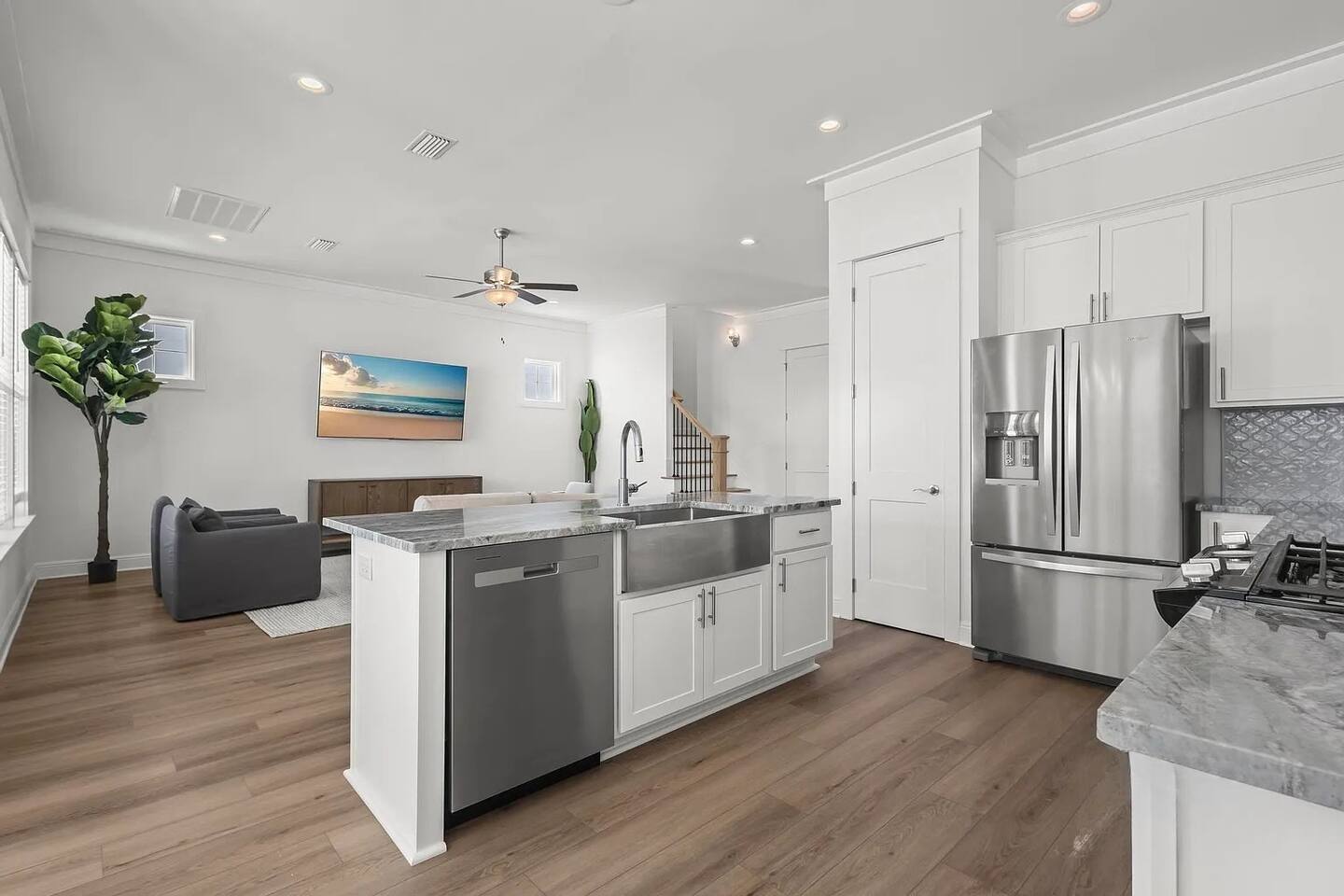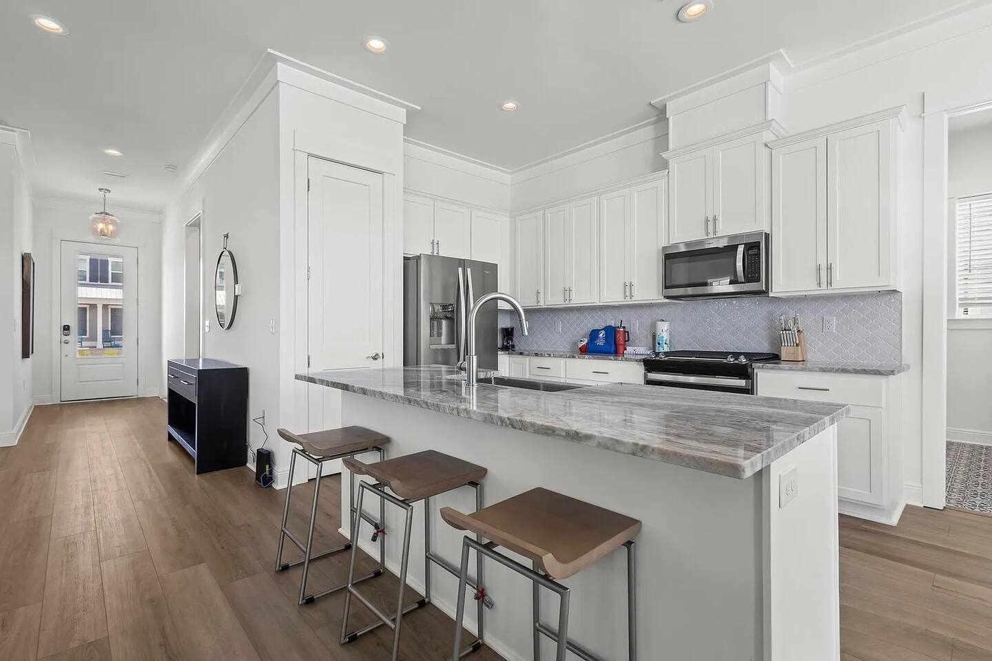 Skye Miles | Luxury 4BR Beach Home | Steps to Pool | Near Beach Access Welcome to Skye Miles, one of the most sought-after homes in the Summer Salt community of Orange Beach, Alabama! This luxury 4-bedroom, 4.5-bathroom coastal retreat combines upscale design, unbeatable location, and all the comforts of home—making it the perfect spot for your next beach getaway. ☀️ Prime Location in Orange Beach Situated in the heart of Summer Salt, Skye Miles offers effortless access to everything you love about the Gulf Coast: 0.5 miles to Romar Public Beach Access – just a 2-minute drive or 10–15 minute walk to the sugar-white sands Walking distance to restaurants, shopping, mini golf, and local attractions Located just steps from the community’s resort-style pool via the private back patio Golf cart friendly community for easy rides around the neighborhood 🏡 Upscale Comfort & Coastal Style Step inside and be welcomed by a bright, open-concept living area featuring high-end furnishings, Smart TV, and ample seating for the whole group. The fully equipped kitchen has everything you need—from stainless steel appliances to cookware and serving ware—to prepare meals and gather together around the large dining table. Every detail of this home was designed for comfort and elegance, from its modern finishes to its spacious layout that allows everyone to spread out and relax. 🛏 Bedroom Layout 1st Floor Master Suite: King bed, Smart TV, and a luxurious en-suite bathroom with Jacuzzi-style soaking tub, walk-in shower, and dual vanities Bedroom 2: Queen bed, Smart TV, private en-suite bathroom Bedroom 3: Queen bed, Smart TV, private en-suite bathroom Bedroom 4: Two twin beds, Smart TV, private en-suite bathroom With 4.5 bathrooms, everyone has plenty of space to get ready for a night out or unwind after a day at the beach. 🌴 Community Amenities Enjoy access to all the resort-style amenities of Summer Salt, including: Zero-entry pool just steps away from your back patio Fire pit area perfect for evening gatherings Putting green and community lake for peaceful morning walks With 4 designated parking spots, there’s plenty of room for everyone. 🌅 Extended Stays Welcome Looking for a winter retreat? Monthly stays are available from November through February for $3,600/month. Message us for availability and details. 💎 Why Guests Love Skye Miles Guests choose Skye Miles for its luxury coastal décor, prime location within Summer Salt, and the perfect balance of comfort, convenience, and charm. Whether you’re here for a week by the waves or a month-long escape, this home delivers the ultimate Orange Beach experience. Book your stay at Skye Miles today and see why this upscale Summer Salt home stands out as one of Orange Beach’s most desirable vacation rentals!