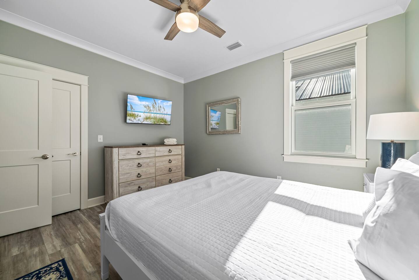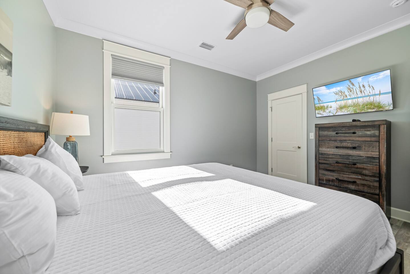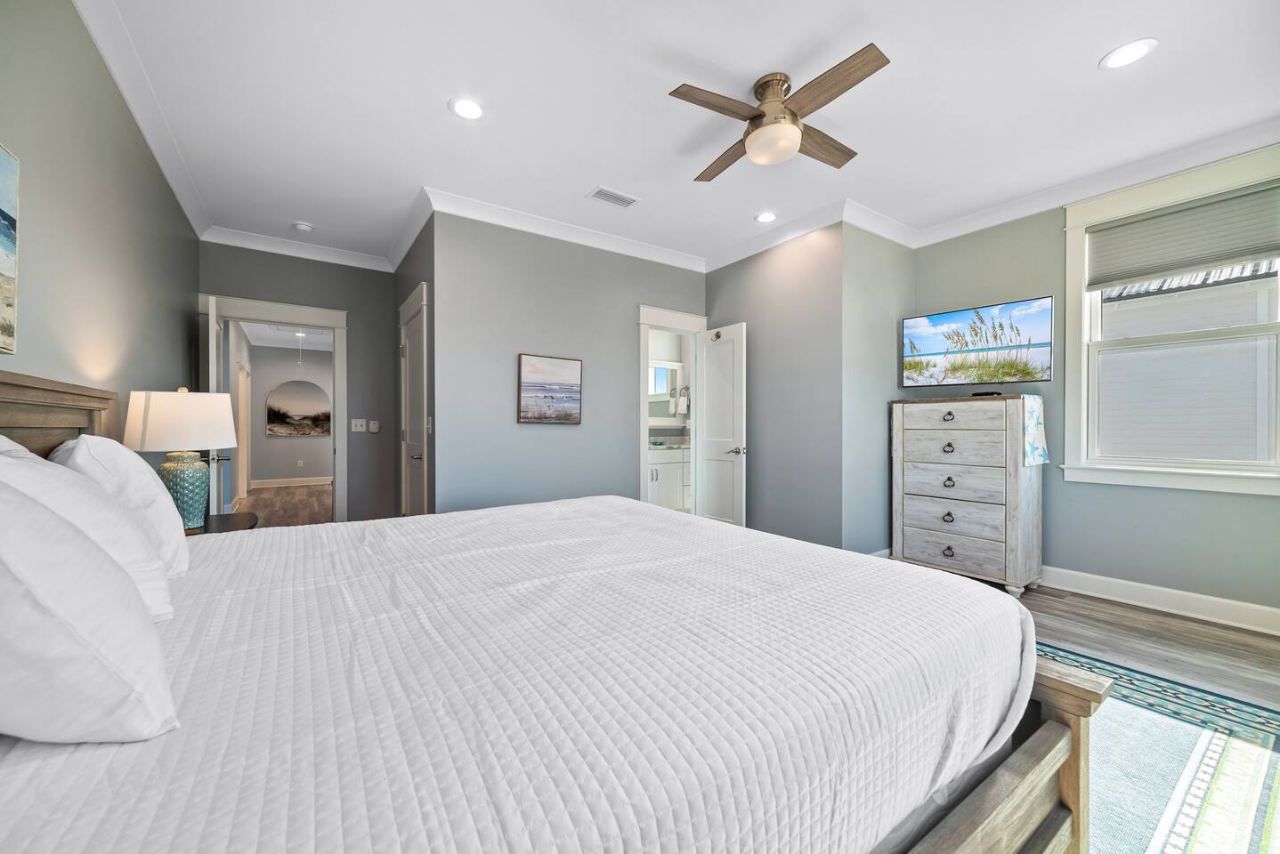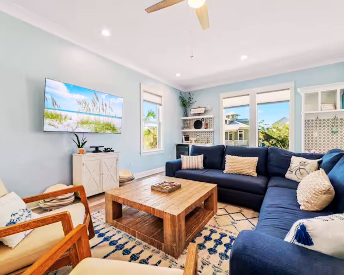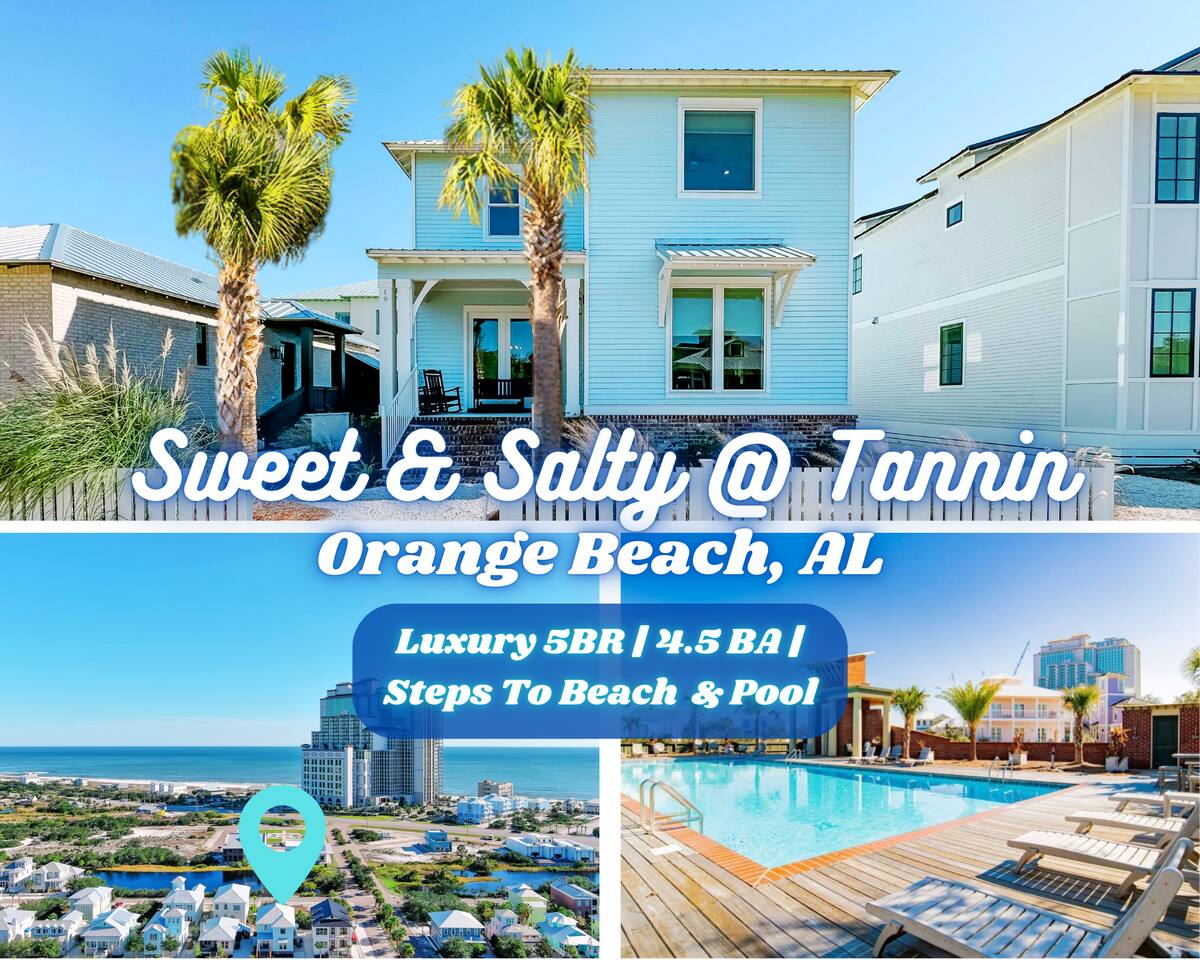Welcome to Sweet & Salty – Your Luxury Retreat in Orange Beach Escape to Sweet & Salty, a stunning 5-bedroom, 4.5-bathroom beach house located in the prestigious Village at Tannin. This luxurious home effortlessly blends coastal elegance with modern convenience, offering the perfect setting for an unforgettable beach getaway. ☆☆ KEY FEATURES OF THE HOME ☆☆ ☀ Prime Location: Centrally located in Orange Beach, you're less than a 10-minute drive from top restaurants, shops, and attractions. Private beach access is just a 5-minute stroll away. ☀ Golf Cart-Friendly: Cruise the neighborhood in style! Rent a golf cart with an exclusive 20% discount. ☀ Unmatched Amenities: Relax by the Olympic-sized pool just steps from your door, and enjoy complimentary Tommy Bahama beach chairs and a wagon for effortless beach days. ☀ Spacious Living: 5BR/4.5 BA home accommodating up to 12 guests, the home features beautifully designed interiors, comfortable sleeping arrangements, and ample space for everyone to unwind. ☀ Parking: The driveway and right side of the home fits up to 3 vehicles and 1 golf cart, depending on size. ☀ The Neighborhood: Nestled in the charming Village at Tannin, this home boasts a Charleston, SC-inspired vibe with picturesque streets, elegant architecture, and a serene atmosphere. ☆☆ 1ST FLOOR = MAIN LIVING AREA + MASTER BEDROOM ☆☆ ☀ Fully equipped kitchen with stainless steel appliances and granite countertops ☀ Fully stocked w silverware, plates, cups, bowls, bakeware, pots/pans, Tupperware, & cooking utensils ☀ Keurig coffee maker, coffee pot, crockpot, toaster and blender ☀ Bar area with mini fridge ☀ Dining area with a seat for every guest + bar seating ☀ Open concept living area with large Smart TV + Cable & ample seating for large groups ☀ Full sized washer/dryer ☀ Master King Suite with private bathroom + Smart TV with cable ☆☆ 2ND FLOOR = BEDROOMS + 2ND LIVING AREA ☆☆ ☀ All bedrooms have mounted Smart TVs, clothing storage, closets and a ceiling fan ☀ Bedroom 1 = King Suite with spacious private bathroom & Smart TV ☀ Bedroom 2 = King Suite with spacious private bathroom & Smart TV ☀ Bedroom 3 = Queen room with Smart TV ☀ Bedroom 4 = Bunk room with 2 sets of twin bunks (sleeps 4 total) & Smart TV ☀ 2nd open concept living area with large Smart TV + Cable & cozy sofa ☆☆ OUTDOOR AREA & PARKING ☆☆ ☀ Outdoor dining area with a propane grill, perfect for a family cookout ☀ Cozy front porch to kick back and relax after a long day at the beach ☀ Private parking for up to 2 vehicles and 1 golf cart in the front and/or right side of the house ☀ Enclosed Outdoor Shower ☀ Storage area with beach chairs, beach wagon and boogie boards on the left side of the home ★★ Book Today & Let Us Take Care Of You In Orange Beach! ★★ ☀ Monthly Stays Available! In the month of January and February enjoy a longer getaway with an extra 15% off your stay. Send us a message for details!