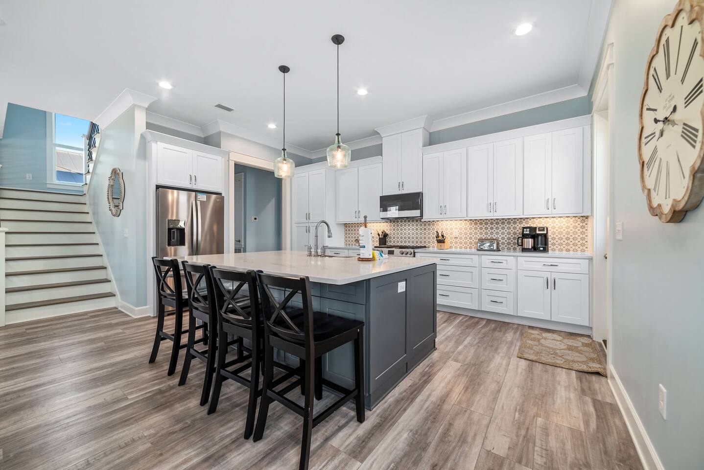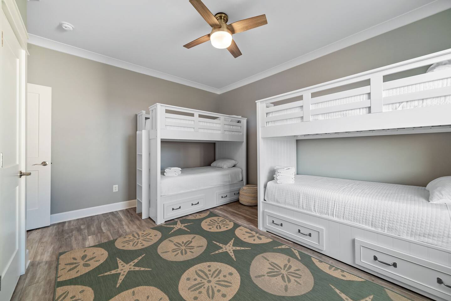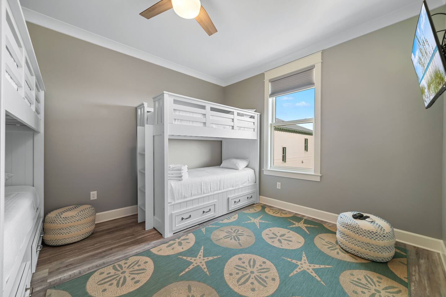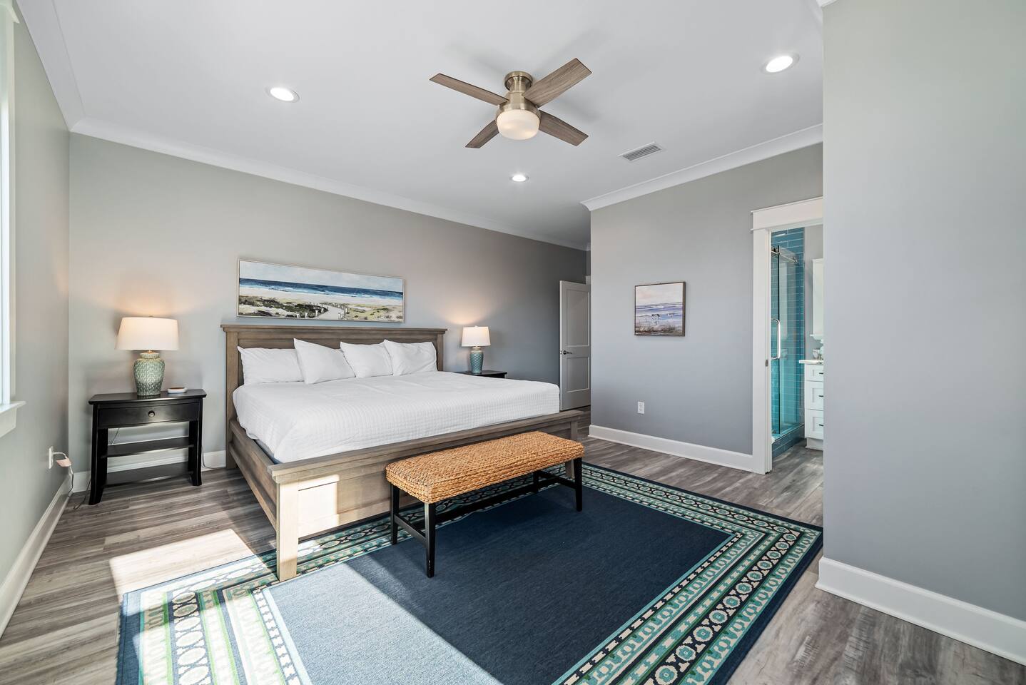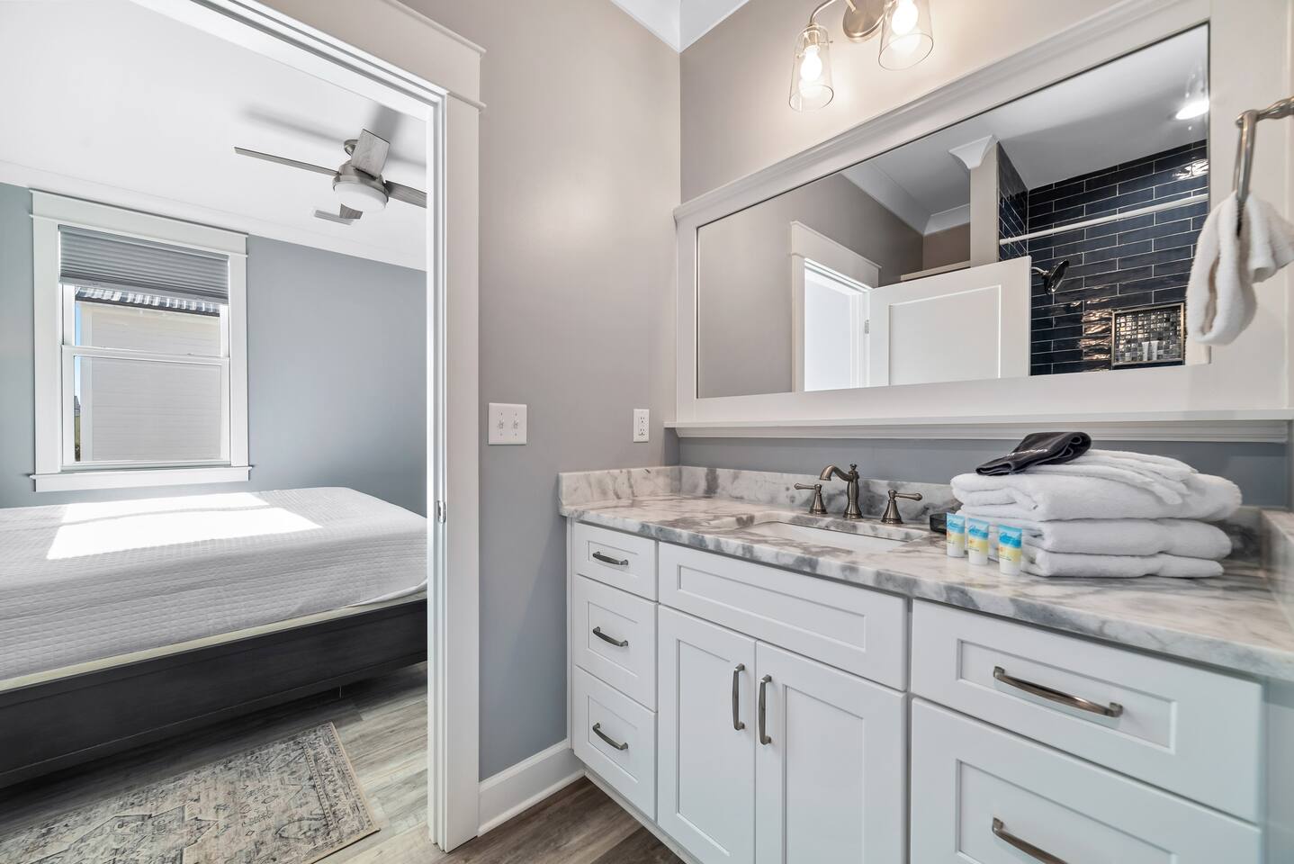 Welcome to Sweet & Salty – Your Luxury Retreat in Orange Beach Escape to Sweet & Salty, a stunning 5-bedroom, 4.5-bathroom beach house located in the prestigious Village at Tannin. This luxurious home effortlessly blends coastal elegance with modern convenience, offering the perfect setting for an unforgettable beach getaway. ☆☆ KEY FEATURES OF THE HOME ☆☆ ☀ Prime Location: Centrally located in Orange Beach, you're less than a 10-minute drive from top restaurants, shops, and attractions. Private beach access is just a 5-minute stroll away. ☀ Golf Cart-Friendly: Cruise the neighborhood in style! Rent a golf cart with an exclusive 20% discount. ☀ Unmatched Amenities: Relax by the Olympic-sized pool just steps from your door, and enjoy complimentary Tommy Bahama beach chairs and a wagon for effortless beach days. ☀ Spacious Living: 5BR/4.5 BA home accommodating up to 12 guests, the home features beautifully designed interiors, comfortable sleeping arrangements, and ample space for everyone to unwind. ☀ Parking: The driveway and right side of the home fits up to 3 vehicles and 1 golf cart, depending on size. ☀ The Neighborhood: Nestled in the charming Village at Tannin, this home boasts a Charleston, SC-inspired vibe with picturesque streets, elegant architecture, and a serene atmosphere. ☆☆ 1ST FLOOR = MAIN LIVING AREA + MASTER BEDROOM ☆☆ ☀ Fully equipped kitchen with stainless steel appliances and granite countertops ☀ Fully stocked w silverware, plates, cups, bowls, bakeware, pots/pans, Tupperware, & cooking utensils ☀ Keurig coffee maker, coffee pot, crockpot, toaster and blender ☀ Bar area with mini fridge ☀ Dining area with a seat for every guest + bar seating ☀ Open concept living area with large Smart TV + Cable & ample seating for large groups ☀ Full sized washer/dryer ☀ Master King Suite with private bathroom + Smart TV with cable ☆☆ 2ND FLOOR = BEDROOMS + 2ND LIVING AREA ☆☆ ☀ All bedrooms have mounted Smart TVs, clothing storage, closets and a ceiling fan ☀ Bedroom 1 = King Suite with spacious private bathroom & Smart TV ☀ Bedroom 2 = King Suite with spacious private bathroom & Smart TV ☀ Bedroom 3 = Queen room with Smart TV ☀ Bedroom 4 = Bunk room with 2 sets of twin bunks (sleeps 4 total) & Smart TV ☀ 2nd open concept living area with large Smart TV + Cable & cozy sofa ☆☆ OUTDOOR AREA & PARKING ☆☆ ☀ Outdoor dining area with a propane grill, perfect for a family cookout ☀ Cozy front porch to kick back and relax after a long day at the beach ☀ Private parking for up to 2 vehicles and 1 golf cart in the front and/or right side of the house ☀ Enclosed Outdoor Shower ☀ Storage area with beach chairs, beach wagon and boogie boards on the left side of the home ★★ Book Today & Let Us Take Care Of You In Orange Beach! ★★ ☀ Monthly Stays Available! In the month of January and February enjoy a longer getaway with an extra 15% off your stay. Send us a message for details!