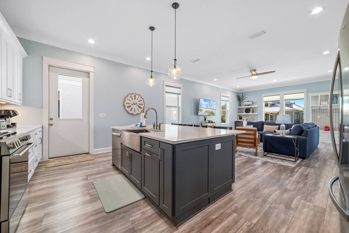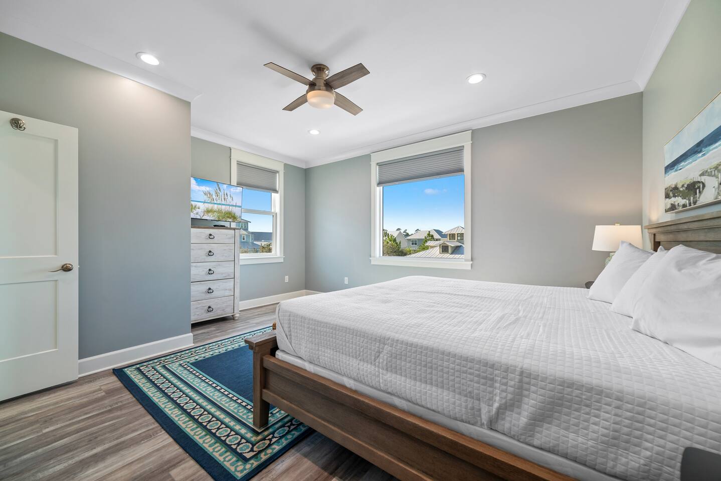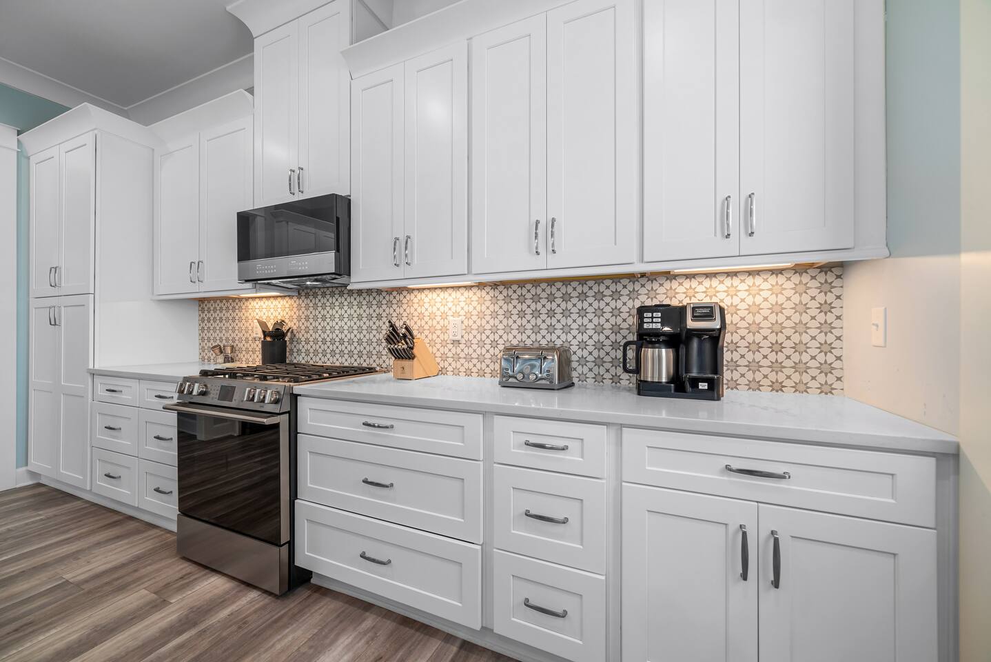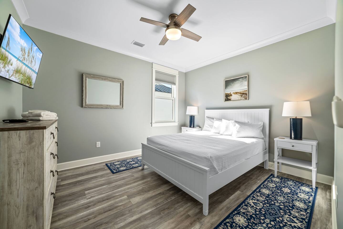 Welcome to Sweet & Salty – Your Luxury Retreat in Orange Beach Escape to Sweet & Salty, a stunning 5-bedroom, 4.5-bathroom beach house located in the prestigious Village at Tannin. This luxurious home effortlessly blends coastal elegance with modern convenience, offering the perfect setting for an unforgettable beach getaway. ☆☆ KEY FEATURES OF THE HOME ☆☆ ☀ Prime Location: Centrally located in Orange Beach, you're less than a 10-minute drive from top restaurants, shops, and attractions. Private beach access is just a 5-minute stroll away. ☀ Golf Cart-Friendly: Cruise the neighborhood in style! Rent a golf cart with an exclusive 20% discount. ☀ Unmatched Amenities: Relax by the Olympic-sized pool just steps from your door, and enjoy complimentary Tommy Bahama beach chairs and a wagon for effortless beach days. ☀ Spacious Living: 5BR/4.5 BA home accommodating up to 12 guests, the home features beautifully designed interiors, comfortable sleeping arrangements, and ample space for everyone to unwind. ☀ Parking: The driveway and right side of the home fits up to 3 vehicles and 1 golf cart, depending on size. ☀ The Neighborhood: Nestled in the charming Village at Tannin, this home boasts a Charleston, SC-inspired vibe with picturesque streets, elegant architecture, and a serene atmosphere. ☆☆ 1ST FLOOR = MAIN LIVING AREA + MASTER BEDROOM ☆☆ ☀ Fully equipped kitchen with stainless steel appliances and granite countertops ☀ Fully stocked w silverware, plates, cups, bowls, bakeware, pots/pans, Tupperware, & cooking utensils ☀ Keurig coffee maker, coffee pot, crockpot, toaster and blender ☀ Bar area with mini fridge ☀ Dining area with a seat for every guest + bar seating ☀ Open concept living area with large Smart TV + Cable & ample seating for large groups ☀ Full sized washer/dryer ☀ Master King Suite with private bathroom + Smart TV with cable ☆☆ 2ND FLOOR = BEDROOMS + 2ND LIVING AREA ☆☆ ☀ All bedrooms have mounted Smart TVs, clothing storage, closets and a ceiling fan ☀ Bedroom 1 = King Suite with spacious private bathroom & Smart TV ☀ Bedroom 2 = King Suite with spacious private bathroom & Smart TV ☀ Bedroom 3 = Queen room with Smart TV ☀ Bedroom 4 = Bunk room with 2 sets of twin bunks (sleeps 4 total) & Smart TV ☀ 2nd open concept living area with large Smart TV + Cable & cozy sofa ☆☆ OUTDOOR AREA & PARKING ☆☆ ☀ Outdoor dining area with a propane grill, perfect for a family cookout ☀ Cozy front porch to kick back and relax after a long day at the beach ☀ Private parking for up to 2 vehicles and 1 golf cart in the front and/or right side of the house ☀ Enclosed Outdoor Shower ☀ Storage area with beach chairs, beach wagon and boogie boards on the left side of the home ★★ Book Today & Let Us Take Care Of You In Orange Beach! ★★ ☀ Monthly Stays Available! In the month of January and February enjoy a longer getaway with an extra 15% off your stay. Send us a message for details!
