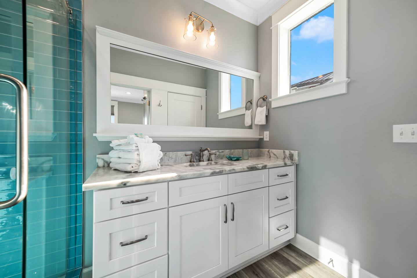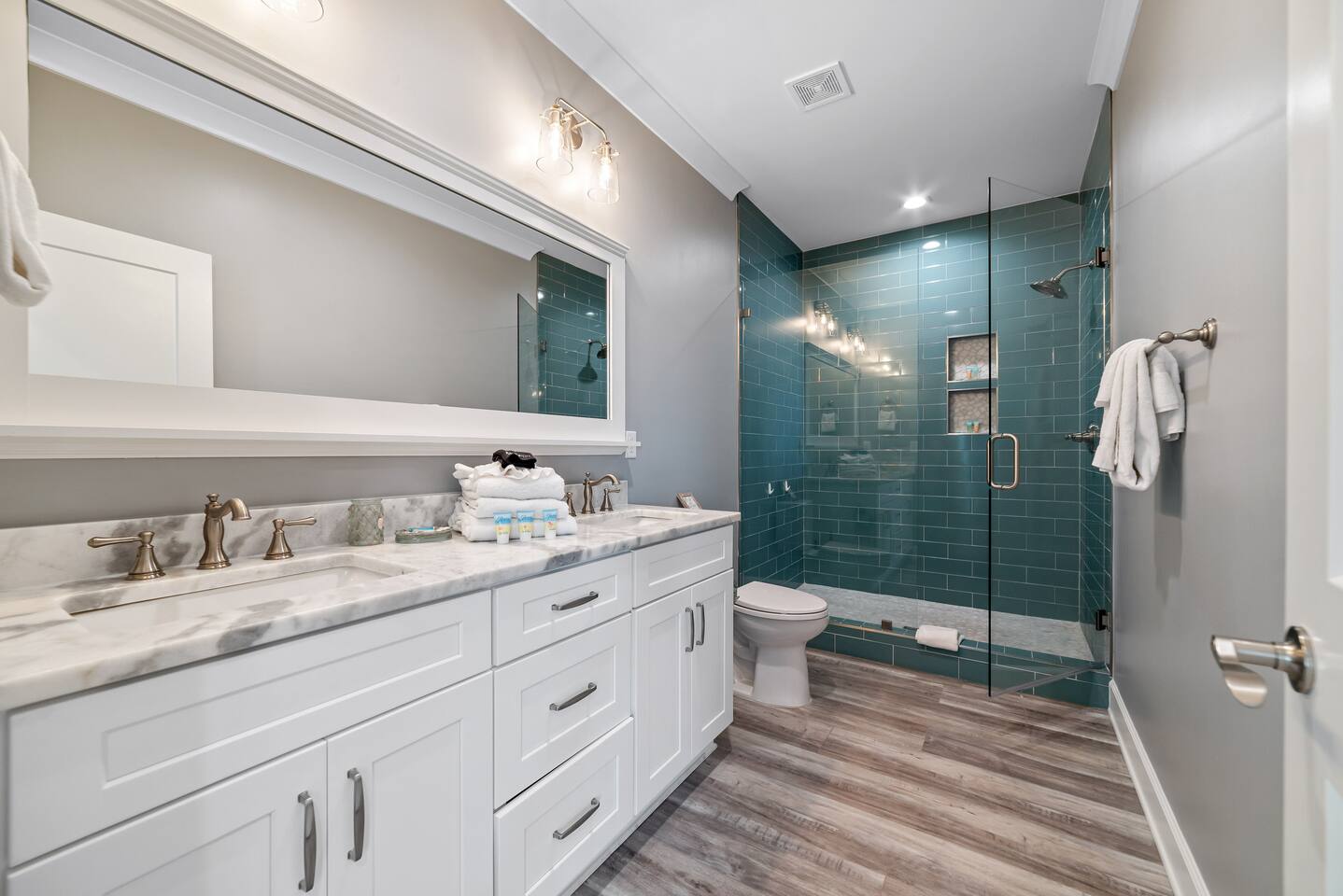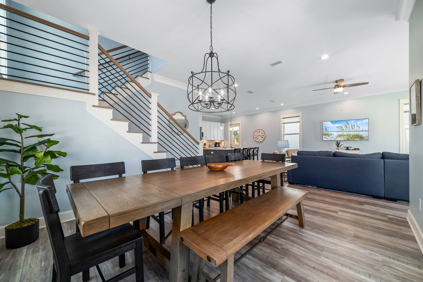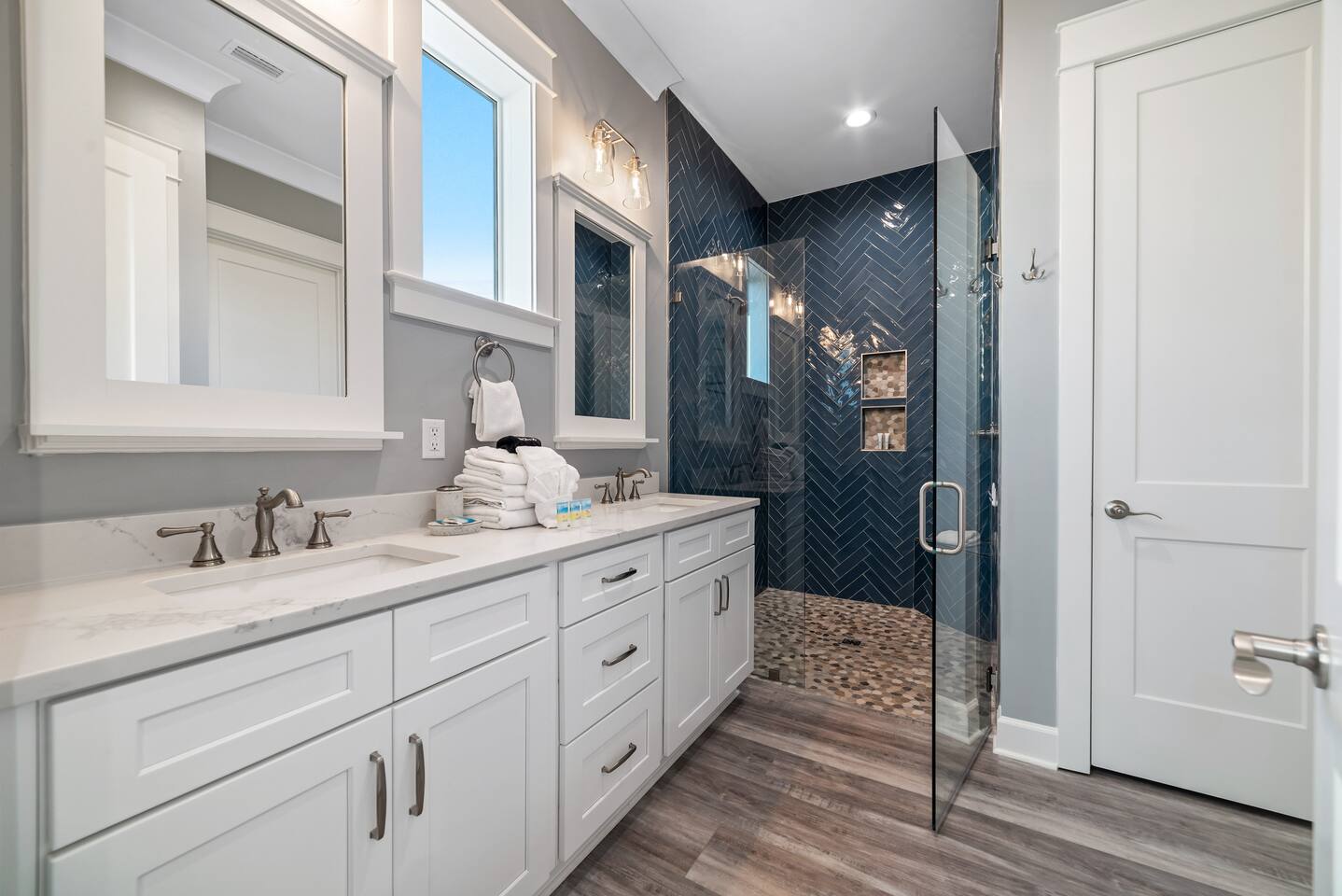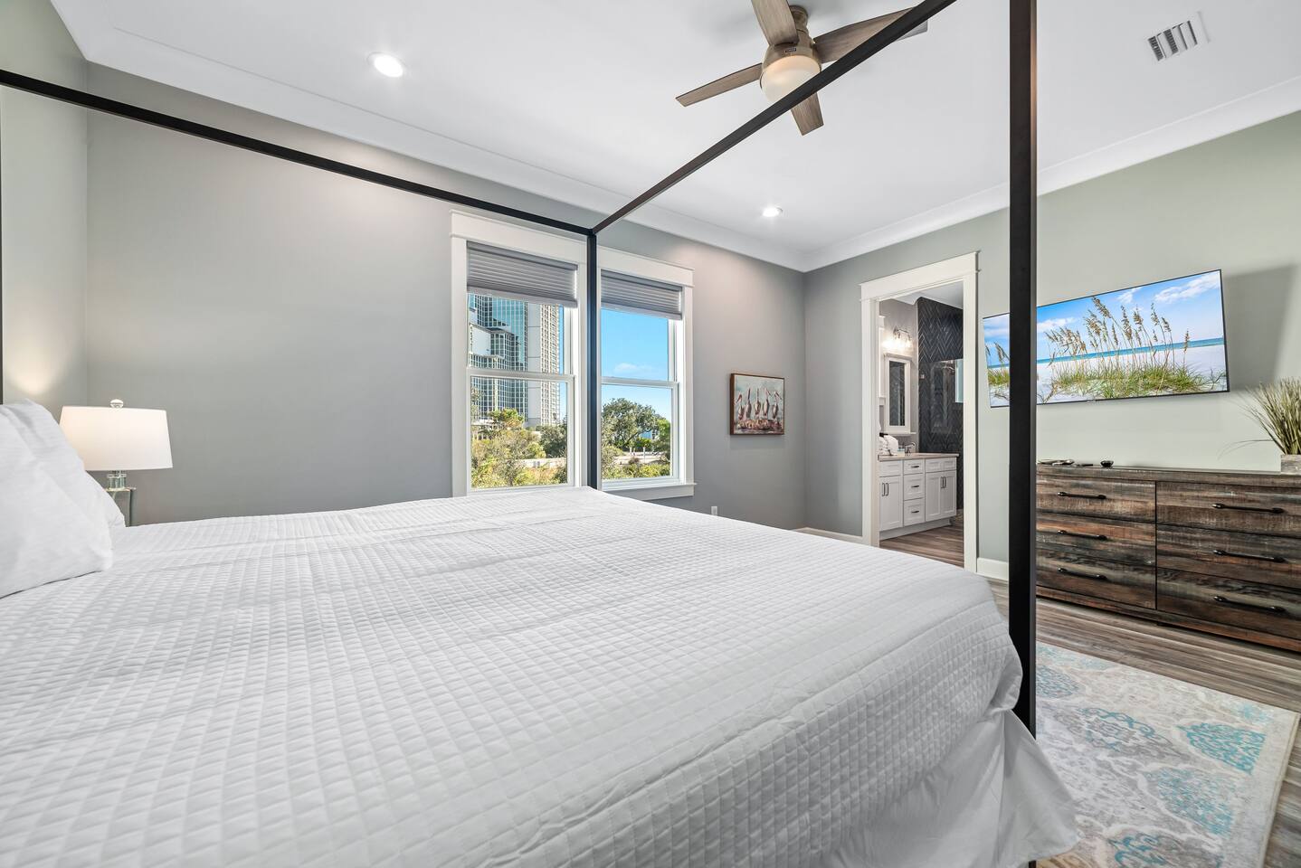 Welcome to Sweet & Salty – Your Luxury Retreat in Orange Beach Escape to Sweet & Salty, a stunning 5-bedroom, 4.5-bathroom beach house located in the prestigious Village at Tannin. This luxurious home effortlessly blends coastal elegance with modern convenience, offering the perfect setting for an unforgettable beach getaway. ☆☆ KEY FEATURES OF THE HOME ☆☆ ☀ Prime Location: Centrally located in Orange Beach, you're less than a 10-minute drive from top restaurants, shops, and attractions. Private beach access is just a 5-minute stroll away. ☀ Golf Cart-Friendly: Cruise the neighborhood in style! Rent a golf cart with an exclusive 20% discount. ☀ Unmatched Amenities: Relax by the Olympic-sized pool just steps from your door, and enjoy complimentary Tommy Bahama beach chairs and a wagon for effortless beach days. ☀ Spacious Living: 5BR/4.5 BA home accommodating up to 12 guests, the home features beautifully designed interiors, comfortable sleeping arrangements, and ample space for everyone to unwind. ☀ Parking: The driveway and right side of the home fits up to 3 vehicles and 1 golf cart, depending on size. ☀ The Neighborhood: Nestled in the charming Village at Tannin, this home boasts a Charleston, SC-inspired vibe with picturesque streets, elegant architecture, and a serene atmosphere. ☆☆ 1ST FLOOR = MAIN LIVING AREA + MASTER BEDROOM ☆☆ ☀ Fully equipped kitchen with stainless steel appliances and granite countertops ☀ Fully stocked w silverware, plates, cups, bowls, bakeware, pots/pans, Tupperware, & cooking utensils ☀ Keurig coffee maker, coffee pot, crockpot, toaster and blender ☀ Bar area with mini fridge ☀ Dining area with a seat for every guest + bar seating ☀ Open concept living area with large Smart TV + Cable & ample seating for large groups ☀ Full sized washer/dryer ☀ Master King Suite with private bathroom + Smart TV with cable ☆☆ 2ND FLOOR = BEDROOMS + 2ND LIVING AREA ☆☆ ☀ All bedrooms have mounted Smart TVs, clothing storage, closets and a ceiling fan ☀ Bedroom 1 = King Suite with spacious private bathroom & Smart TV ☀ Bedroom 2 = King Suite with spacious private bathroom & Smart TV ☀ Bedroom 3 = Queen room with Smart TV ☀ Bedroom 4 = Bunk room with 2 sets of twin bunks (sleeps 4 total) & Smart TV ☀ 2nd open concept living area with large Smart TV + Cable & cozy sofa ☆☆ OUTDOOR AREA & PARKING ☆☆ ☀ Outdoor dining area with a propane grill, perfect for a family cookout ☀ Cozy front porch to kick back and relax after a long day at the beach ☀ Private parking for up to 2 vehicles and 1 golf cart in the front and/or right side of the house ☀ Enclosed Outdoor Shower ☀ Storage area with beach chairs, beach wagon and boogie boards on the left side of the home ★★ Book Today & Let Us Take Care Of You In Orange Beach! ★★ ☀ Monthly Stays Available! In the month of January and February enjoy a longer getaway with an extra 15% off your stay. Send us a message for details!