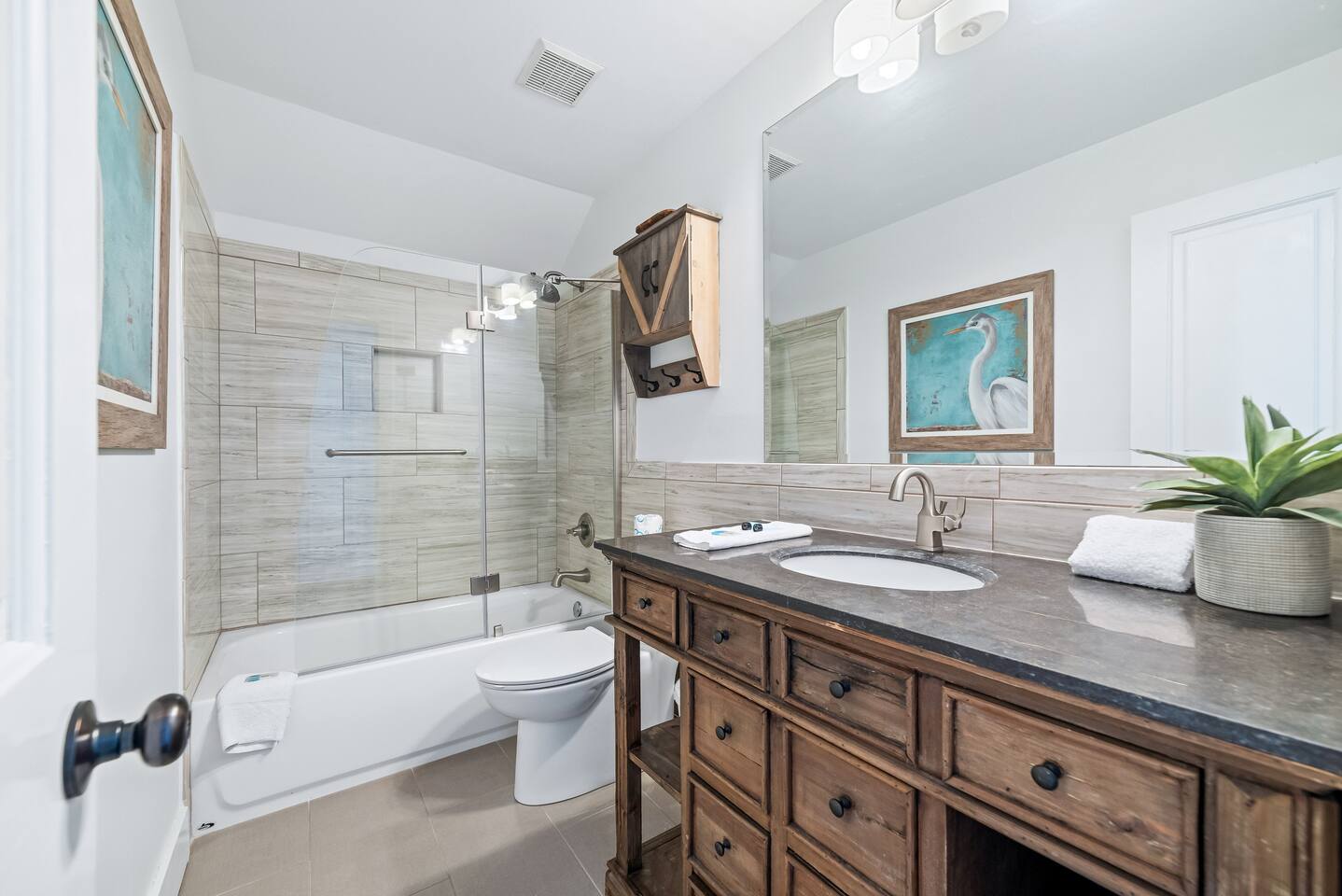 🌊 The Lookout at Tannin | 3BR + Loft | Walk to Beach | Luxury Pool | Water Views 🌴 Welcome to The Lookout at Tannin, a stunning 3-bedroom, 3-bathroom beach retreat with a unique Charleston-inspired design in the heart of Orange Beach, AL. Located in the exclusive, golf cart-friendly community of The Village of Tannin, this luxurious home offers upscale furnishings, spacious living, and unforgettable charm—just a 5-minute walk to the private beach! 🛏 Sleeps 10 Comfortably | 3 Bedrooms + Bunk Loft Main Floor King Room – Cozy, with a Smart TV for streaming your favorites Master Suite – King bed, ensuite bathroom, Smart TV, and elevated finishes Bedroom 3 – Queen bed with Smart TV Bonus Loft Area – 2 sets of twin-over-twin bunks (sleeps 4 kids comfortably!) 🏖 Prime Beach Access + Amazing Amenities 5-Minute Walk to the Tannin Private Beach Access (dedicated crosswalk) 2-Minute Golf Cart Ride (parking available at beach access) Olympic-Sized Pool just steps from your door Scenic Water Views from your back deck overlooking a tranquil lake Exclusive Enclosed “Lookout” Balcony on the top floor—perfect for relaxing or entertaining 🏠 Home Highlights 1,825 sq. ft. of thoughtfully designed living space Upscale coastal décor with not-your-typical beach house vibes Fully stocked kitchen, open concept living/dining area High-speed WiFi + Smart TVs in every bedroom Back deck with ample outdoor dining and serene lake views 2 Parking Spots + Golf Cart Space (golf cart not provided) 🌟 Location, Location, Location! Situated in the luxury Village of Tannin—a quiet, walkable neighborhood Steps to charming local shoppes, restaurants, and cafes Just minutes from Gulf State Park, The Wharf, and other top Orange Beach attractions Safe, family-friendly environment with a Charleston-style vibe 🏡 Why Guests Love The Lookout at Tannin: ✔️ Unique architectural charm—stands out from typical beach rentals ✔️ Family-friendly layout with bunk loft & gathering spaces ✔️ Walk-to-beach access + luxury community amenities ✔️ Peaceful, upscale neighborhood close to everything Orange Beach offers 📅 Book The Lookout at Tannin Today! Whether you're planning a family vacation, a beach getaway with friends, or a relaxing retreat, The Lookout at Tannin offers the perfect mix of style, comfort, and convenience. Come see why guests return year after year!