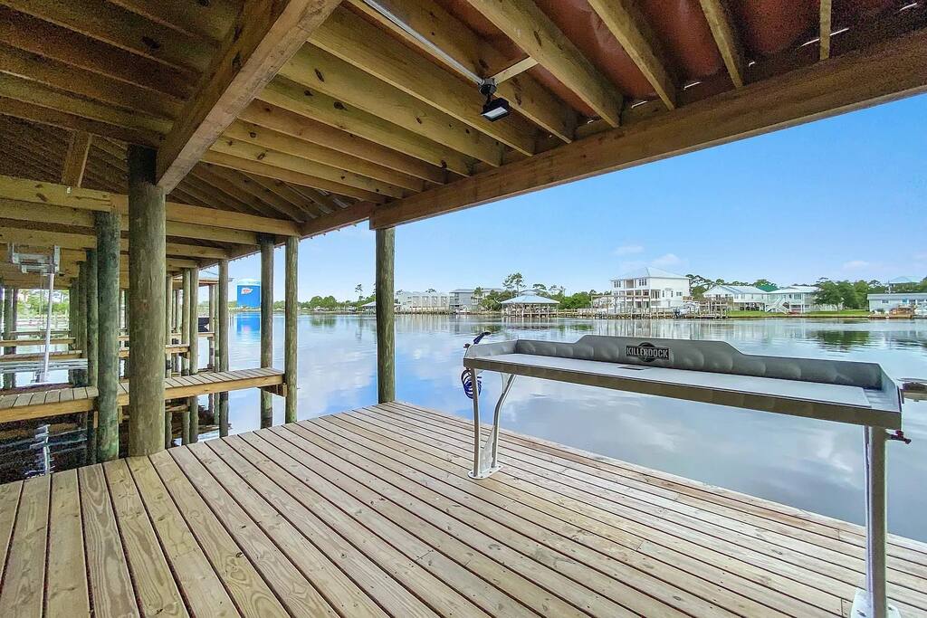 🌴 Upper Class | Luxury 4BR Home w/ Complimentary Private Boat Slip, Pool & Near Beach Welcome to “Upper Class” — your elevated coastal getaway in the exclusive Osprey community of Orange Beach, Alabama! This 4-bedroom, 3.5-bathroom home blends upscale design, spacious comfort, and prime location just minutes from the beach. With a private boat slip (#23) featuring a lift, a resort-style pool, and modern high-end finishes, it’s the perfect retreat for families, groups, and snowbirds seeking a luxurious beach escape. 🏡 Property Highlights 4 Bedrooms | 3.5 Bathrooms | Sleeps 12 Private boat slip #23 with lift (max 14’ x 29’, 4’ water depth) Zero-entry resort-style pool with loungers & dining areas Open-concept living area with sofa sleeper & Smart TV Private balcony with comfy seating & propane grill Golf cart-friendly community Parking for 3 vehicles (no oversized vehicles, RVs, or trailers) High-speed Wi-Fi & washer/dryer 🛏️ Bedroom Layout Master Suite (King) – Private ensuite bathroom, Smart TV, luxury bedding Bedroom 2 (Queen) – Ensuite bathroom, Smart TV Bedroom 3 (Queen) – Ensuite bathroom, Smart TV Bedroom 4 (Main Level) – Built-in Twin over Twin bunks Bonus Loft Area (Upstairs) – Built-in Twin over Twin bunks, additional lounge space Total sleeping capacity: 12 guests 🍽️ Living, Dining & Kitchen The open-concept living area offers elegant furnishings, a Smart TV, and plenty of natural light. The fully equipped kitchen features modern appliances, stone countertops, and all the essentials for cooking and entertaining. Enjoy meals indoors at the dining table or outside on your private balcony, perfect for morning coffee or evening grilling. 🌊 Community Amenities Guests at The Osprey enjoy: A zero-entry resort-style pool with loungers and outdoor dining areas Community boat dock with fishing area & cleaning station Private boat slip #23 with lift included with your stay Golf cart-friendly neighborhood (rentals available nearby) You’re just a 5-minute walk or 1-minute drive from Cotton Bayou Public Beach Access, where white sand and turquoise waters await. 📍 Prime Orange Beach Location Upper Class is centrally located in Orange Beach, less than 5 minutes from top restaurants, shopping, and family attractions. Everything you need for dining, entertainment, and outdoor fun is right at your fingertips. 🌅 Snowbird Monthly Rentals Available November through February for $3,600/month (plus taxes & fees). Message us for details on monthly or extended stays. 💎 Why Guests Love “Upper Class” ✅ Private boat slip with lift ✅ Resort-style pool & fishing dock ✅ Walk to beach & close to everything ✅ Upscale furnishings & modern finishes Book your stay at “Upper Class” today and experience refined coastal living in the heart of Orange Beach, Alabama.